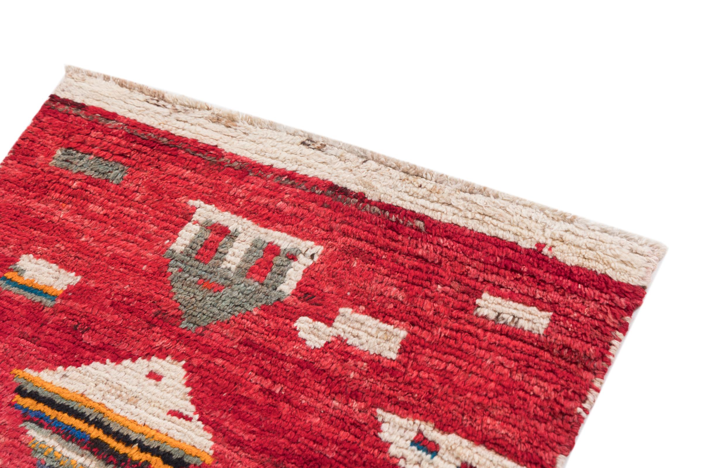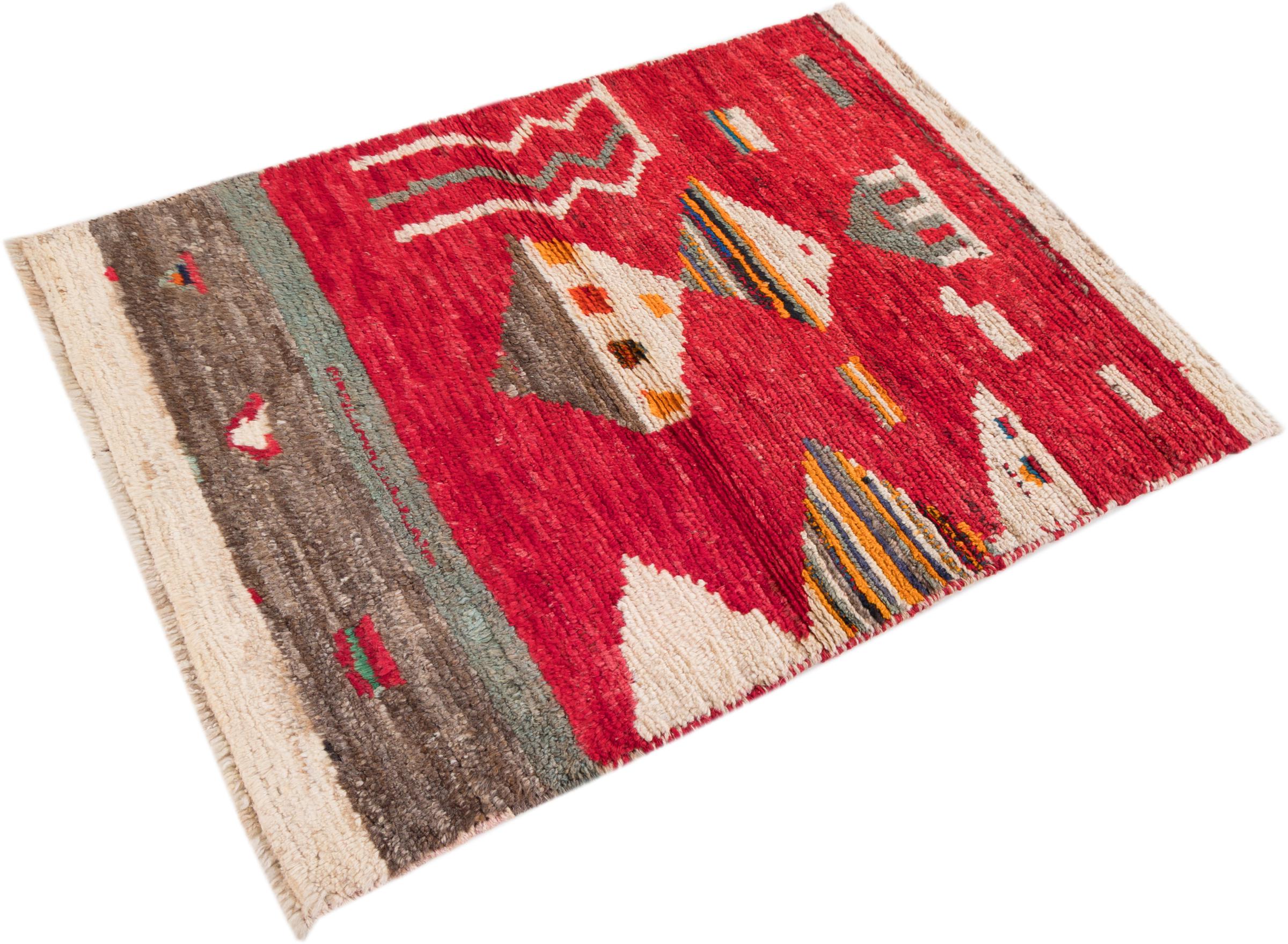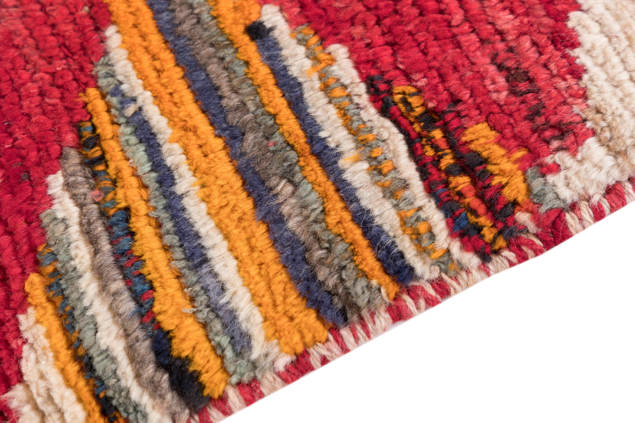 Este Gabbeh persa anudado a mano impresiona de inmediato con su alta calidad y su pelo muy robusto. Fue anudado a mano por nómadas Ghashghai en la provincia de Fars, en el sur de Persia, utilizando la mejor lana de oveja local. Para teñir la lana se utilizan tintes vegetales naturales. Por lo tanto, también es una adición muy valiosa a la habitación de los niños. Este Gabbeh persa representa la clase más alta de alfombras Gabbeh.