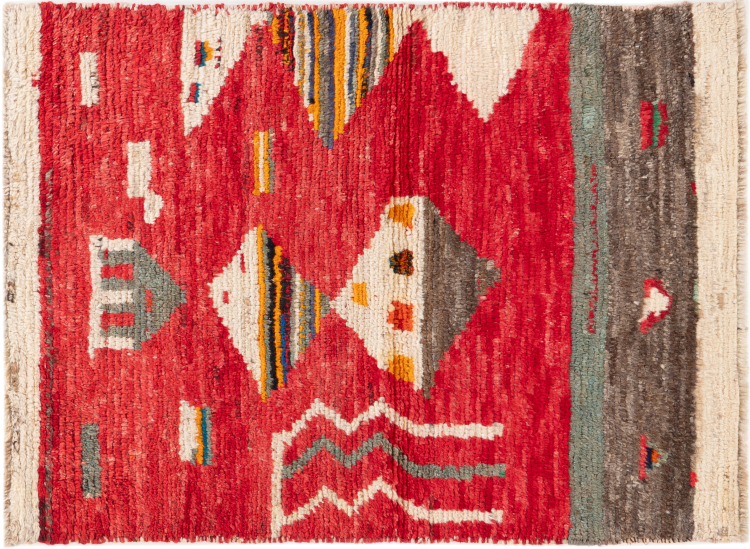 Esta hermosa alfombra es una Gabbeh persa y por lo tanto pertenece a las alfombras Gabbeh de mayor calidad. Las alfombras son anudadas por nómadas o seminómadas en Irán según la artesanía tradicional. Los motivos y patrones simples están inspirados en su mayoría por el entorno inmediato de los nómadas. Por ejemplo, los camellos, árboles o arbustos se pueden encontrar en las alfombras tradicionales. Las alfombras gabbeh persas están hechas de lana de rebaños de ovejas criados localmente. Por lo tanto, la lana se sigue hilando a mano. Así, cada una de estas alfombras orientales encarna un carácter único de la cultura de siglos de antigüedad.