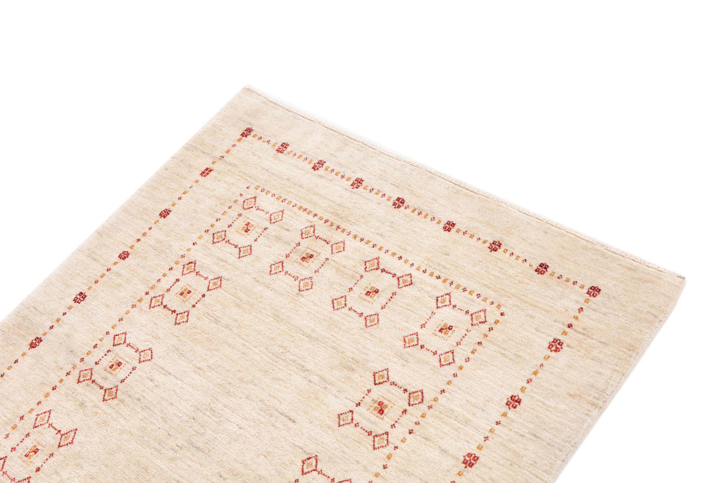 Un refinamiento de las ya conocidas alfombras Gabbeh: Esta es esta persa Gabbeh Loribaft. Con su anudado más fino y su hermoso diseño, sabe cómo impresionar. Loren lo anudó a mano en el sur de Persia con la mejor lana de oveja hilada a mano. Solo se utilizan tintes vegetales puros para teñir la lana. Con esta alfombra obtienes el estándar más alto de una alfombra Gabbeh para tu hogar.
