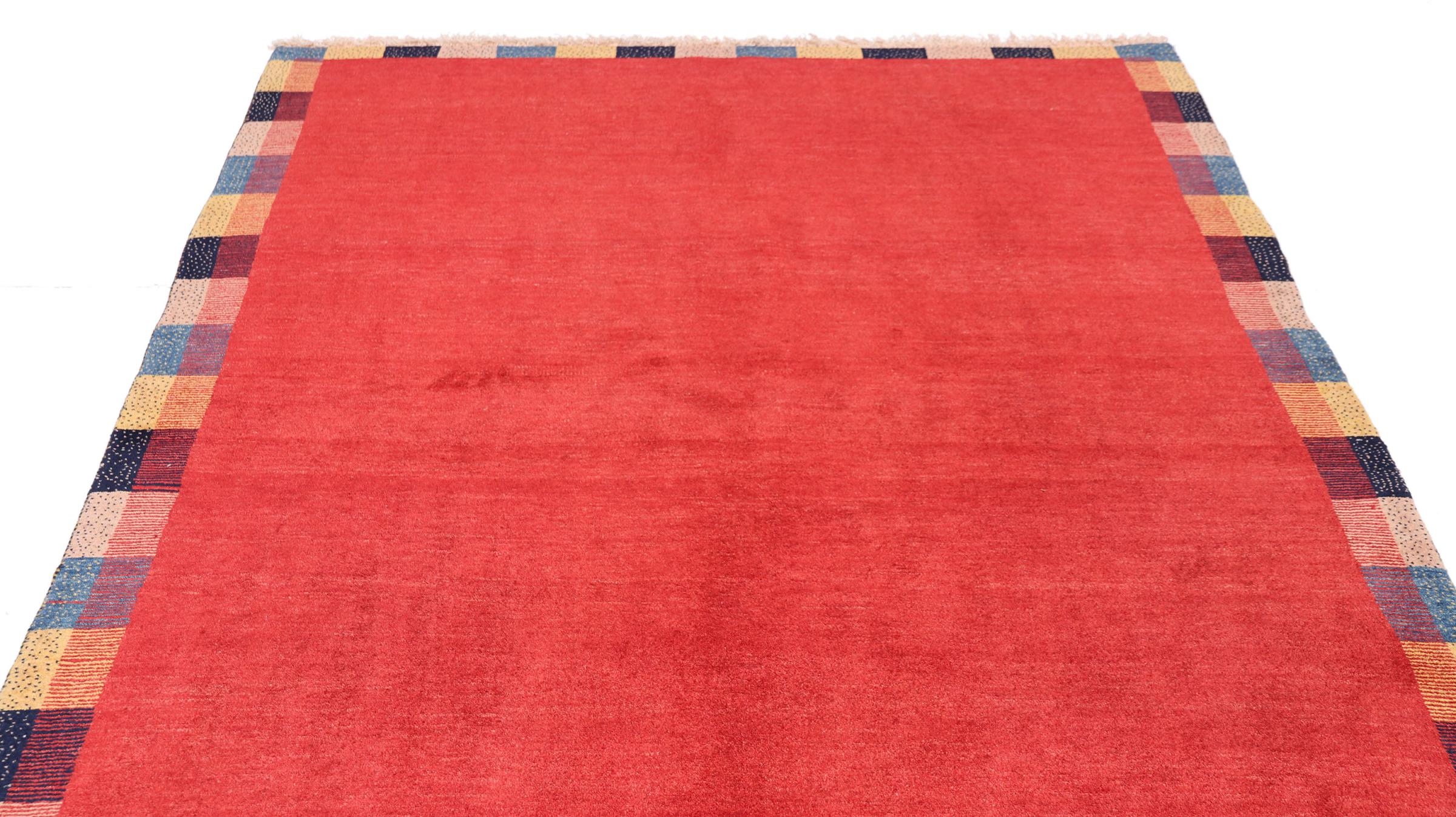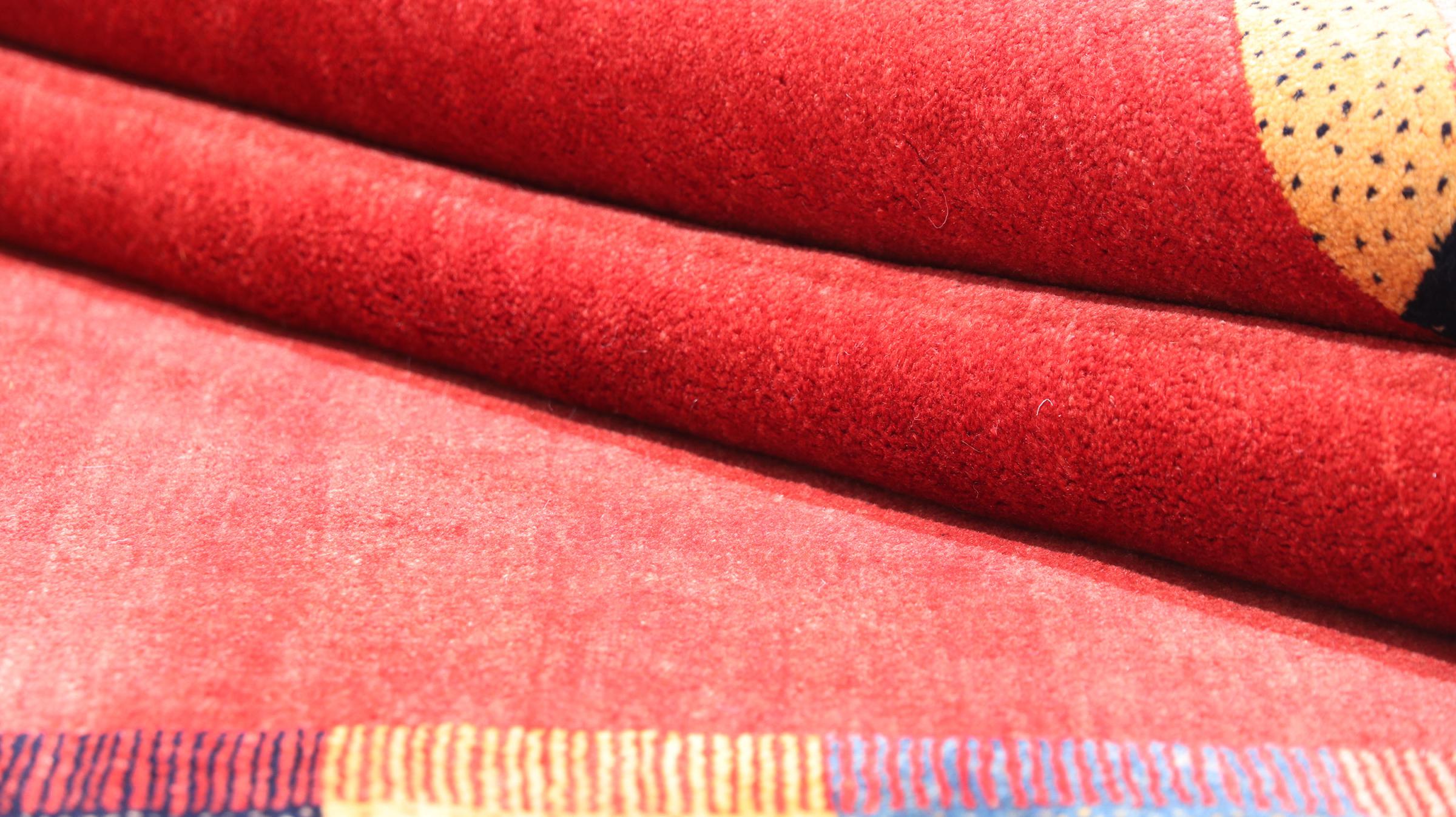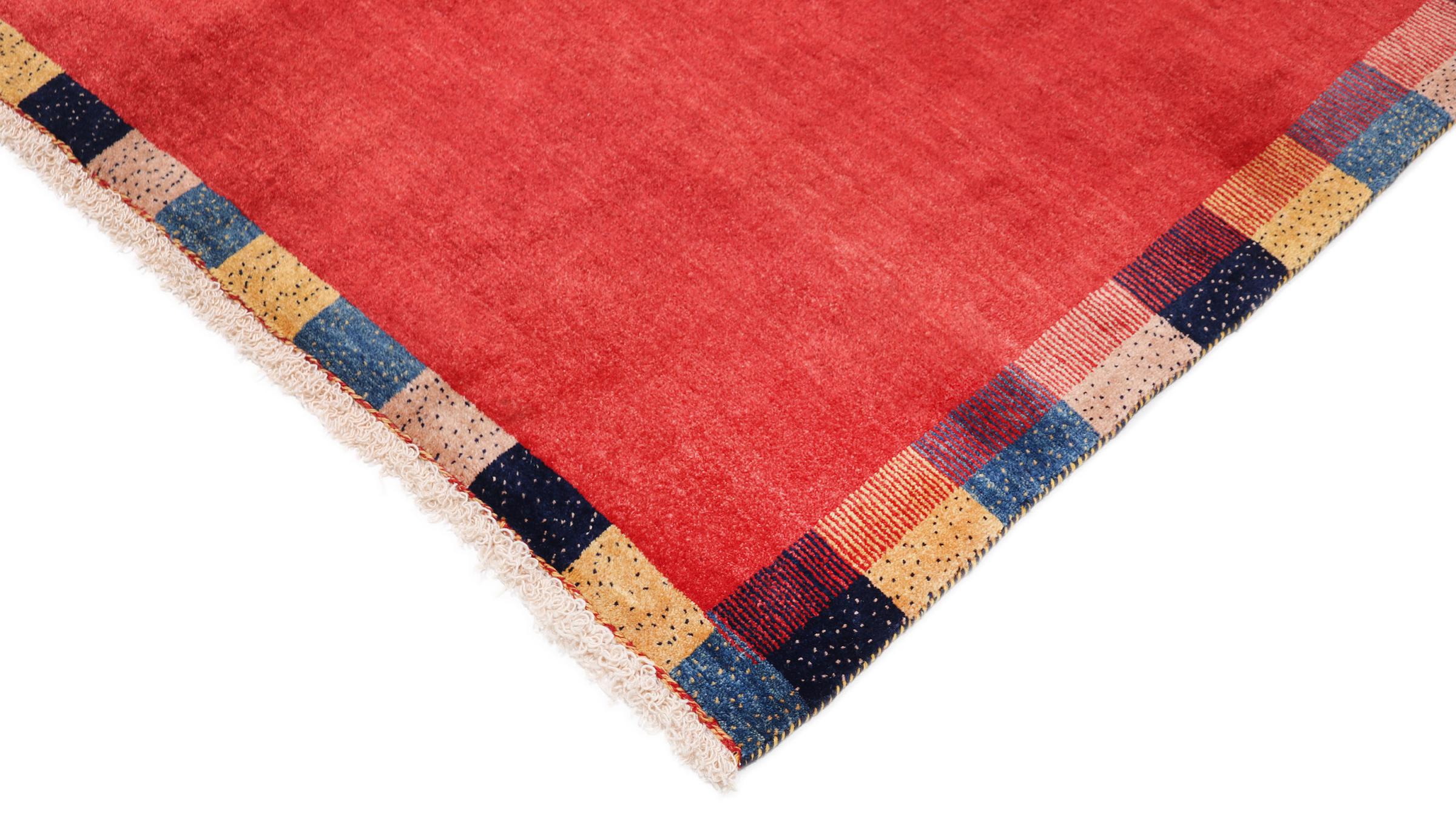 Esta hermosa alfombra es una Gabbeh persa y por lo tanto pertenece a las alfombras Gabbeh de mayor calidad. Las alfombras son anudadas por nómadas o seminómadas en Irán según la artesanía tradicional. Los motivos y patrones simples están inspirados en su mayoría por el entorno inmediato de los nómadas. Por ejemplo, los camellos, árboles o arbustos se pueden encontrar en las alfombras tradicionales. Las alfombras gabbeh persas están hechas de lana de rebaños de ovejas criados localmente. Por lo tanto, la lana se sigue hilando a mano. Así, cada una de estas alfombras orientales encarna un carácter único de la cultura de siglos de antigüedad.