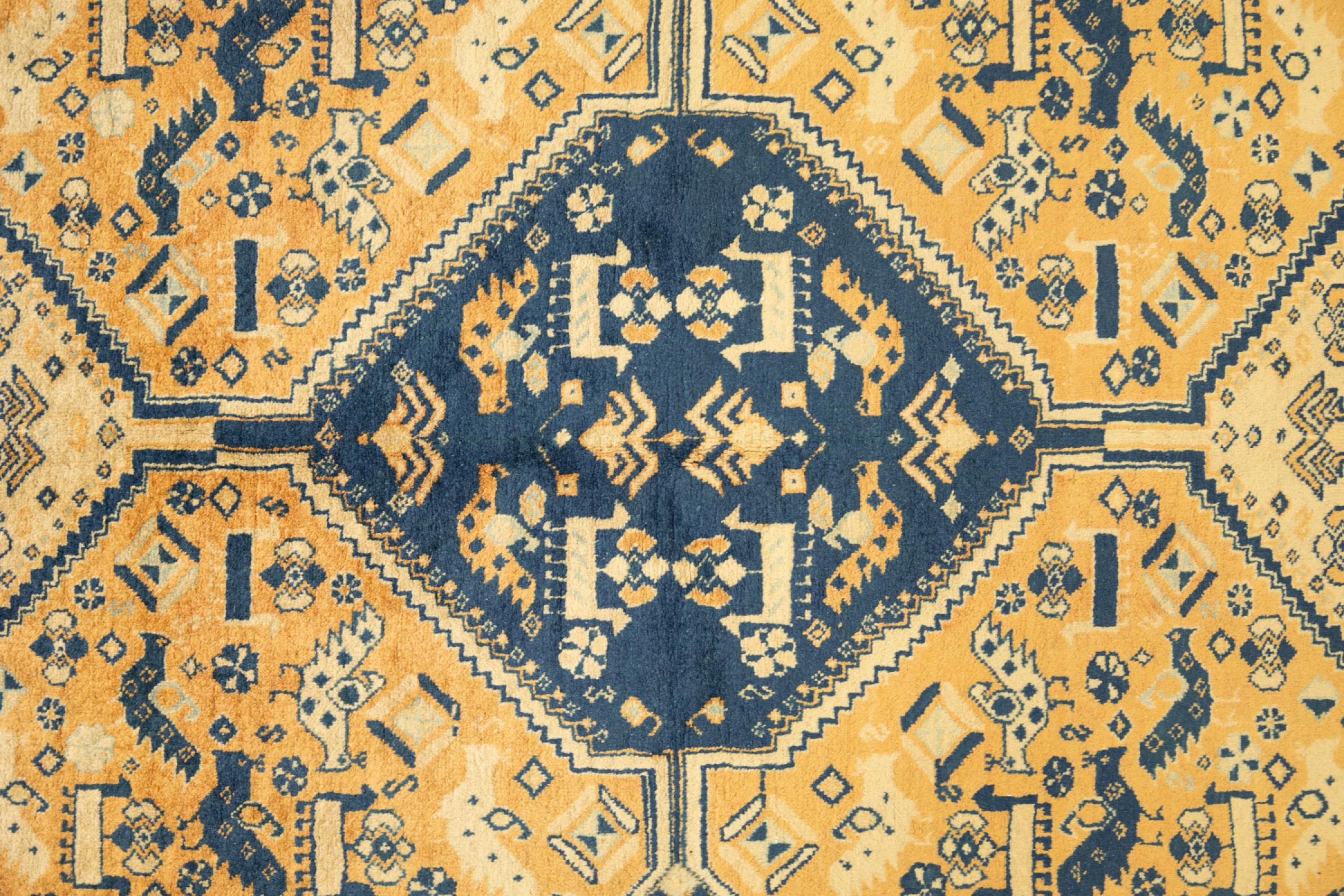 Esta hermosa alfombra es una Gabbeh persa y por lo tanto pertenece a las alfombras Gabbeh de mayor calidad. Las alfombras son anudadas por nómadas o seminómadas en Irán según la artesanía tradicional. Los motivos y patrones simples están inspirados en su mayoría por el entorno inmediato de los nómadas. Por ejemplo, los camellos, árboles o arbustos se pueden encontrar en las alfombras tradicionales. Las alfombras gabbeh persas están hechas de lana de rebaños de ovejas criados localmente. Por lo tanto, la lana se sigue hilando a mano. Así, cada una de estas alfombras orientales encarna un carácter único de la cultura de siglos de antigüedad.