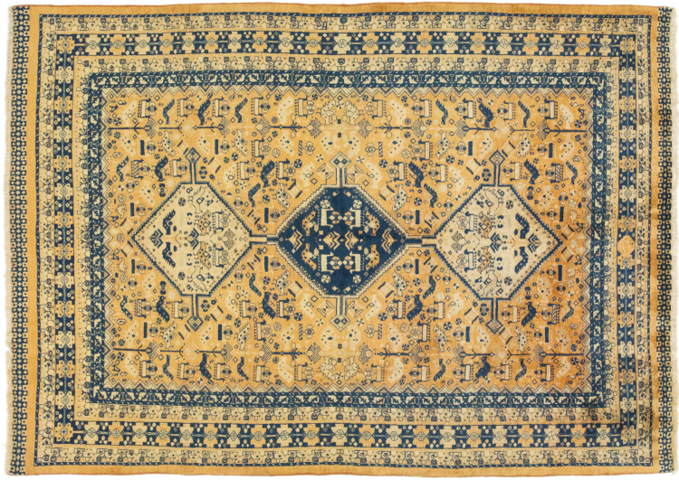 Esta alfombra está hecha de lana de oveja hilada a mano de la más alta calidad. Especialmente en Irán (antigua Persia), la lana de Afganistán y Pakistán sigue siendo hilada a mano antes de que comience el anudado de la alfombra. La lana ha demostrado ser un material natural y extremadamente resistente a lo largo de los siglos. Entre otras cosas, tiene propiedades repelentes de la suciedad y aislantes del calor. Al mismo tiempo, la lana es incomparablemente suave y tiene un brillo natural.
