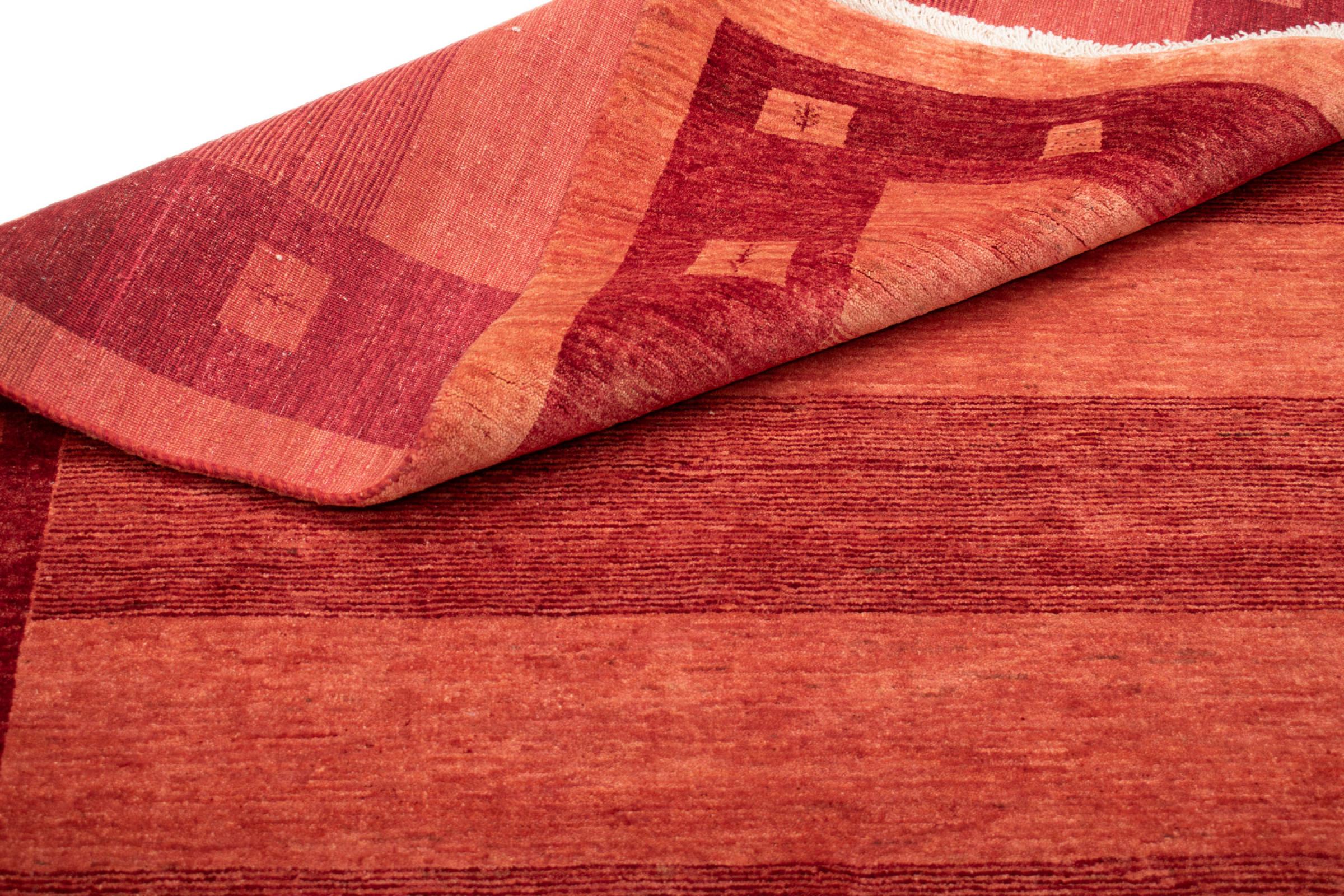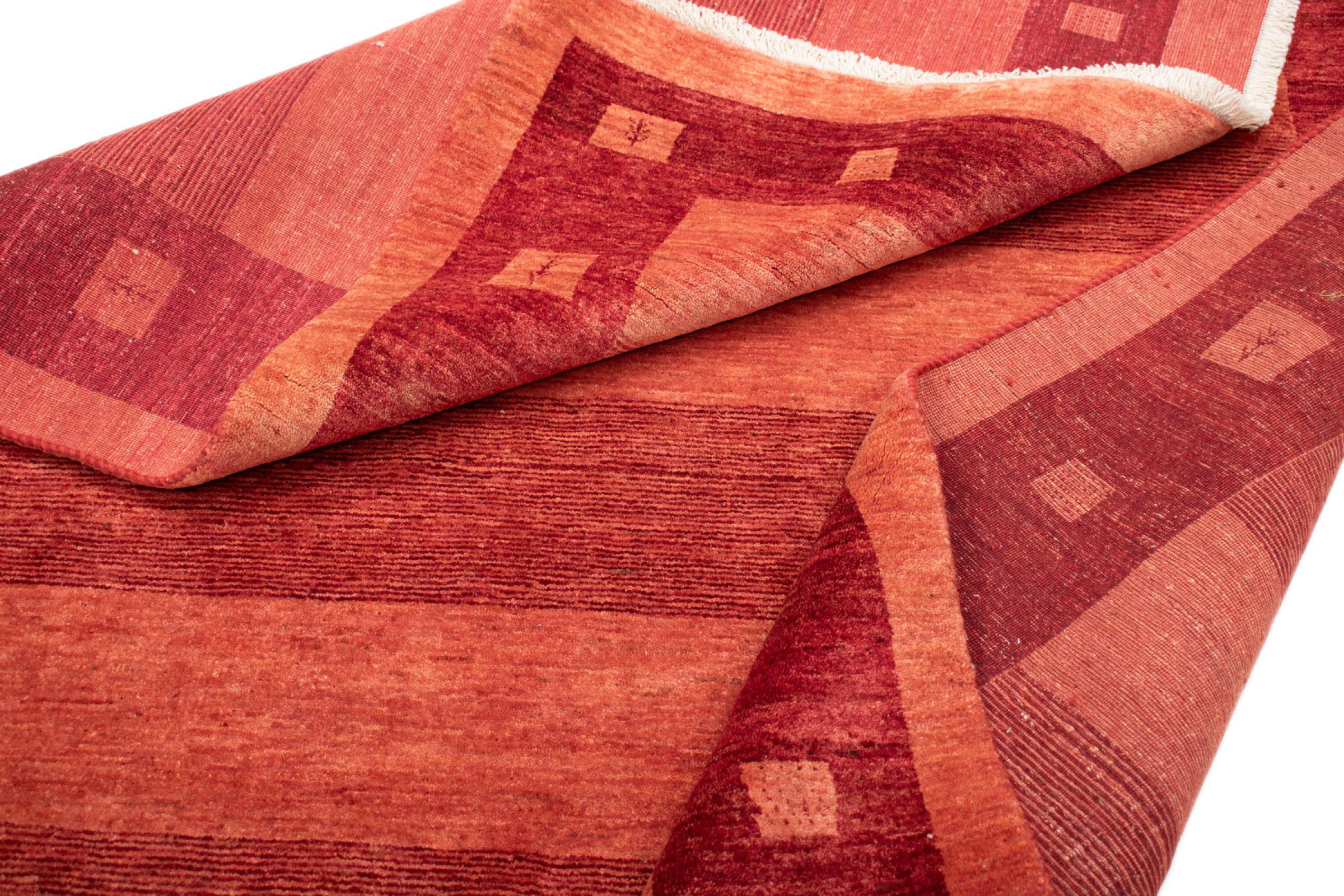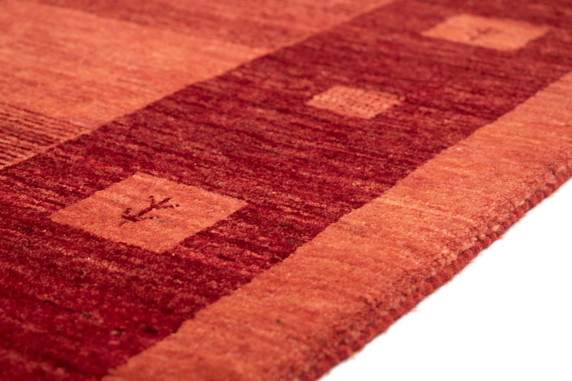 Esta hermosa alfombra es una Gabbeh persa y por lo tanto pertenece a las alfombras Gabbeh de mayor calidad. Las alfombras son anudadas por nómadas o seminómadas en Irán según la artesanía tradicional. Los motivos y patrones simples están inspirados en su mayoría por el entorno inmediato de los nómadas. Por ejemplo, los camellos, árboles o arbustos se pueden encontrar en las alfombras tradicionales. Las alfombras gabbeh persas están hechas de lana de rebaños de ovejas criados localmente. Por lo tanto, la lana se sigue hilando a mano. Así, cada una de estas alfombras orientales encarna un carácter único de la cultura de siglos de antigüedad.