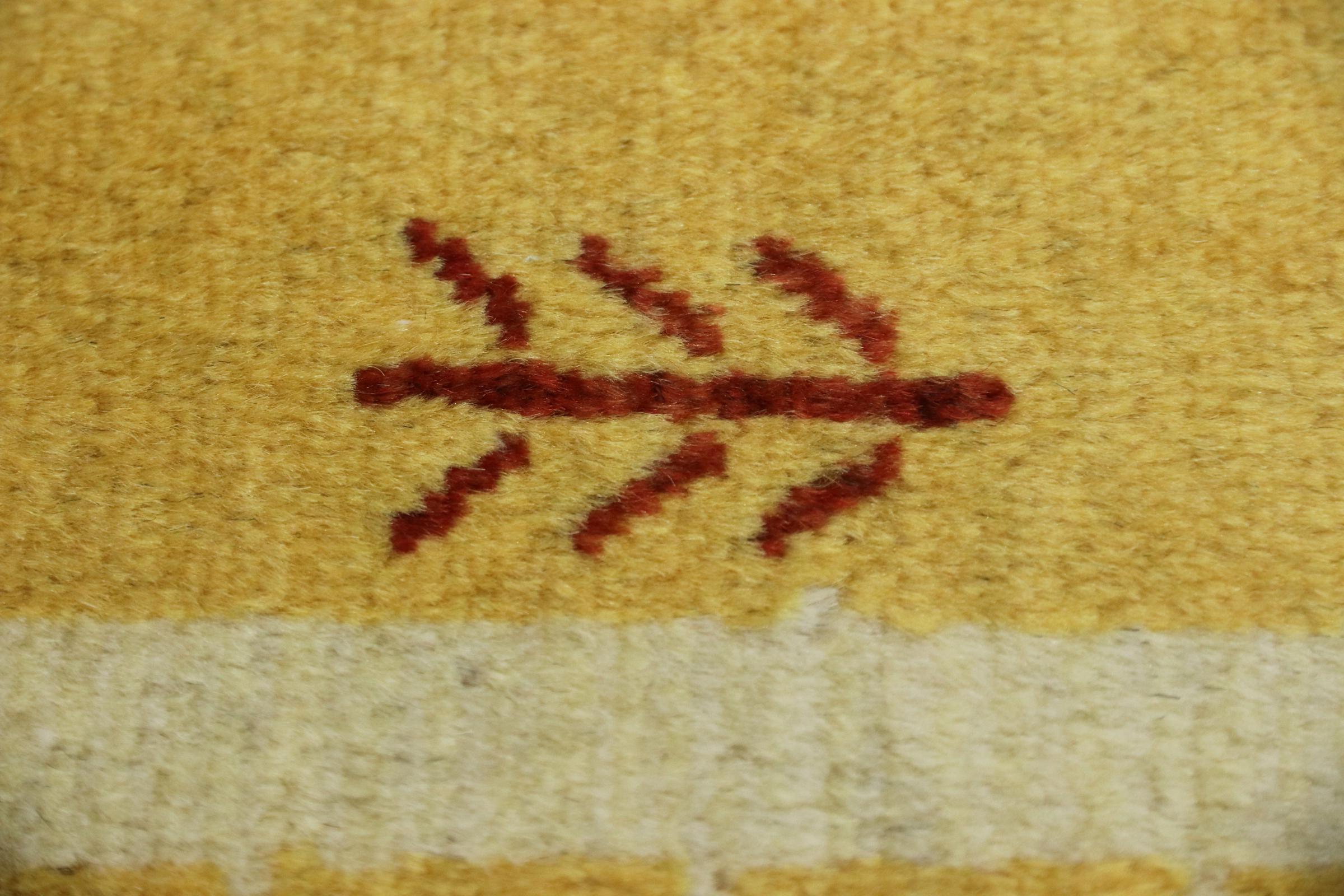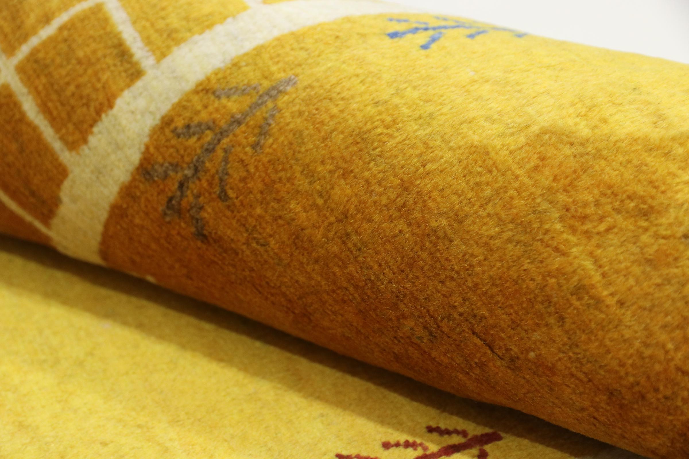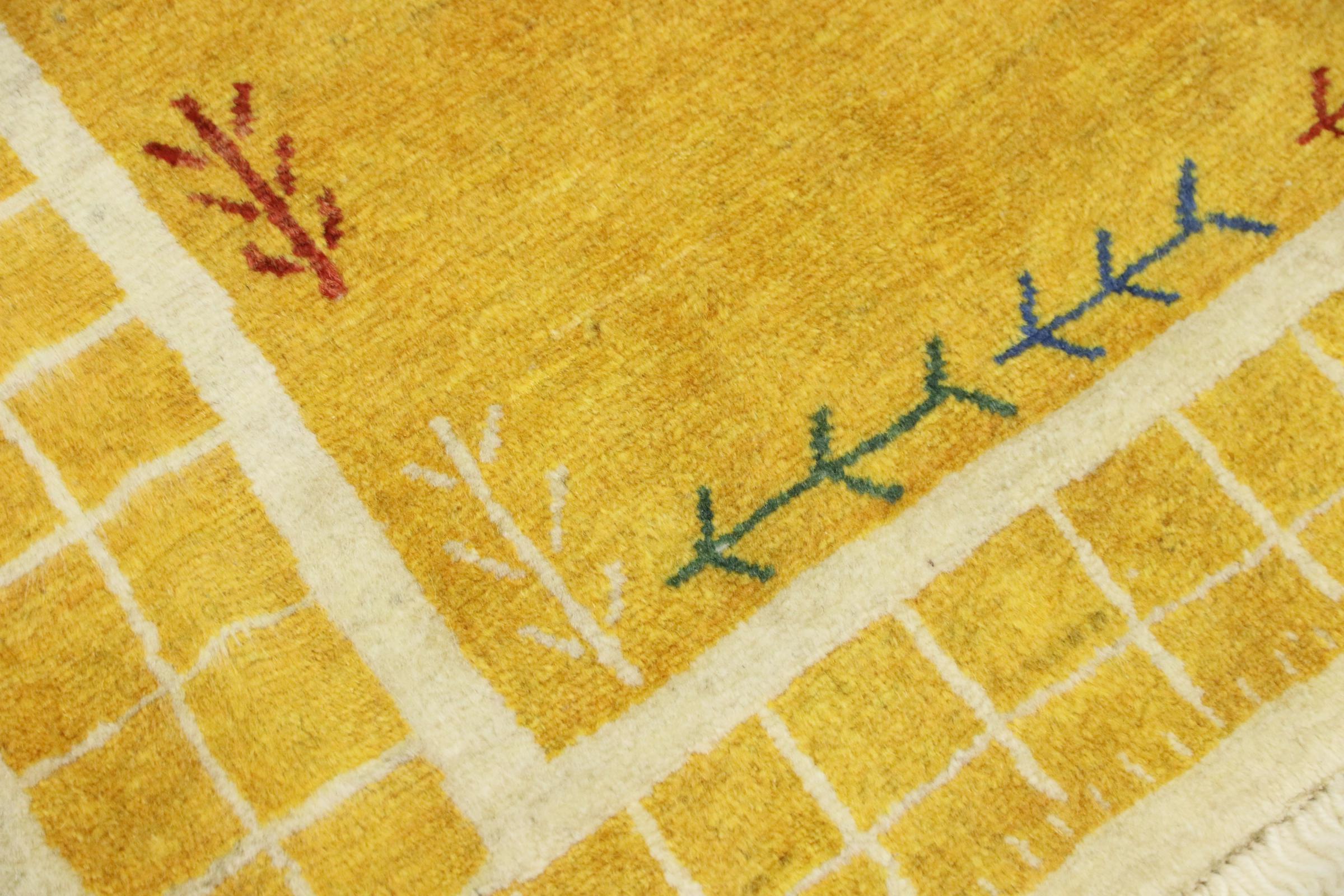 Esta hermosa alfombra es una Gabbeh persa y por lo tanto pertenece a las alfombras Gabbeh de mayor calidad. Las alfombras son anudadas por nómadas o seminómadas en Irán según la artesanía tradicional. Los motivos y patrones simples están inspirados en su mayoría por el entorno inmediato de los nómadas. Por ejemplo, los camellos, árboles o arbustos se pueden encontrar en las alfombras tradicionales. Las alfombras gabbeh persas están hechas de lana de rebaños de ovejas criados localmente. Por lo tanto, la lana se sigue hilando a mano. Así, cada una de estas alfombras orientales encarna un carácter único de la cultura de siglos de antigüedad.