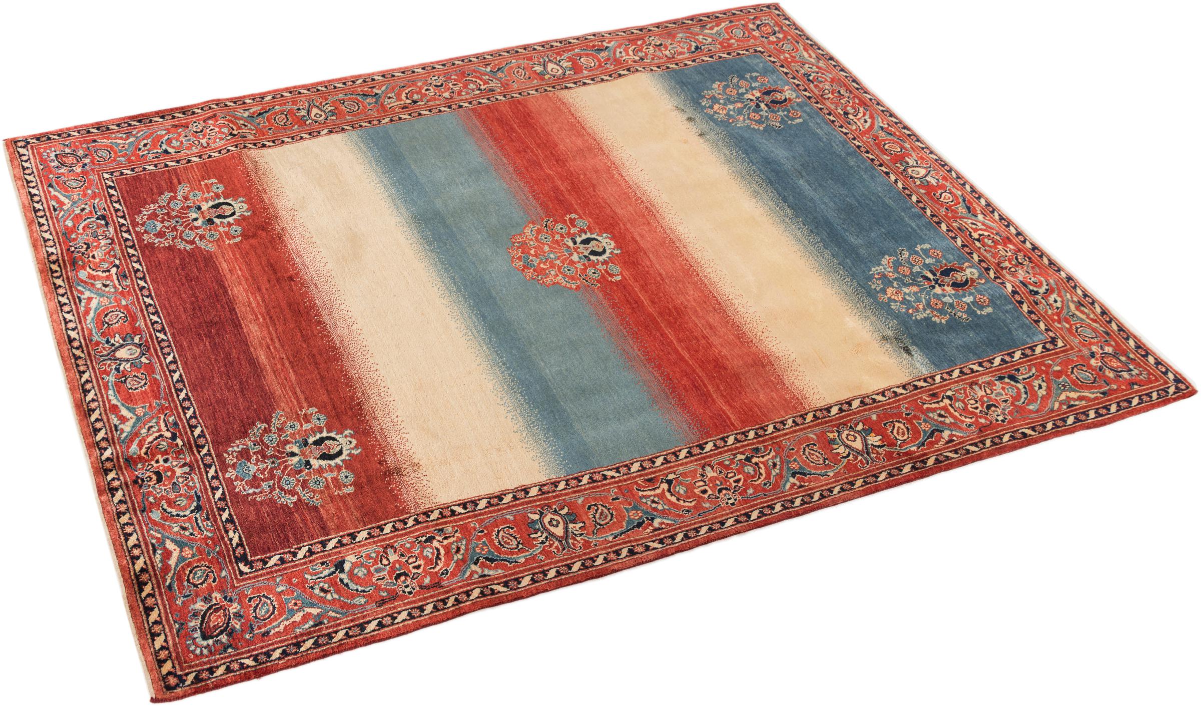Esta hermosa alfombra es una Gabbeh persa y por lo tanto pertenece a las alfombras Gabbeh de mayor calidad. Las alfombras son anudadas por nómadas o seminómadas en Irán según la artesanía tradicional. Los motivos y patrones simples están inspirados en su mayoría por el entorno inmediato de los nómadas. Por ejemplo, los camellos, árboles o arbustos se pueden encontrar en las alfombras tradicionales. Las alfombras gabbeh persas están hechas de lana de rebaños de ovejas criados localmente. Por lo tanto, la lana se sigue hilando a mano. Así, cada una de estas alfombras orientales encarna un carácter único de la cultura de siglos de antigüedad.
