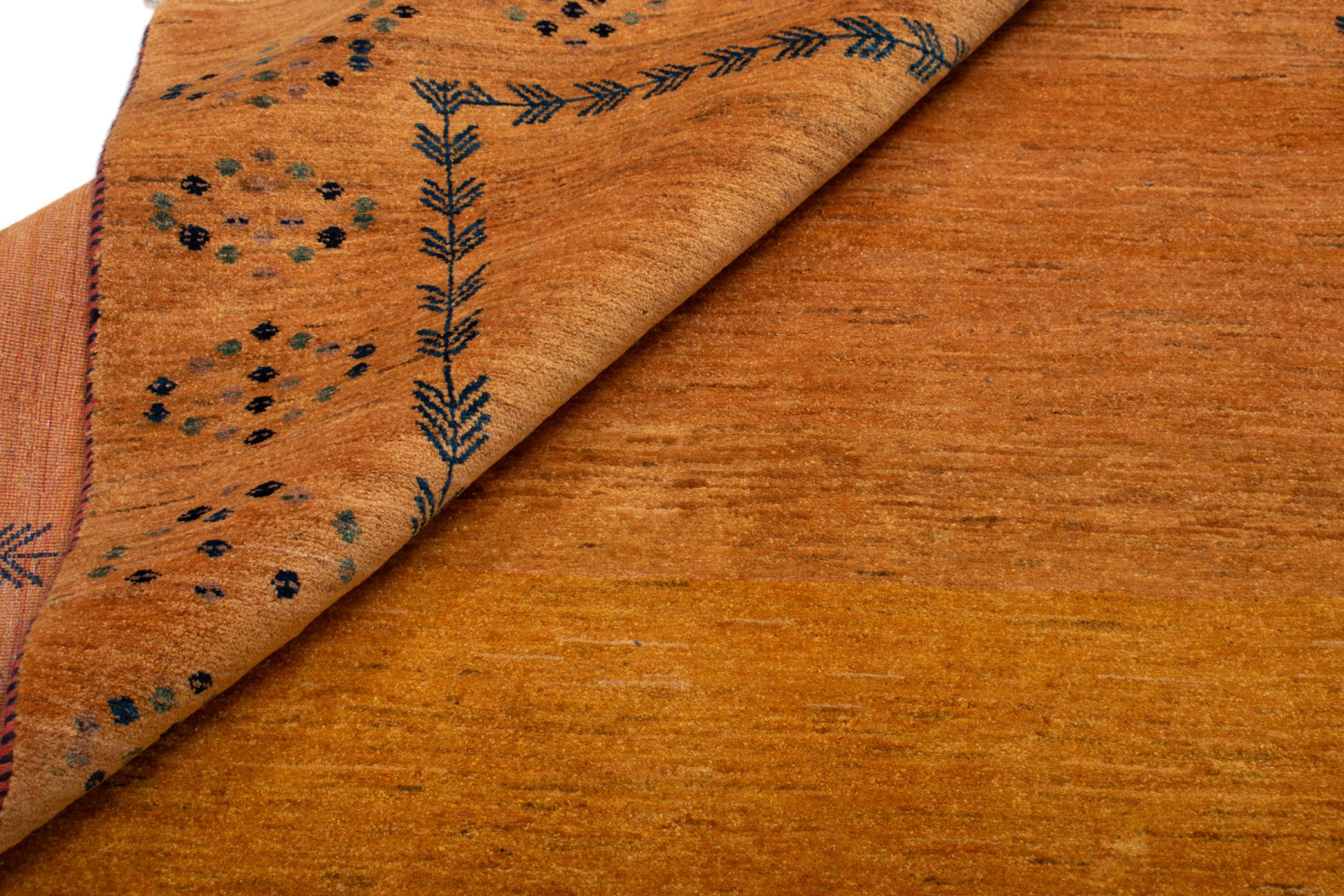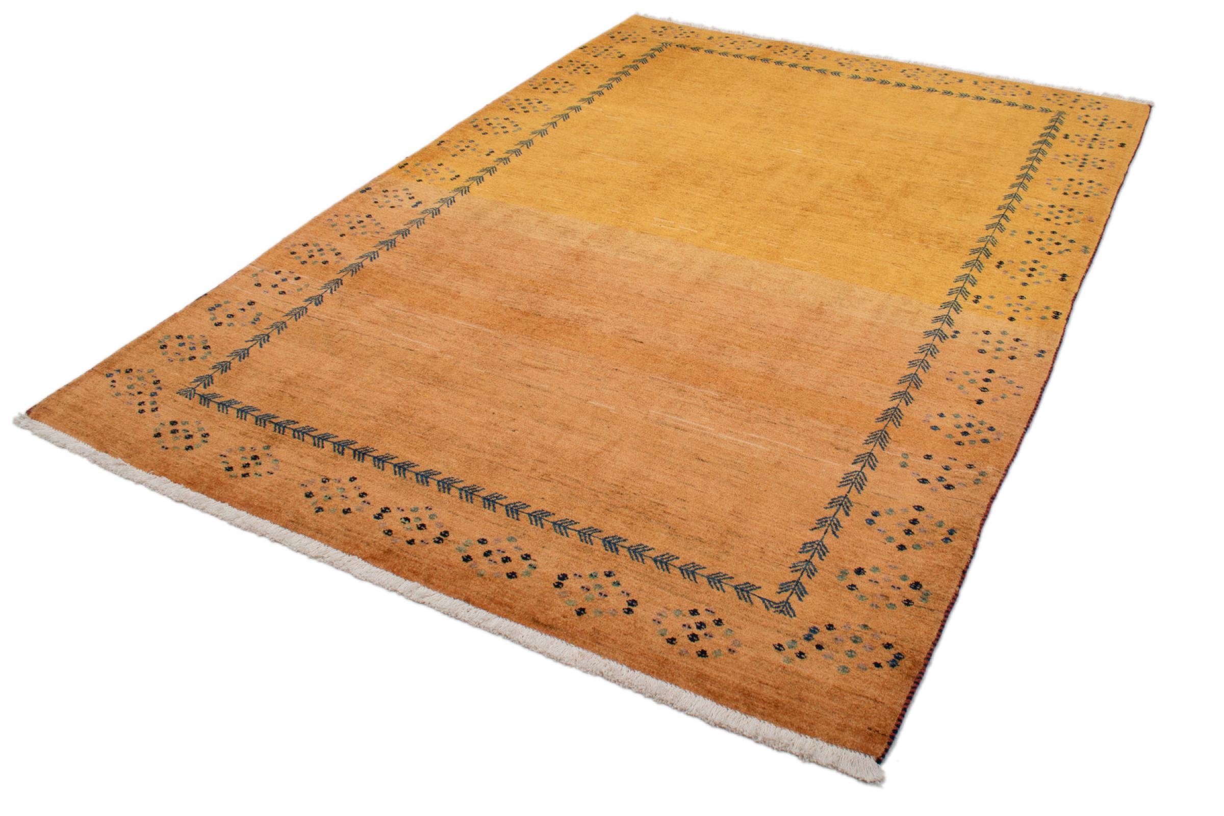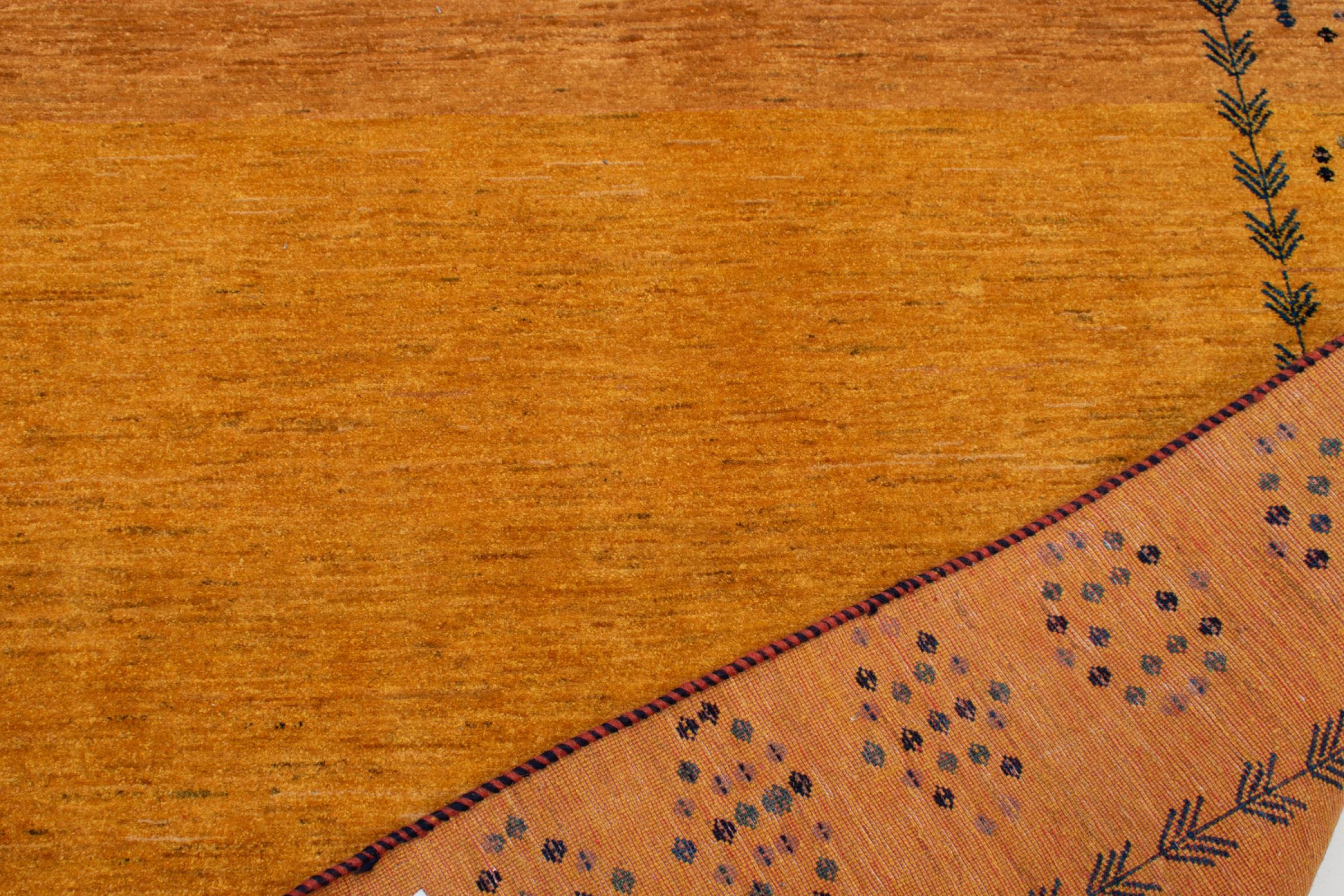 Esta hermosa alfombra es una Gabbeh persa y por lo tanto pertenece a las alfombras Gabbeh de mayor calidad. Las alfombras son anudadas por nómadas o seminómadas en Irán según la artesanía tradicional. Los motivos y patrones simples están inspirados en su mayoría por el entorno inmediato de los nómadas. Por ejemplo, los camellos, árboles o arbustos se pueden encontrar en las alfombras tradicionales. Las alfombras gabbeh persas están hechas de lana de rebaños de ovejas criados localmente. Por lo tanto, la lana se sigue hilando a mano. Así, cada una de estas alfombras orientales encarna un carácter único de la cultura de siglos de antigüedad.