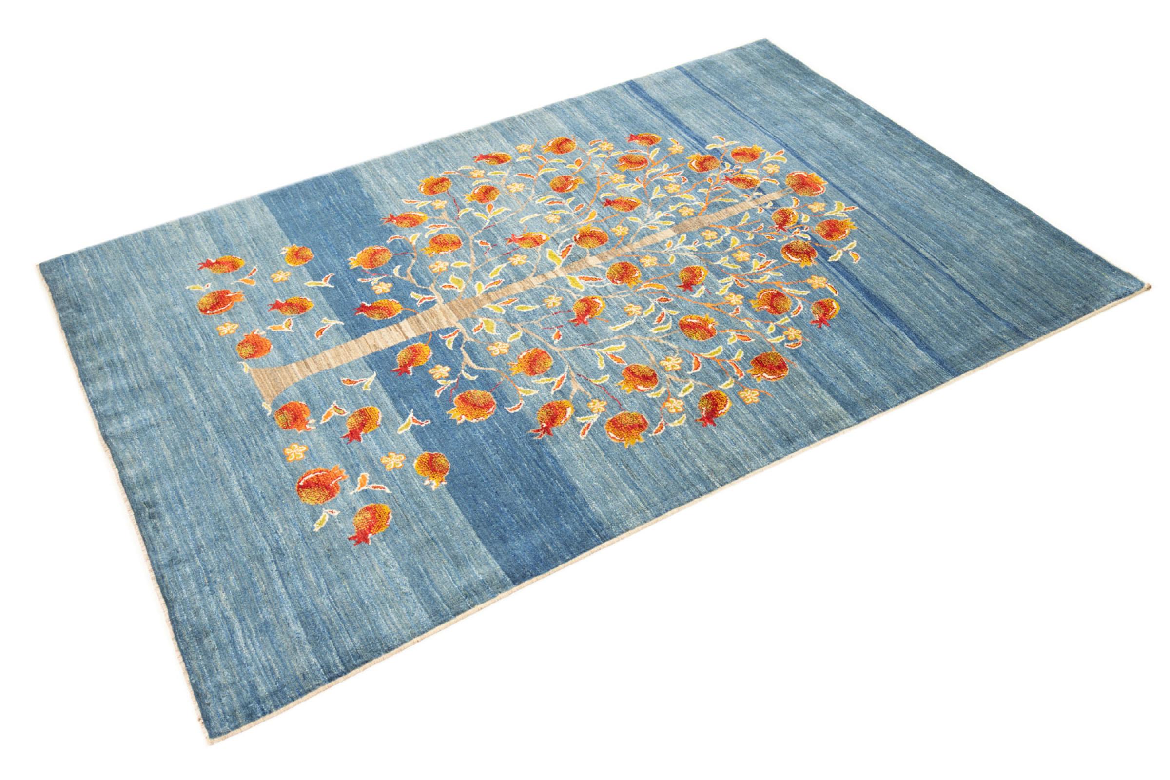 Esta hermosa alfombra es una Gabbeh persa y por lo tanto pertenece a las alfombras Gabbeh de mayor calidad. Las alfombras son anudadas por nómadas o seminómadas en Irán según la artesanía tradicional. Los motivos y patrones simples están inspirados en su mayoría por el entorno inmediato de los nómadas. Por ejemplo, los camellos, árboles o arbustos se pueden encontrar en las alfombras tradicionales. Las alfombras gabbeh persas están hechas de lana de rebaños de ovejas criados localmente. Por lo tanto, la lana se sigue hilando a mano. Así, cada una de estas alfombras orientales encarna un carácter único de la cultura de siglos de antigüedad.