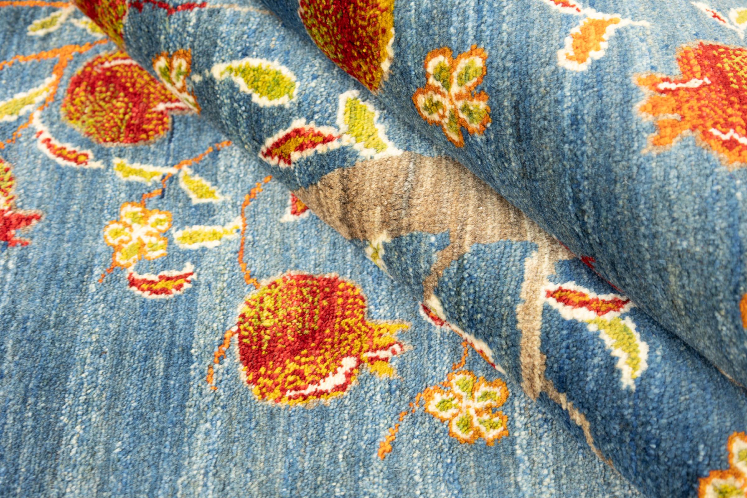 Esta alfombra está hecha de lana de oveja hilada a mano de la más alta calidad. Especialmente en Irán (antigua Persia), la lana de Afganistán y Pakistán sigue siendo hilada a mano antes de que comience el anudado de la alfombra. La lana ha demostrado ser un material natural y extremadamente resistente a lo largo de los siglos. Entre otras cosas, tiene propiedades repelentes de la suciedad y aislantes del calor. Al mismo tiempo, la lana es incomparablemente suave y tiene un brillo natural.