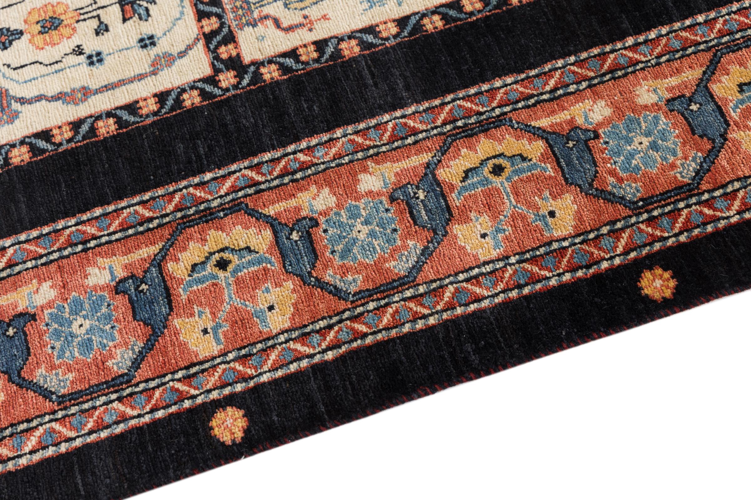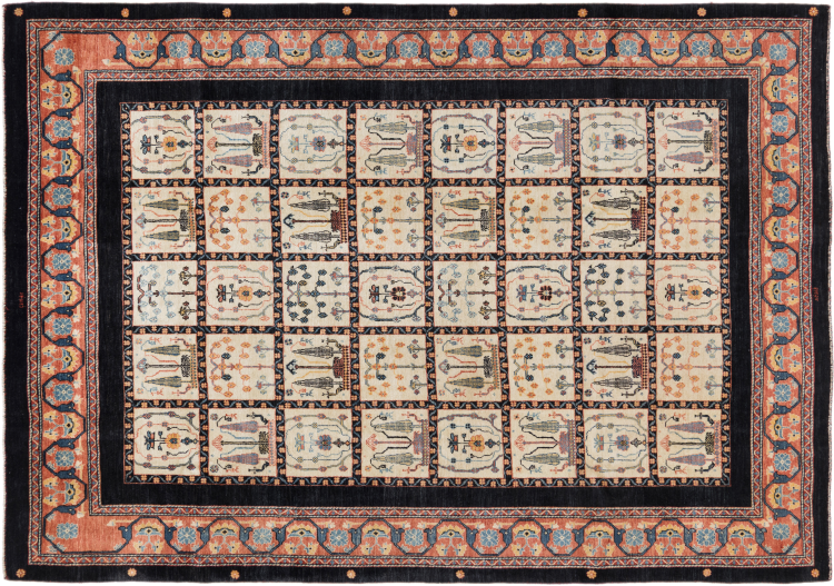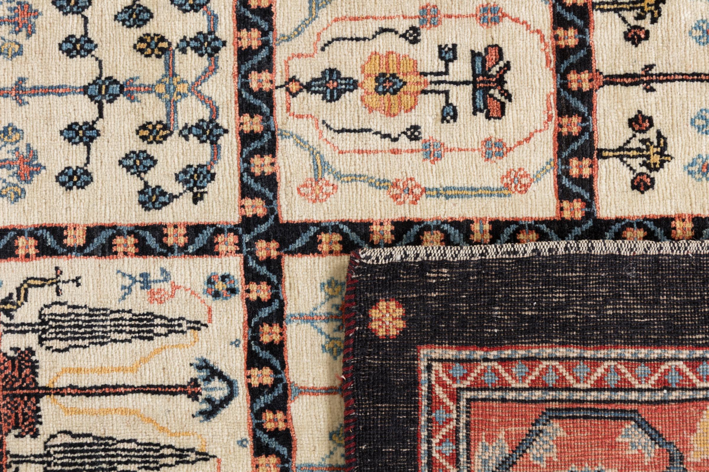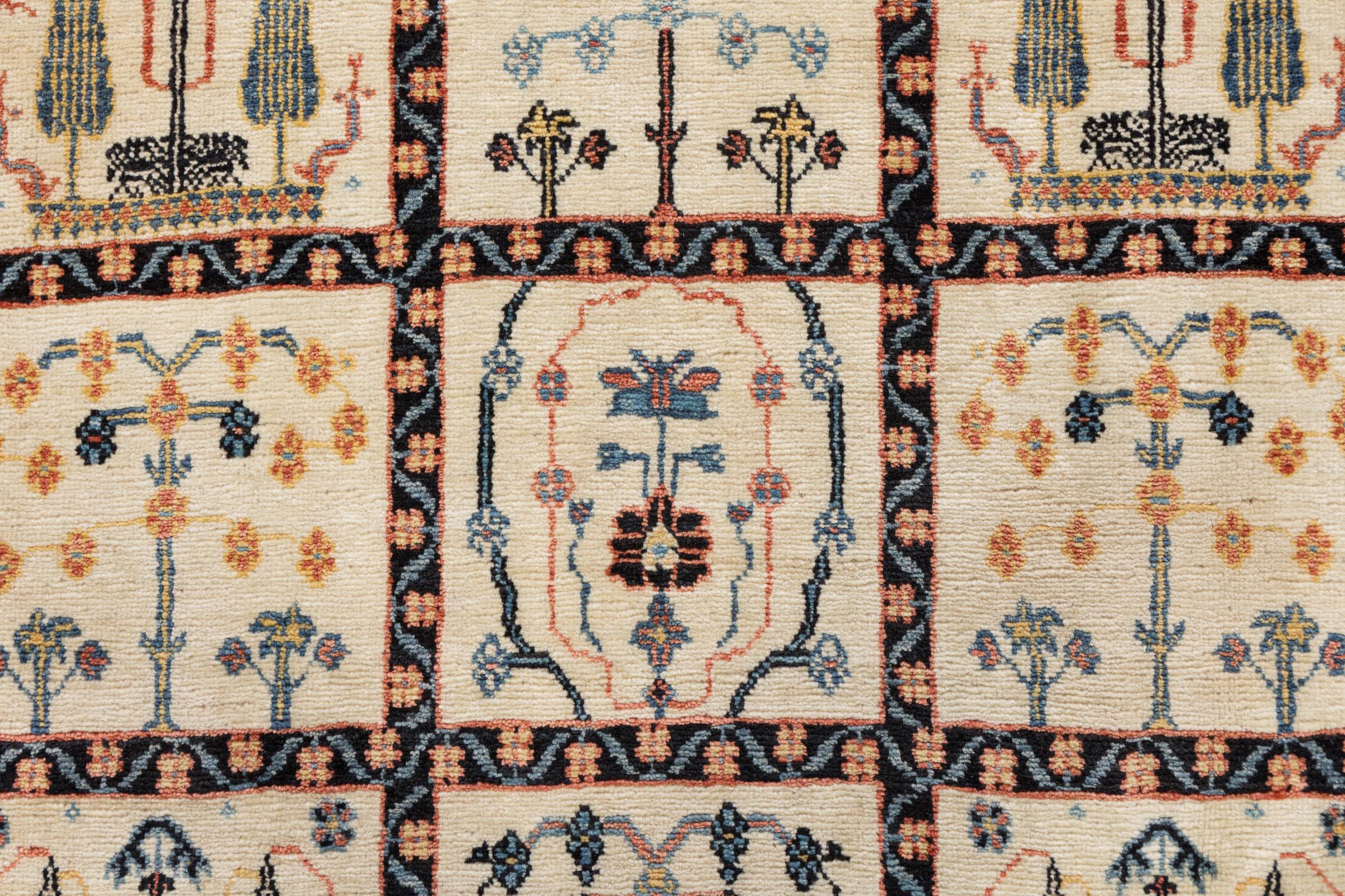 Esta alfombra está hecha de lana de oveja hilada a mano de la más alta calidad. Especialmente en Irán (antigua Persia), la lana de Afganistán y Pakistán sigue siendo hilada a mano antes de que comience el anudado de la alfombra. La lana ha demostrado ser un material natural y extremadamente resistente a lo largo de los siglos. Entre otras cosas, tiene propiedades repelentes de la suciedad y aislantes del calor. Al mismo tiempo, la lana es incomparablemente suave y tiene un brillo natural.