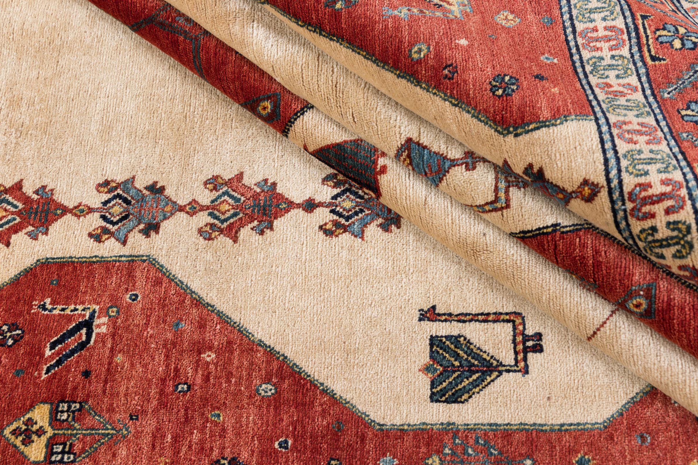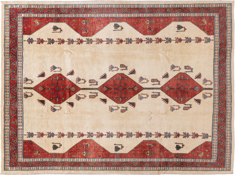Esta alfombra está hecha de lana de oveja hilada a mano de la más alta calidad. Especialmente en Irán (antigua Persia), la lana de Afganistán y Pakistán sigue siendo hilada a mano antes de que comience el anudado de la alfombra. La lana ha demostrado ser un material natural y extremadamente resistente a lo largo de los siglos. Entre otras cosas, tiene propiedades repelentes de la suciedad y aislantes del calor. Al mismo tiempo, la lana es incomparablemente suave y tiene un brillo natural.