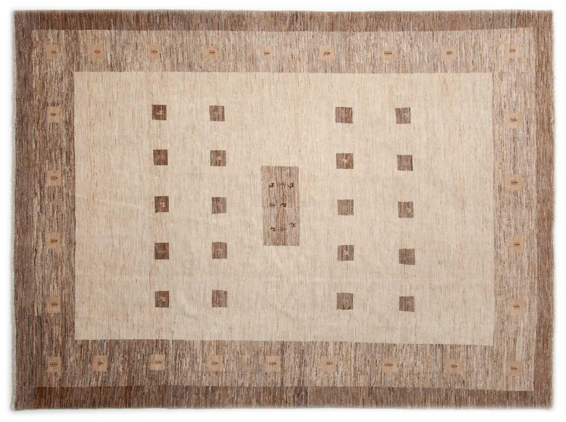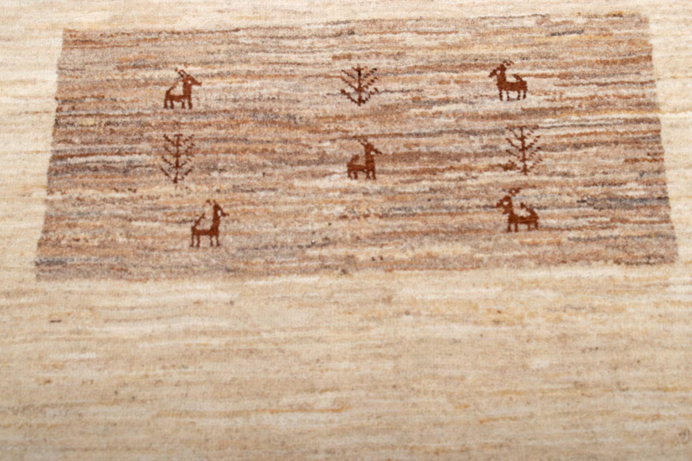 Esta hermosa alfombra es una Gabbeh persa y por lo tanto pertenece a las alfombras Gabbeh de mayor calidad. Las alfombras son anudadas por nómadas o seminómadas en Irán según la artesanía tradicional. Los motivos y patrones simples están inspirados en su mayoría por el entorno inmediato de los nómadas. Por ejemplo, los camellos, árboles o arbustos se pueden encontrar en las alfombras tradicionales. Las alfombras gabbeh persas están hechas de lana de rebaños de ovejas criados localmente. Por lo tanto, la lana se sigue hilando a mano. Así, cada una de estas alfombras orientales encarna un carácter único de la cultura de siglos de antigüedad.