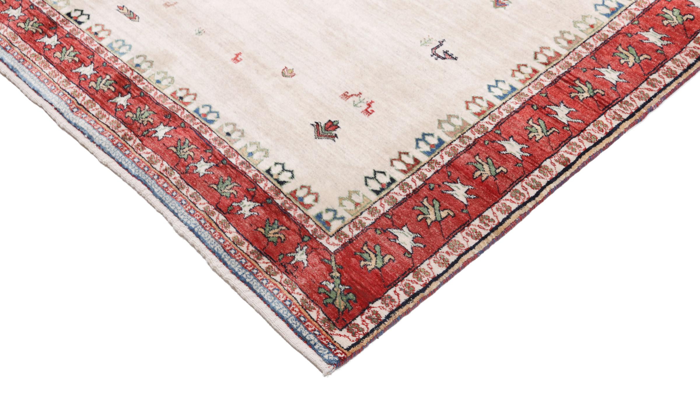 Un refinamiento de las ya conocidas alfombras Gabbeh: Esta es esta persa Gabbeh Loribaft. Con su anudado más fino y su hermoso diseño, sabe cómo impresionar. Loren lo anudó a mano en el sur de Persia con la mejor lana de oveja hilada a mano. Solo se utilizan tintes vegetales puros para teñir la lana. Con esta alfombra obtienes el estándar más alto de una alfombra Gabbeh para tu hogar.