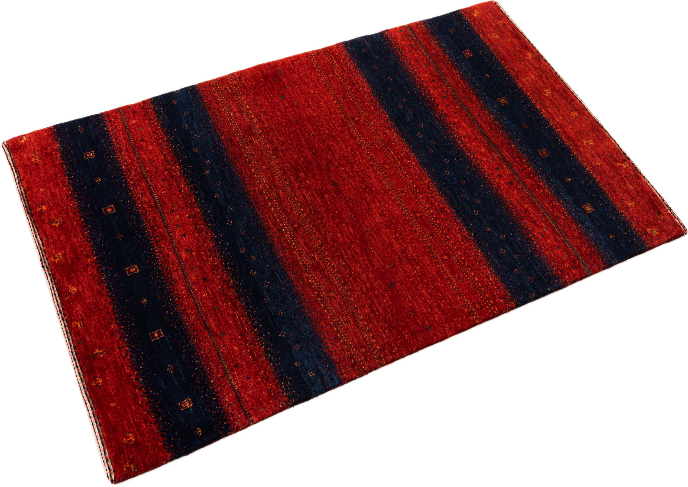 Esta hermosa alfombra es una Gabbeh persa y por lo tanto pertenece a las alfombras Gabbeh de mayor calidad. Las alfombras son anudadas por nómadas o seminómadas en Irán según la artesanía tradicional. Los motivos y patrones simples están inspirados en su mayoría por el entorno inmediato de los nómadas. Por ejemplo, los camellos, árboles o arbustos se pueden encontrar en las alfombras tradicionales. Las alfombras gabbeh persas están hechas de lana de rebaños de ovejas criados localmente. Por lo tanto, la lana se sigue hilando a mano. Así, cada una de estas alfombras orientales encarna un carácter único de la cultura de siglos de antigüedad.