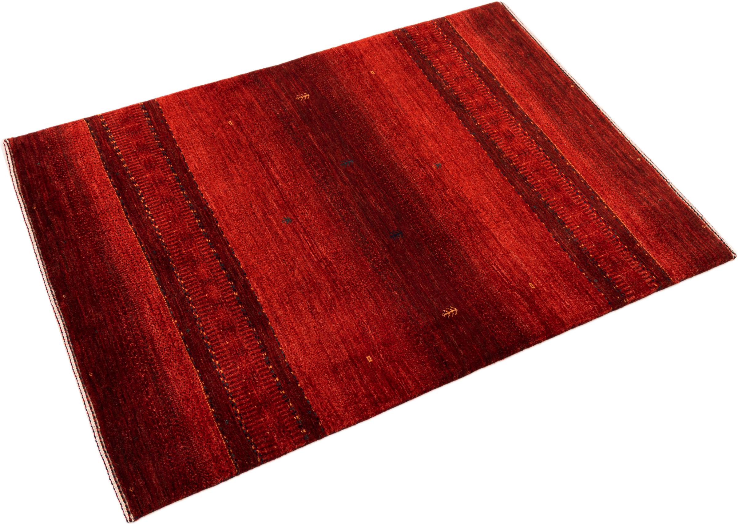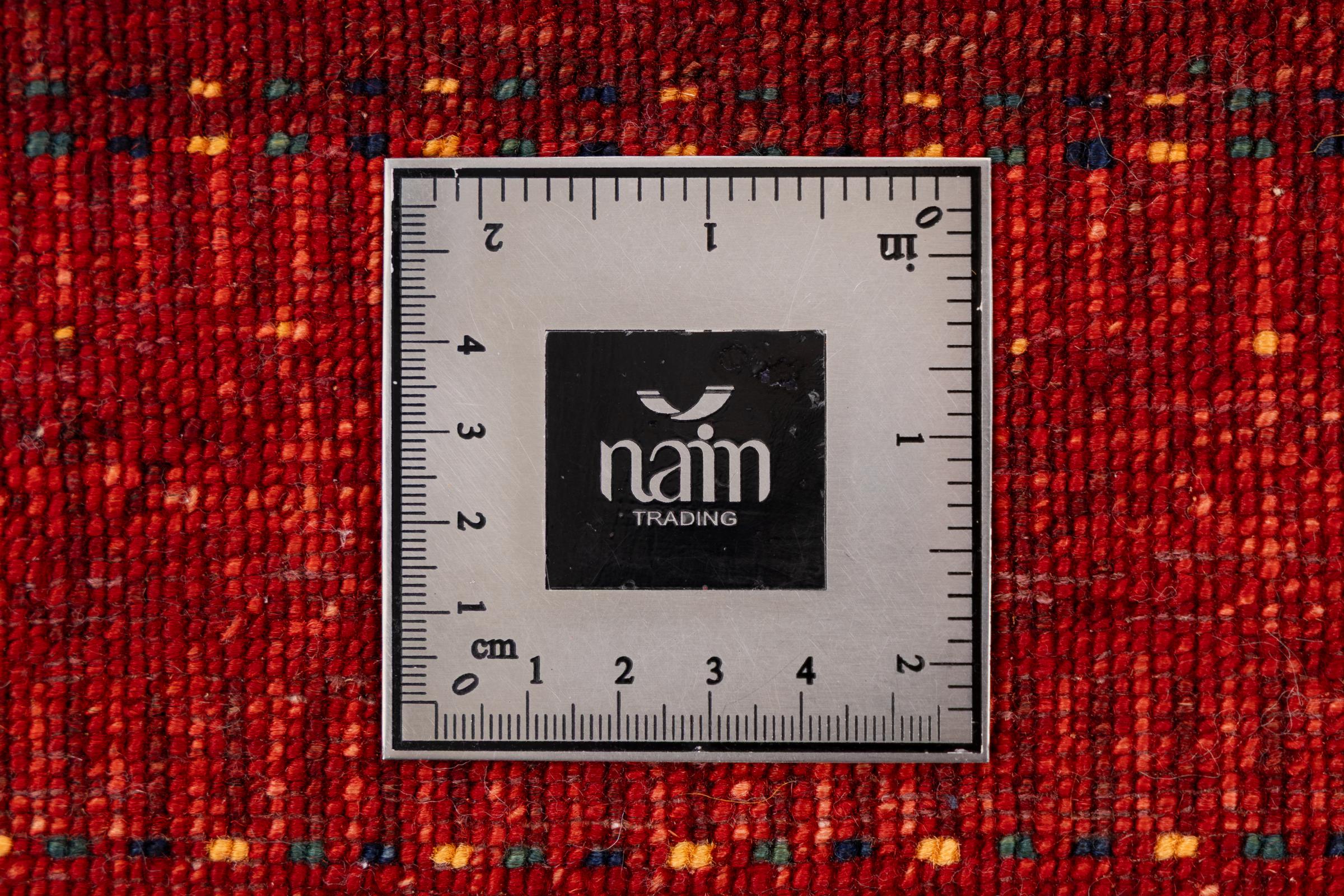 Esta hermosa alfombra es una Gabbeh persa y por lo tanto pertenece a las alfombras Gabbeh de mayor calidad. Las alfombras son anudadas por nómadas o seminómadas en Irán según la artesanía tradicional. Los motivos y patrones simples están inspirados en su mayoría por el entorno inmediato de los nómadas. Por ejemplo, los camellos, árboles o arbustos se pueden encontrar en las alfombras tradicionales. Las alfombras gabbeh persas están hechas de lana de rebaños de ovejas criados localmente. Por lo tanto, la lana se sigue hilando a mano. Así, cada una de estas alfombras orientales encarna un carácter único de la cultura de siglos de antigüedad.
