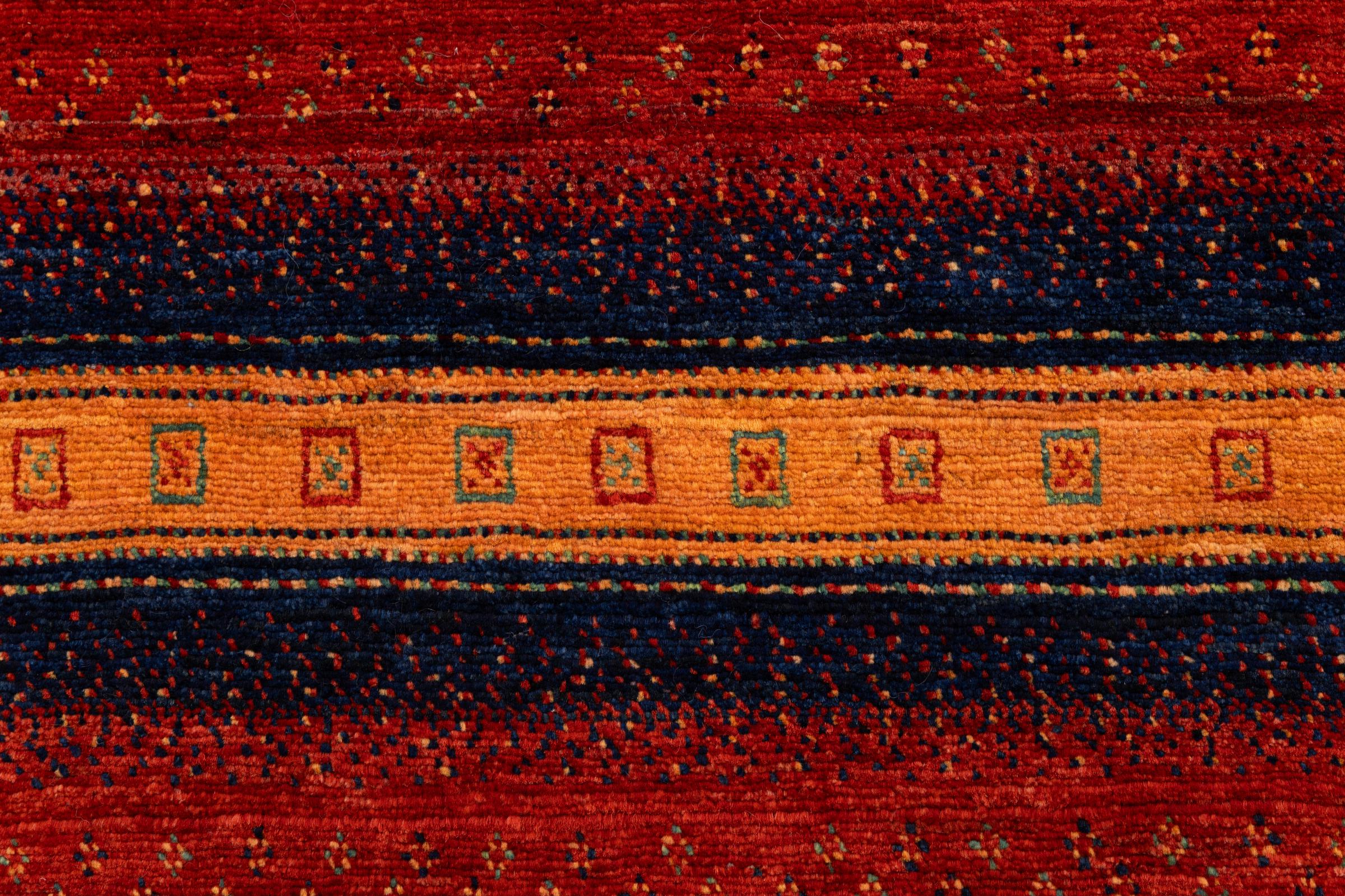 Un refinamiento de las ya conocidas alfombras Gabbeh: Esta es esta persa Gabbeh Loribaft. Con su anudado más fino y su hermoso diseño, sabe cómo impresionar. Loren lo anudó a mano en el sur de Persia con la mejor lana de oveja hilada a mano. Solo se utilizan tintes vegetales puros para teñir la lana. Con esta alfombra obtienes el estándar más alto de una alfombra Gabbeh para tu hogar.