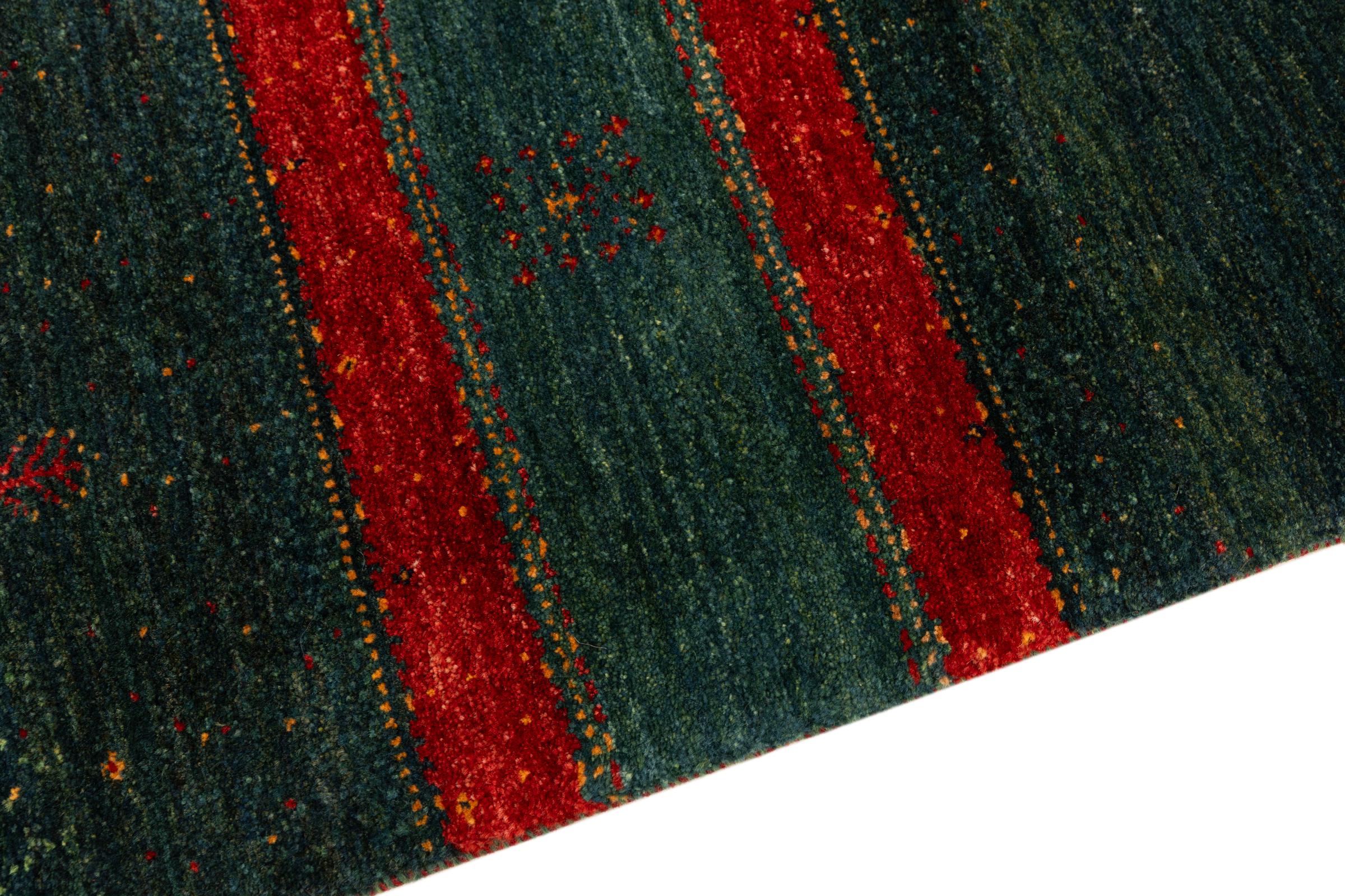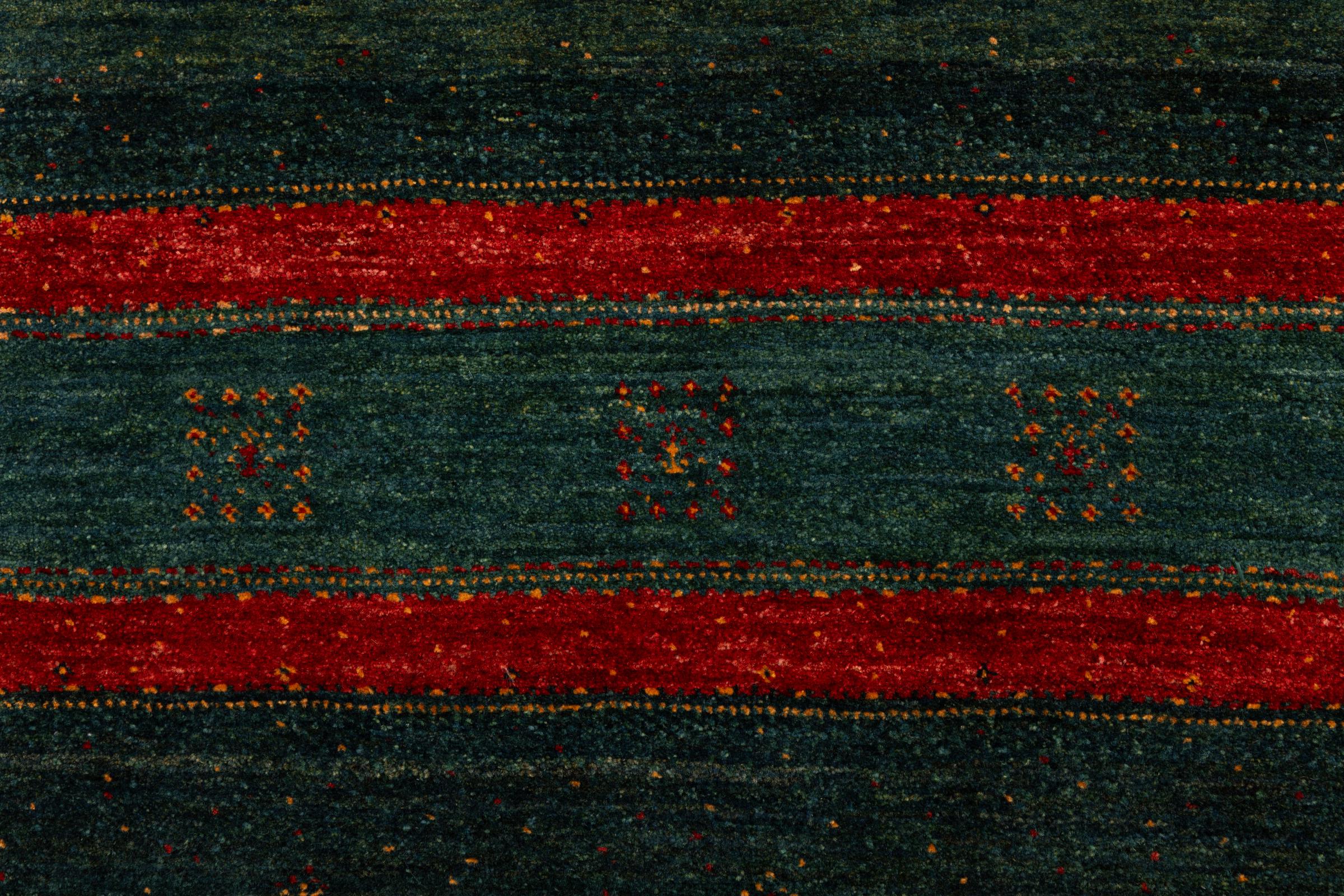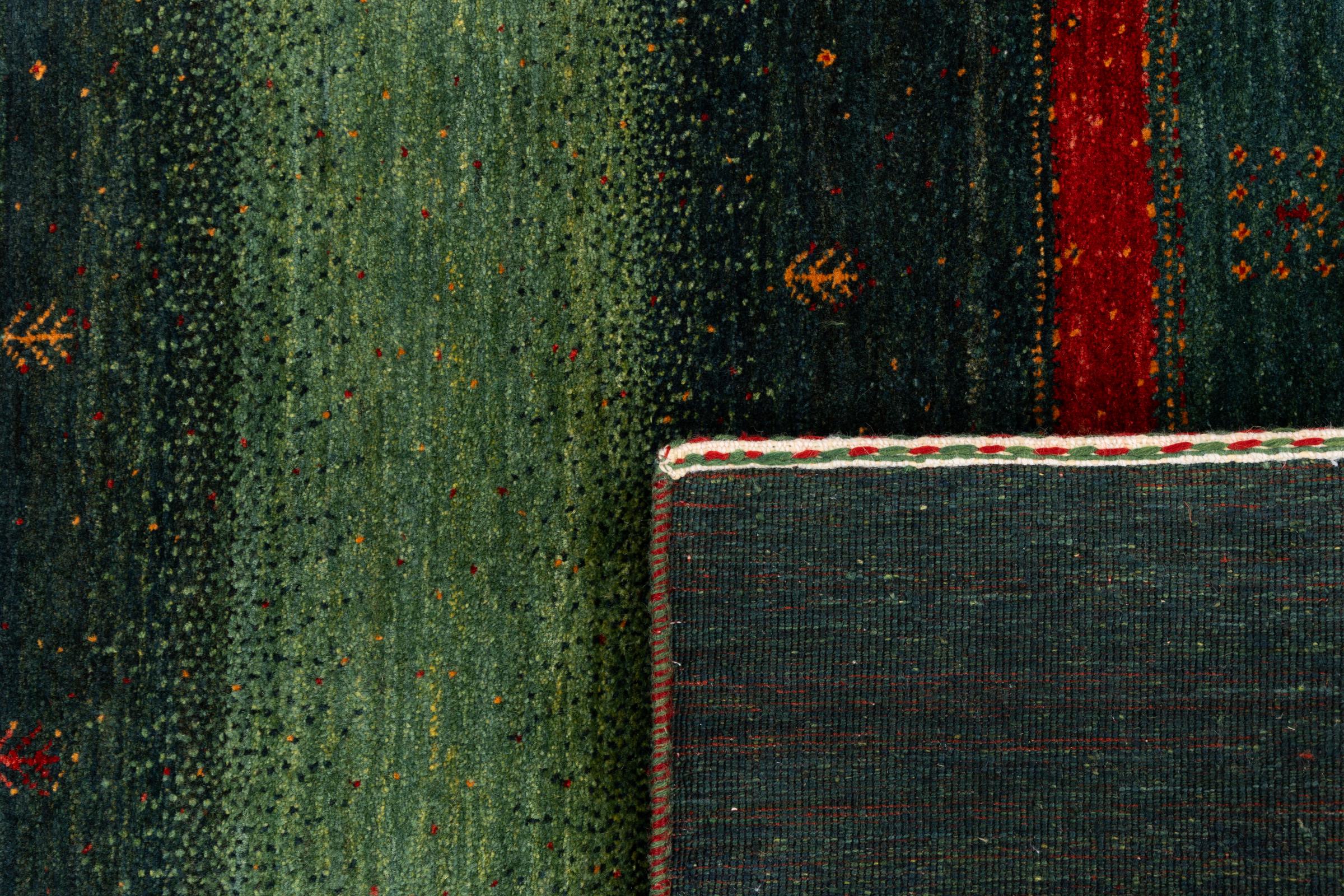 Un refinamiento de las ya conocidas alfombras Gabbeh: Esta es esta persa Gabbeh Loribaft. Con su anudado más fino y su hermoso diseño, sabe cómo impresionar. Loren lo anudó a mano en el sur de Persia con la mejor lana de oveja hilada a mano. Solo se utilizan tintes vegetales puros para teñir la lana. Con esta alfombra obtienes el estándar más alto de una alfombra Gabbeh para tu hogar.