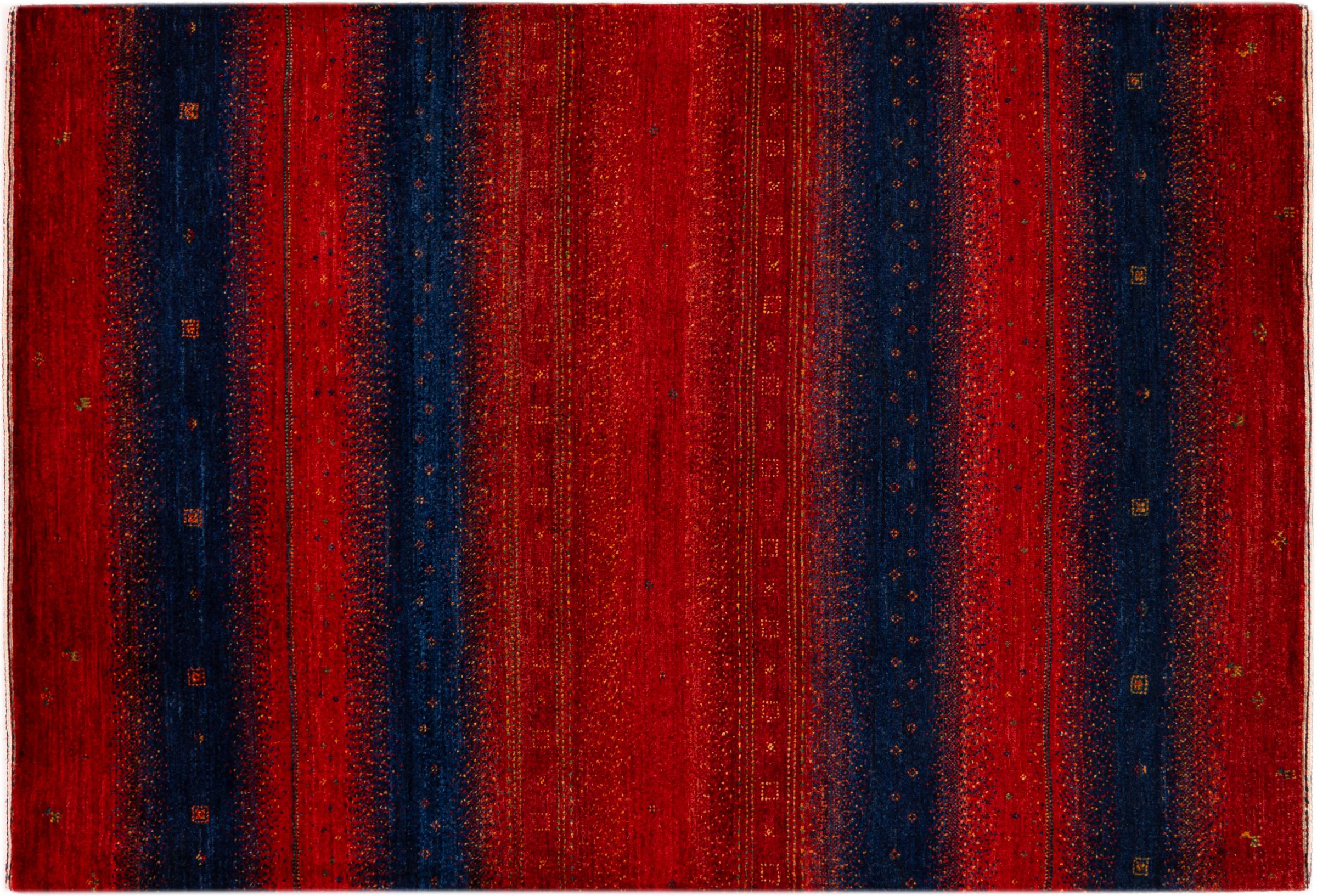 Esta hermosa alfombra es una Gabbeh persa y por lo tanto pertenece a las alfombras Gabbeh de mayor calidad. Las alfombras son anudadas por nómadas o seminómadas en Irán según la artesanía tradicional. Los motivos y patrones simples están inspirados en su mayoría por el entorno inmediato de los nómadas. Por ejemplo, los camellos, árboles o arbustos se pueden encontrar en las alfombras tradicionales. Las alfombras gabbeh persas están hechas de lana de rebaños de ovejas criados localmente. Por lo tanto, la lana se sigue hilando a mano. Así, cada una de estas alfombras orientales encarna un carácter único de la cultura de siglos de antigüedad.