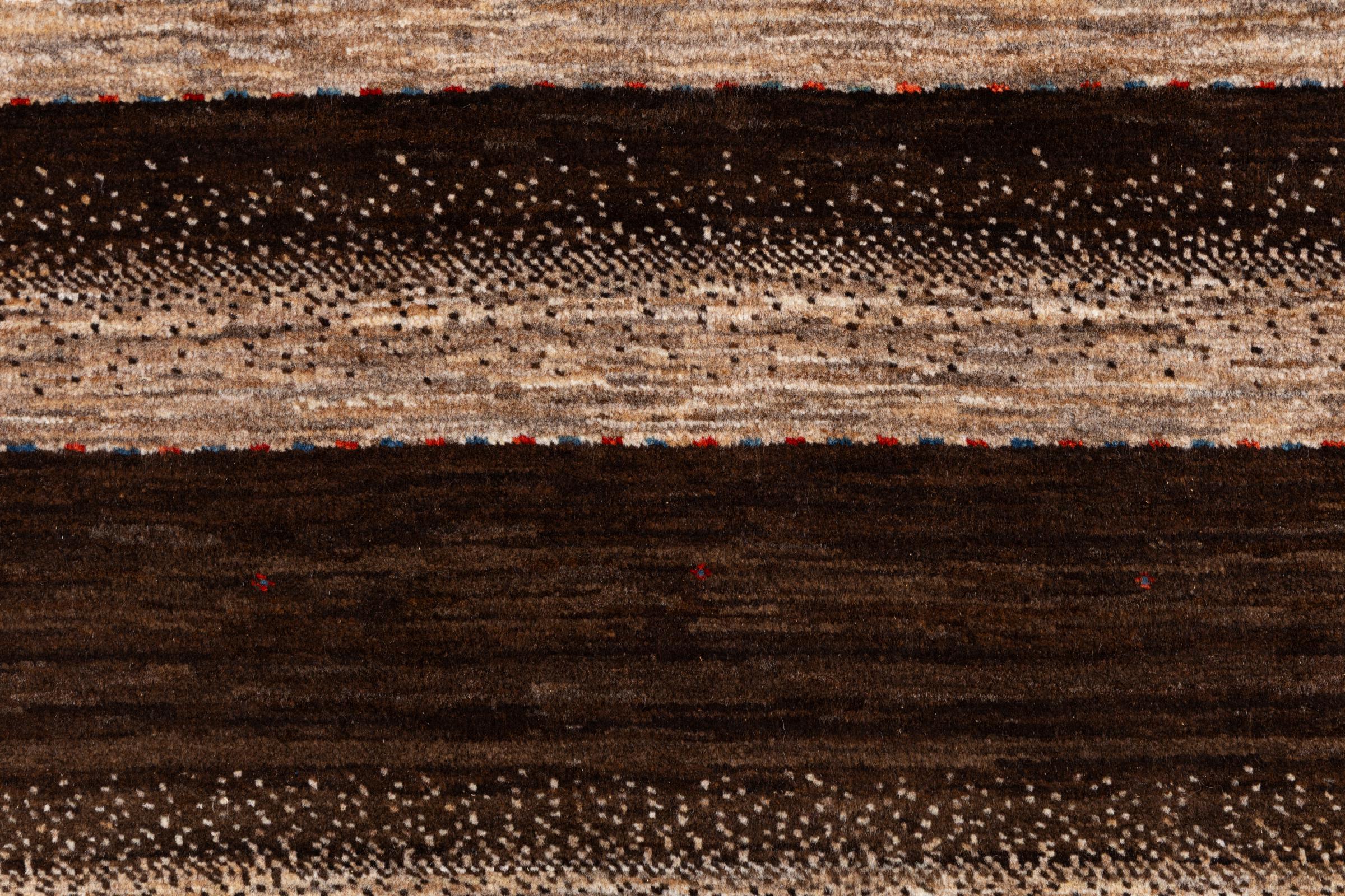 Un refinamiento de las ya conocidas alfombras Gabbeh: Esta es esta persa Gabbeh Loribaft. Con su anudado más fino y su hermoso diseño, sabe cómo impresionar. Loren lo anudó a mano en el sur de Persia con la mejor lana de oveja hilada a mano. Solo se utilizan tintes vegetales puros para teñir la lana. Con esta alfombra obtienes el estándar más alto de una alfombra Gabbeh para tu hogar.