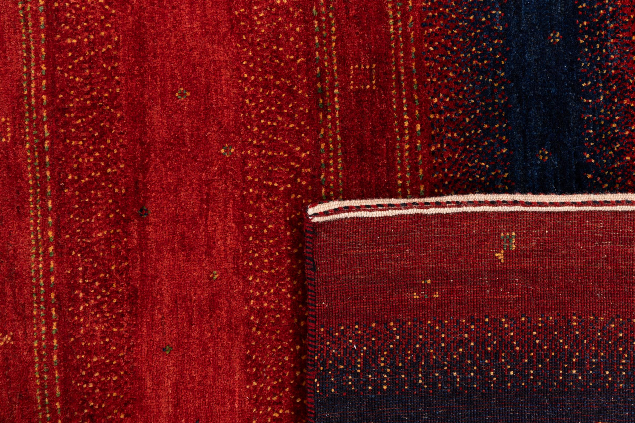 Un refinamiento de las ya conocidas alfombras Gabbeh: Esta es esta persa Gabbeh Loribaft. Con su anudado más fino y su hermoso diseño, sabe cómo impresionar. Loren lo anudó a mano en el sur de Persia con la mejor lana de oveja hilada a mano. Solo se utilizan tintes vegetales puros para teñir la lana. Con esta alfombra obtienes el estándar más alto de una alfombra Gabbeh para tu hogar.