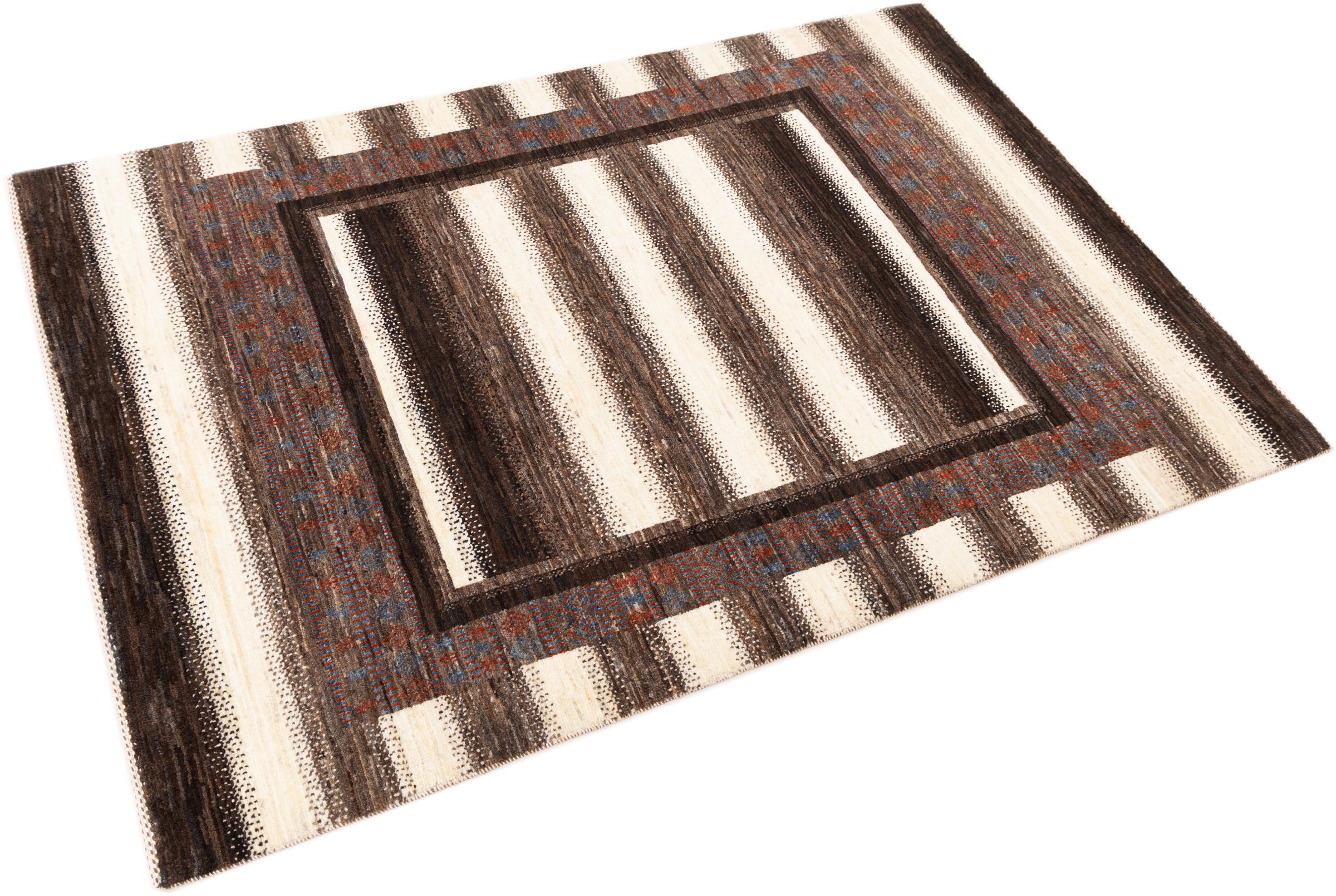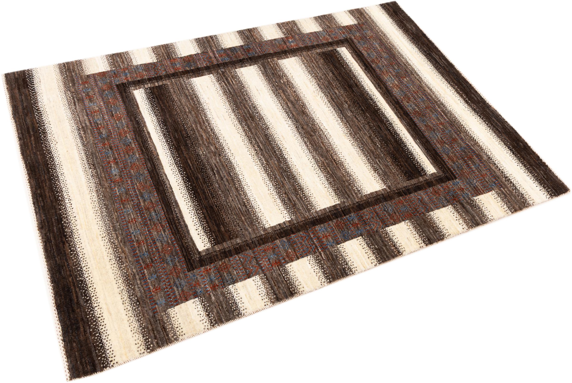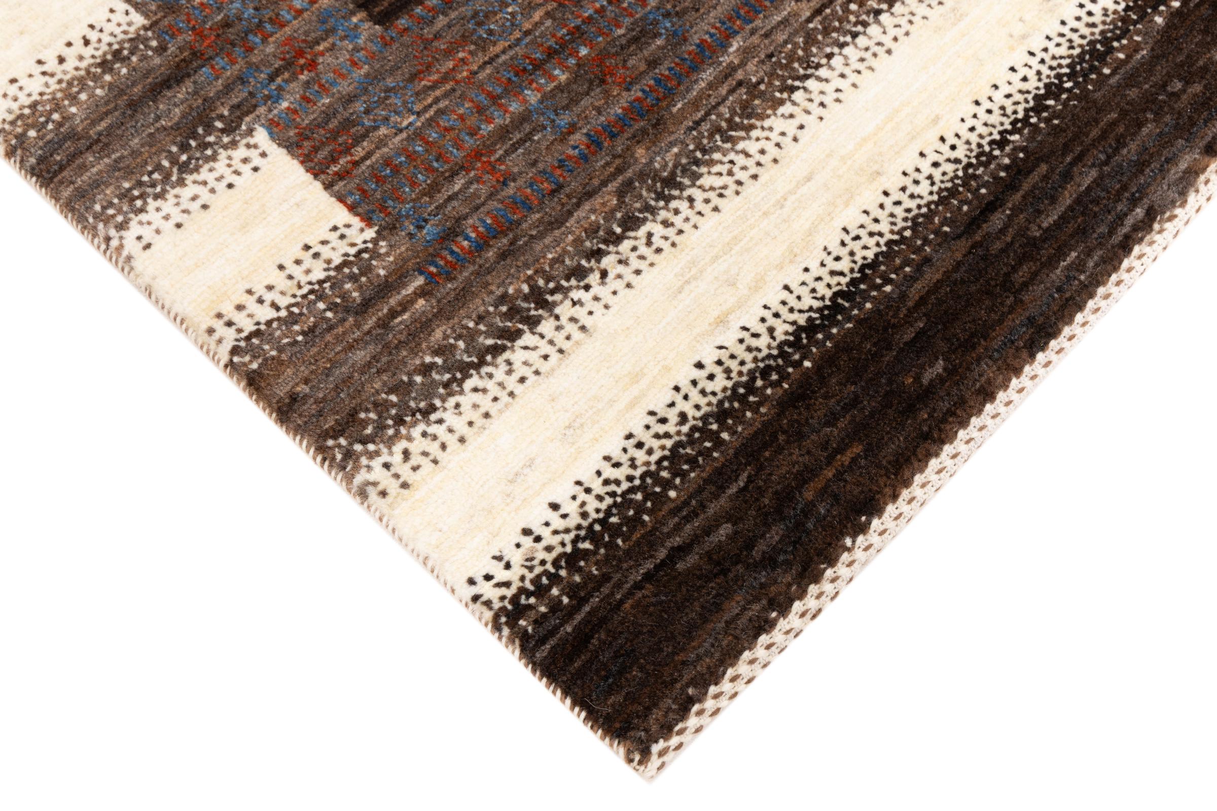 Un refinamiento de las ya conocidas alfombras Gabbeh: Esta es esta persa Gabbeh Loribaft. Con su anudado más fino y su hermoso diseño, sabe cómo impresionar. Loren lo anudó a mano en el sur de Persia con la mejor lana de oveja hilada a mano. Solo se utilizan tintes vegetales puros para teñir la lana. Con esta alfombra obtienes el estándar más alto de una alfombra Gabbeh para tu hogar.