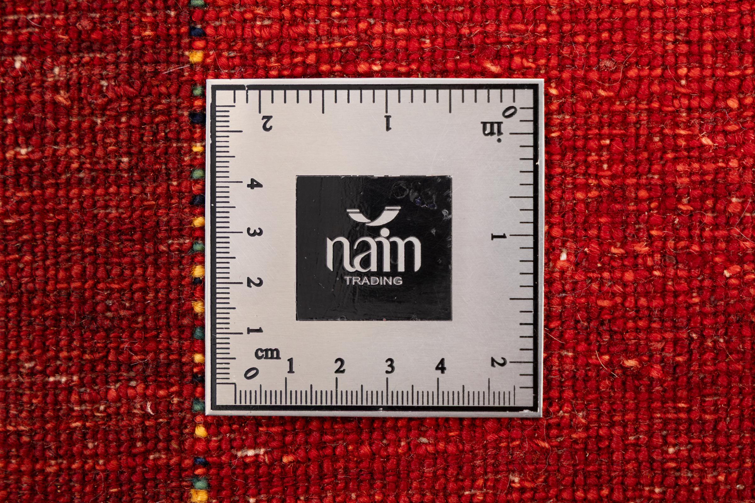 Esta hermosa alfombra es una Gabbeh persa y por lo tanto pertenece a las alfombras Gabbeh de mayor calidad. Las alfombras son anudadas por nómadas o seminómadas en Irán según la artesanía tradicional. Los motivos y patrones simples están inspirados en su mayoría por el entorno inmediato de los nómadas. Por ejemplo, los camellos, árboles o arbustos se pueden encontrar en las alfombras tradicionales. Las alfombras gabbeh persas están hechas de lana de rebaños de ovejas criados localmente. Por lo tanto, la lana se sigue hilando a mano. Así, cada una de estas alfombras orientales encarna un carácter único de la cultura de siglos de antigüedad.