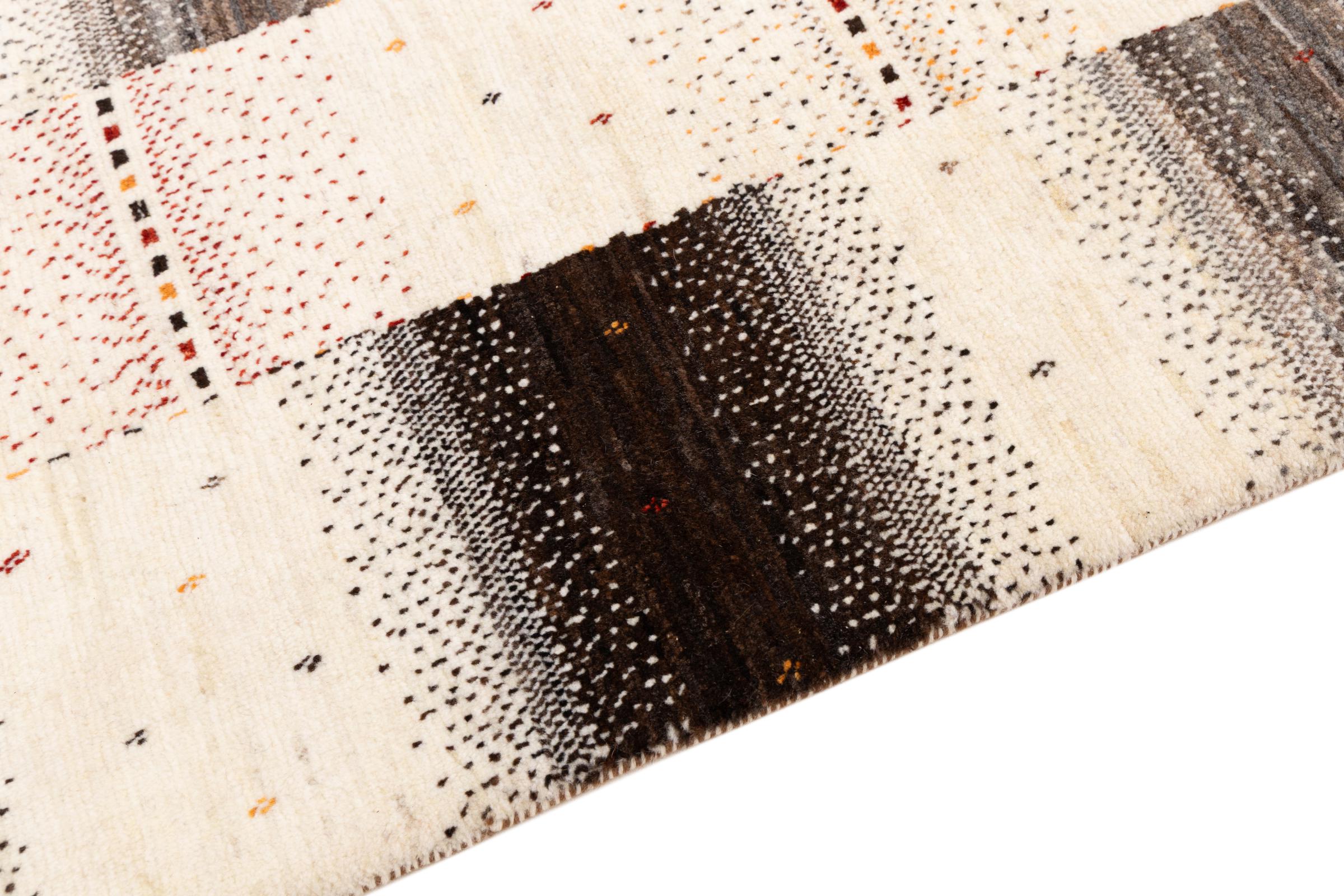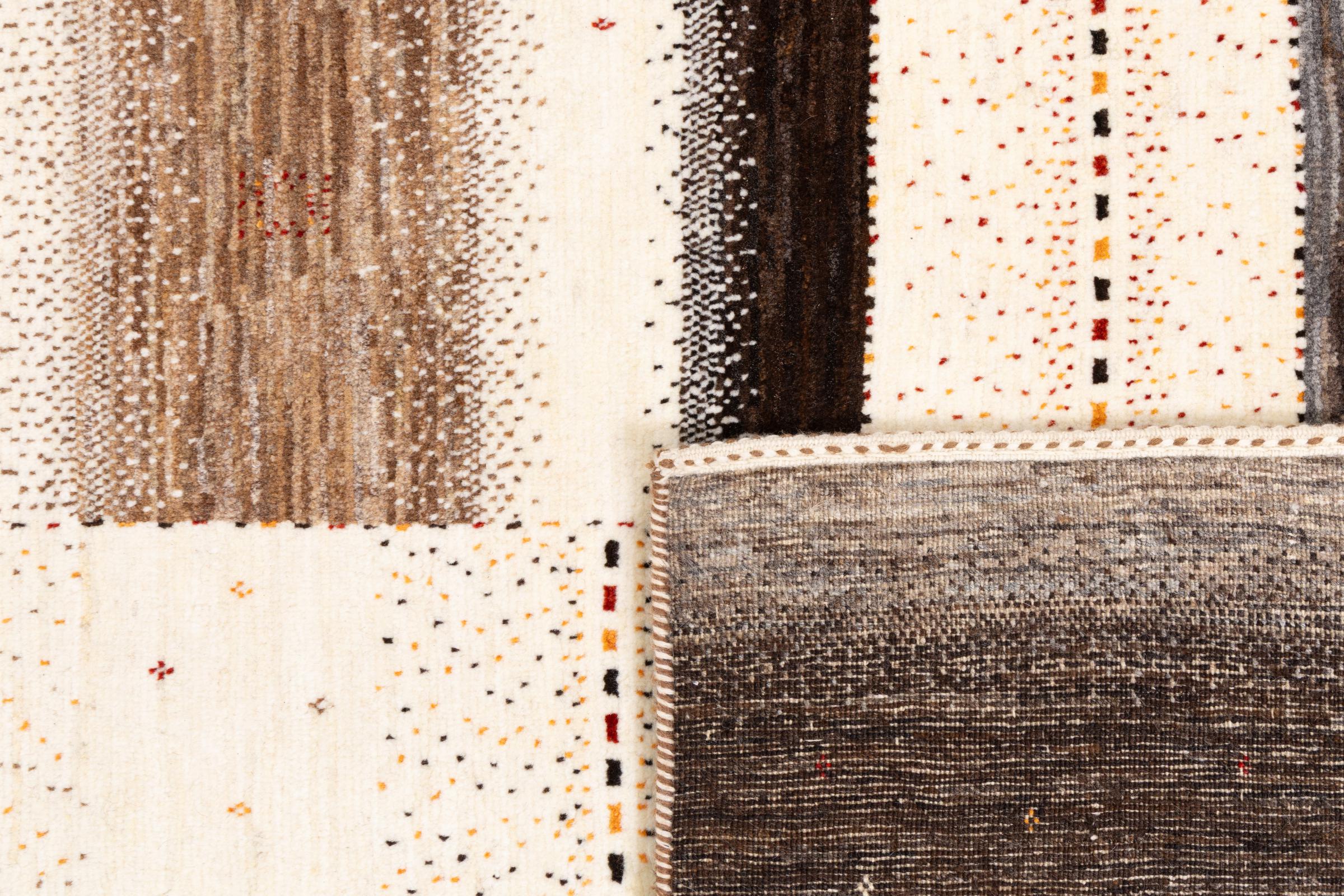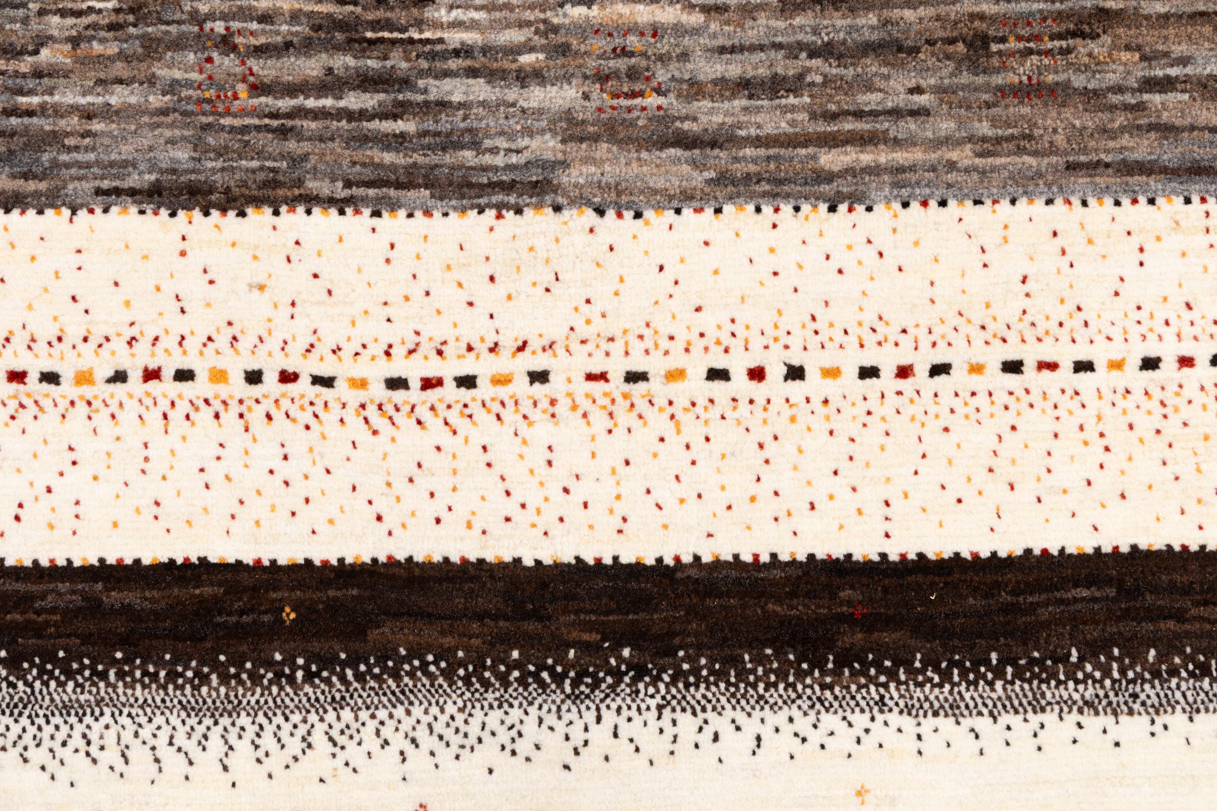 Un refinamiento de las ya conocidas alfombras Gabbeh: Esta es esta persa Gabbeh Loribaft. Con su anudado más fino y su hermoso diseño, sabe cómo impresionar. Loren lo anudó a mano en el sur de Persia con la mejor lana de oveja hilada a mano. Solo se utilizan tintes vegetales puros para teñir la lana. Con esta alfombra obtienes el estándar más alto de una alfombra Gabbeh para tu hogar.