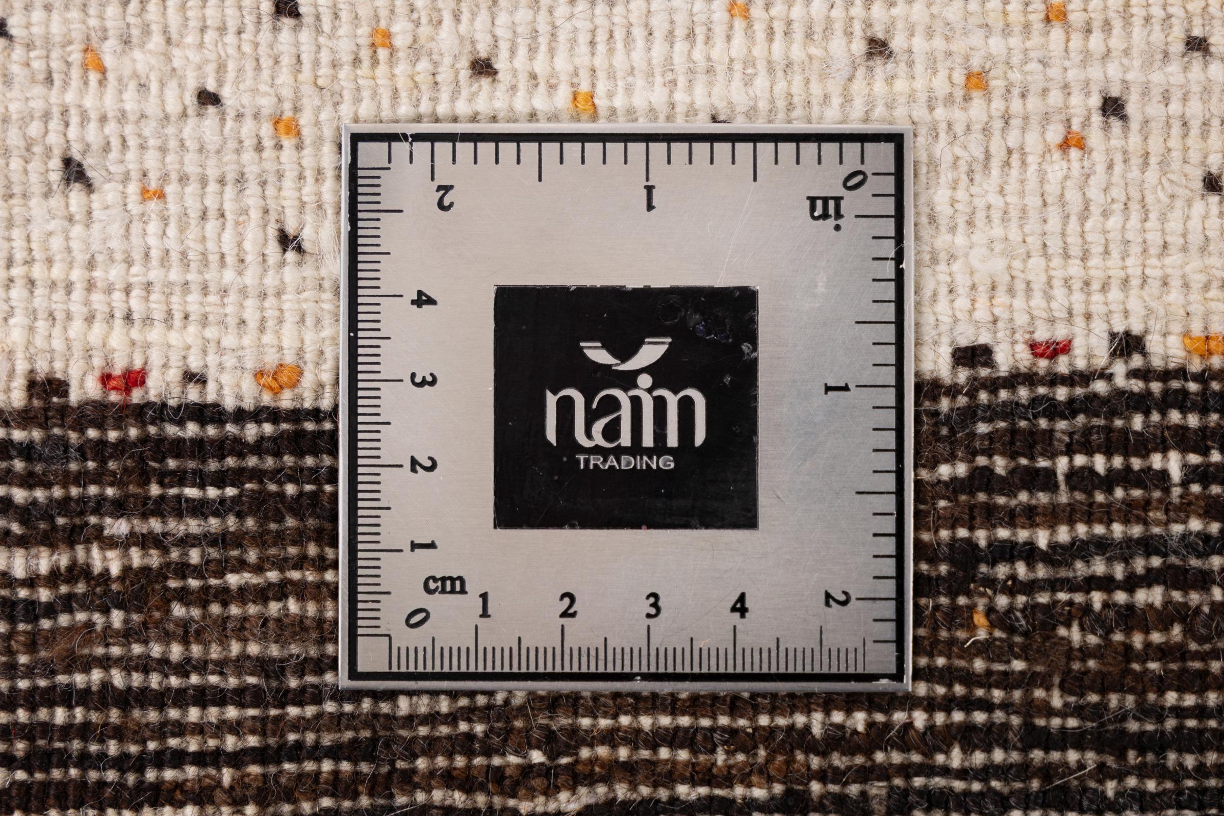 Esta hermosa alfombra es una Gabbeh persa y por lo tanto pertenece a las alfombras Gabbeh de mayor calidad. Las alfombras son anudadas por nómadas o seminómadas en Irán según la artesanía tradicional. Los motivos y patrones simples están inspirados en su mayoría por el entorno inmediato de los nómadas. Por ejemplo, los camellos, árboles o arbustos se pueden encontrar en las alfombras tradicionales. Las alfombras gabbeh persas están hechas de lana de rebaños de ovejas criados localmente. Por lo tanto, la lana se sigue hilando a mano. Así, cada una de estas alfombras orientales encarna un carácter único de la cultura de siglos de antigüedad.