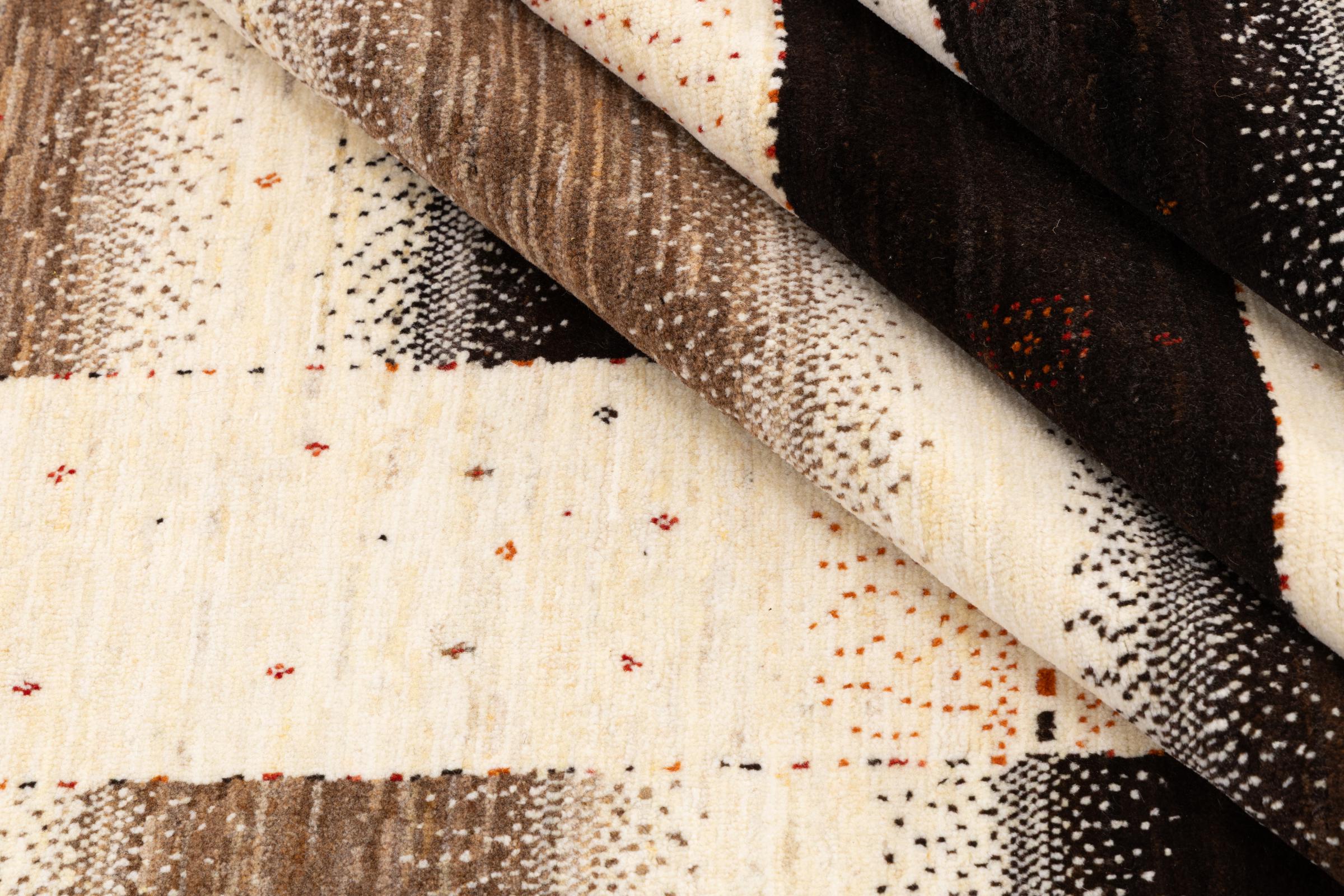 Un refinamiento de las ya conocidas alfombras Gabbeh: Esta es esta persa Gabbeh Loribaft. Con su anudado más fino y su hermoso diseño, sabe cómo impresionar. Loren lo anudó a mano en el sur de Persia con la mejor lana de oveja hilada a mano. Solo se utilizan tintes vegetales puros para teñir la lana. Con esta alfombra obtienes el estándar más alto de una alfombra Gabbeh para tu hogar.
