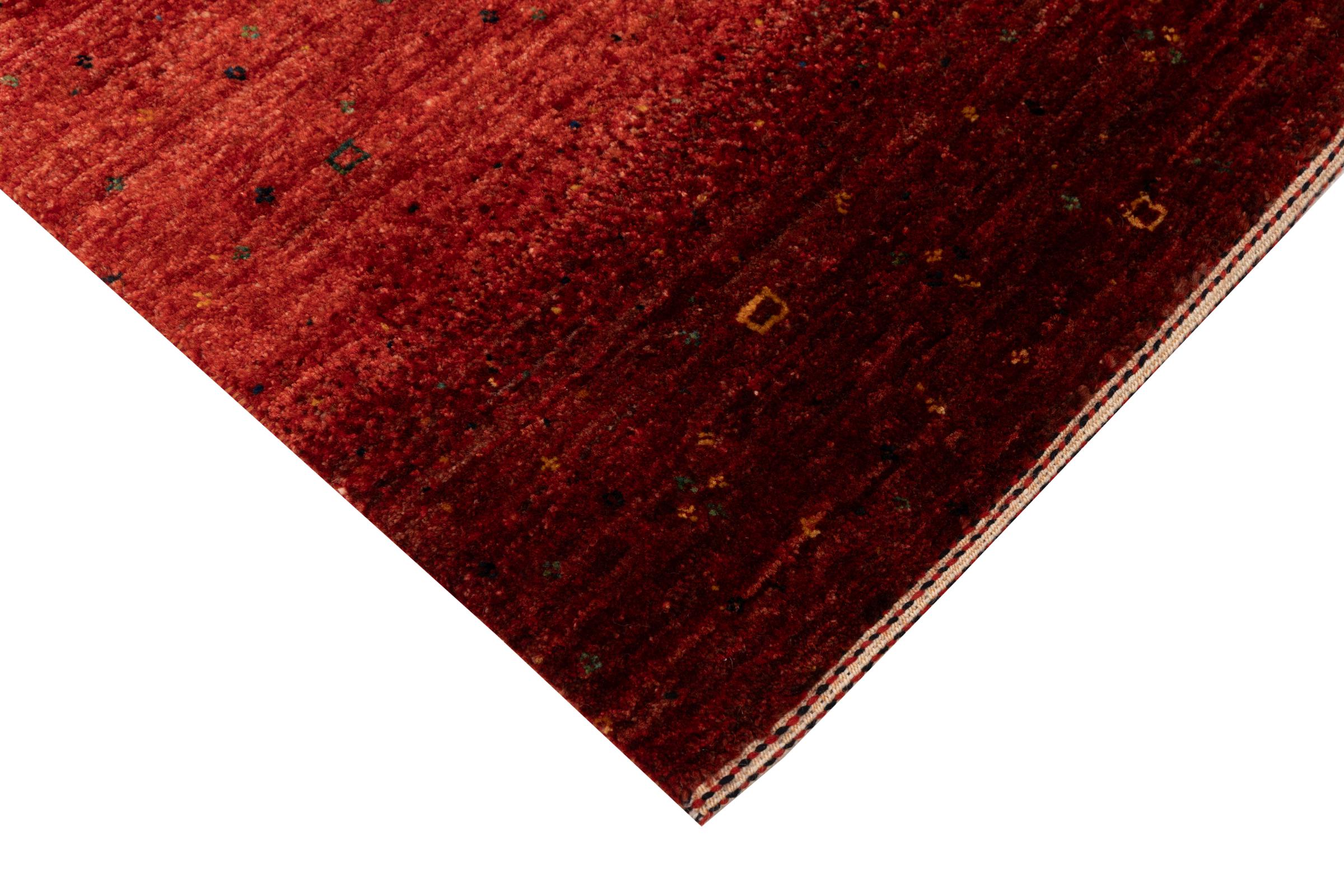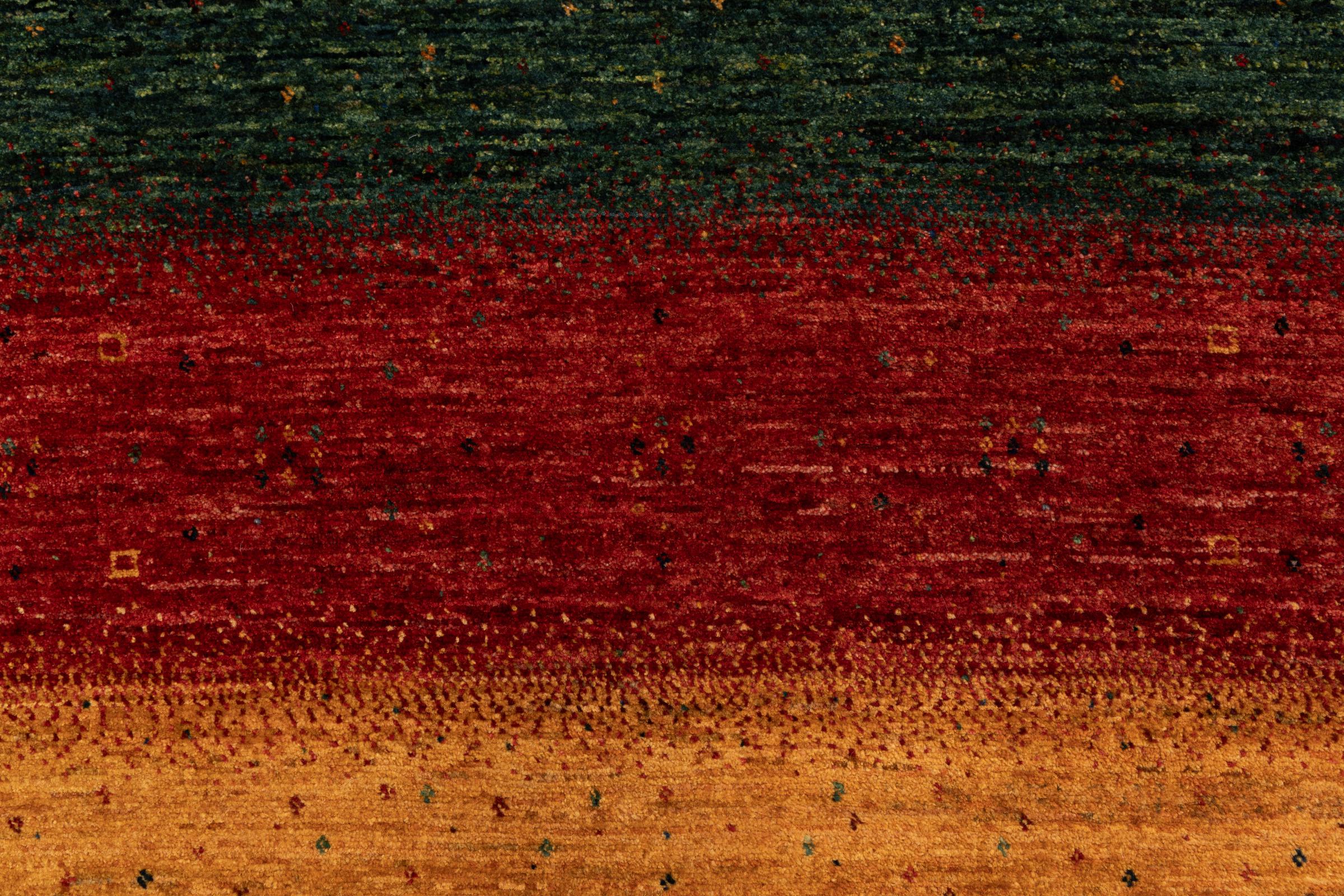 Un refinamiento de las ya conocidas alfombras Gabbeh: Esta es esta persa Gabbeh Loribaft. Con su anudado más fino y su hermoso diseño, sabe cómo impresionar. Loren lo anudó a mano en el sur de Persia con la mejor lana de oveja hilada a mano. Solo se utilizan tintes vegetales puros para teñir la lana. Con esta alfombra obtienes el estándar más alto de una alfombra Gabbeh para tu hogar.