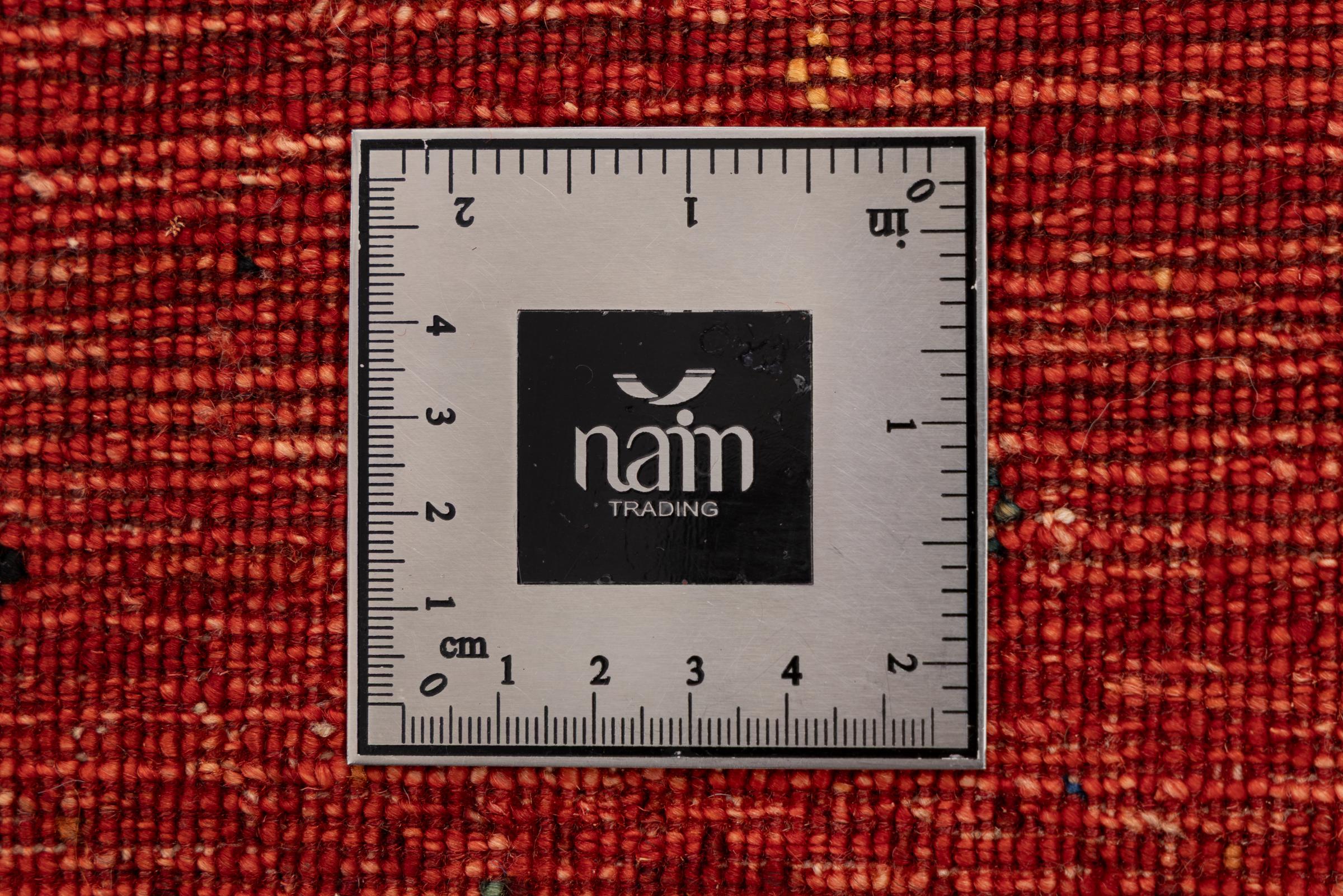 Esta hermosa alfombra es una Gabbeh persa y por lo tanto pertenece a las alfombras Gabbeh de mayor calidad. Las alfombras son anudadas por nómadas o seminómadas en Irán según la artesanía tradicional. Los motivos y patrones simples están inspirados en su mayoría por el entorno inmediato de los nómadas. Por ejemplo, los camellos, árboles o arbustos se pueden encontrar en las alfombras tradicionales. Las alfombras gabbeh persas están hechas de lana de rebaños de ovejas criados localmente. Por lo tanto, la lana se sigue hilando a mano. Así, cada una de estas alfombras orientales encarna un carácter único de la cultura de siglos de antigüedad.