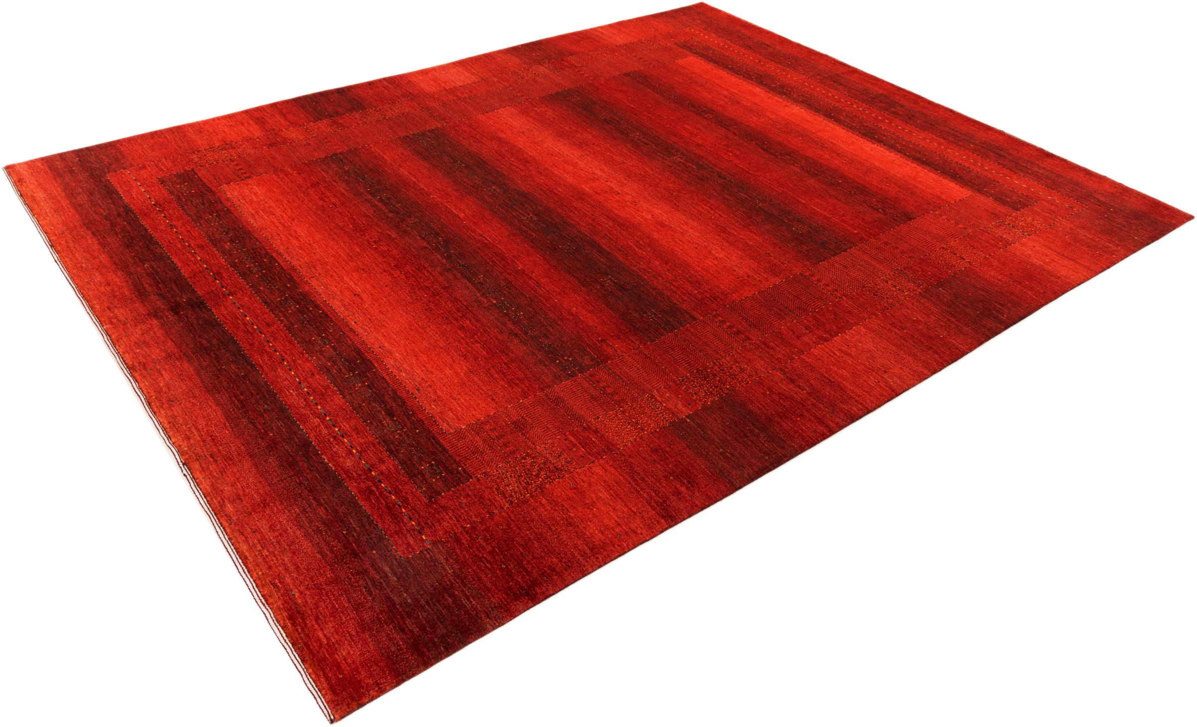 Esta hermosa alfombra es una Gabbeh persa y por lo tanto pertenece a las alfombras Gabbeh de mayor calidad. Las alfombras son anudadas por nómadas o seminómadas en Irán según la artesanía tradicional. Los motivos y patrones simples están inspirados en su mayoría por el entorno inmediato de los nómadas. Por ejemplo, los camellos, árboles o arbustos se pueden encontrar en las alfombras tradicionales. Las alfombras gabbeh persas están hechas de lana de rebaños de ovejas criados localmente. Por lo tanto, la lana se sigue hilando a mano. Así, cada una de estas alfombras orientales encarna un carácter único de la cultura de siglos de antigüedad.