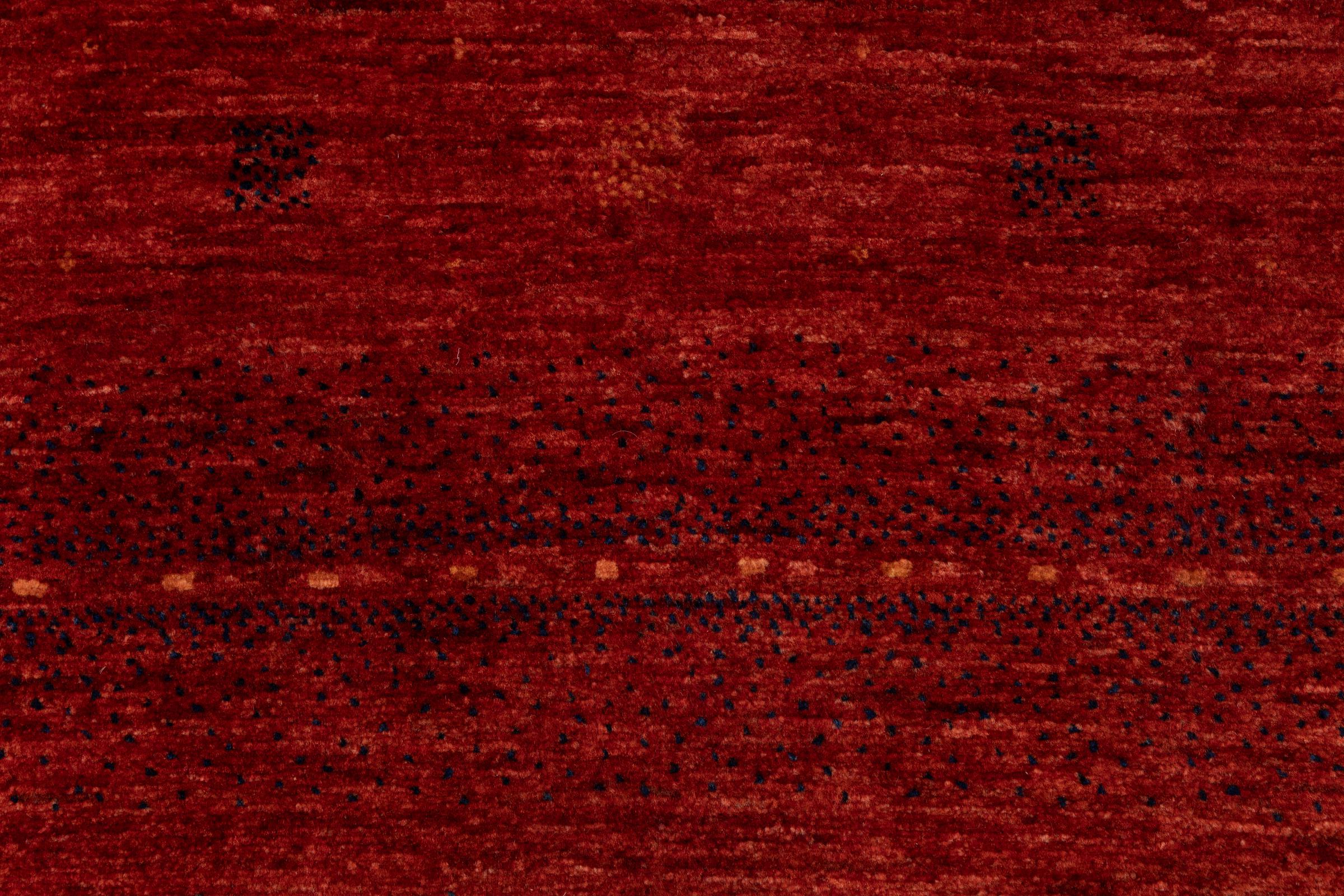 Un refinamiento de las ya conocidas alfombras Gabbeh: Esta es esta persa Gabbeh Loribaft. Con su anudado más fino y su hermoso diseño, sabe cómo impresionar. Loren lo anudó a mano en el sur de Persia con la mejor lana de oveja hilada a mano. Solo se utilizan tintes vegetales puros para teñir la lana. Con esta alfombra obtienes el estándar más alto de una alfombra Gabbeh para tu hogar.