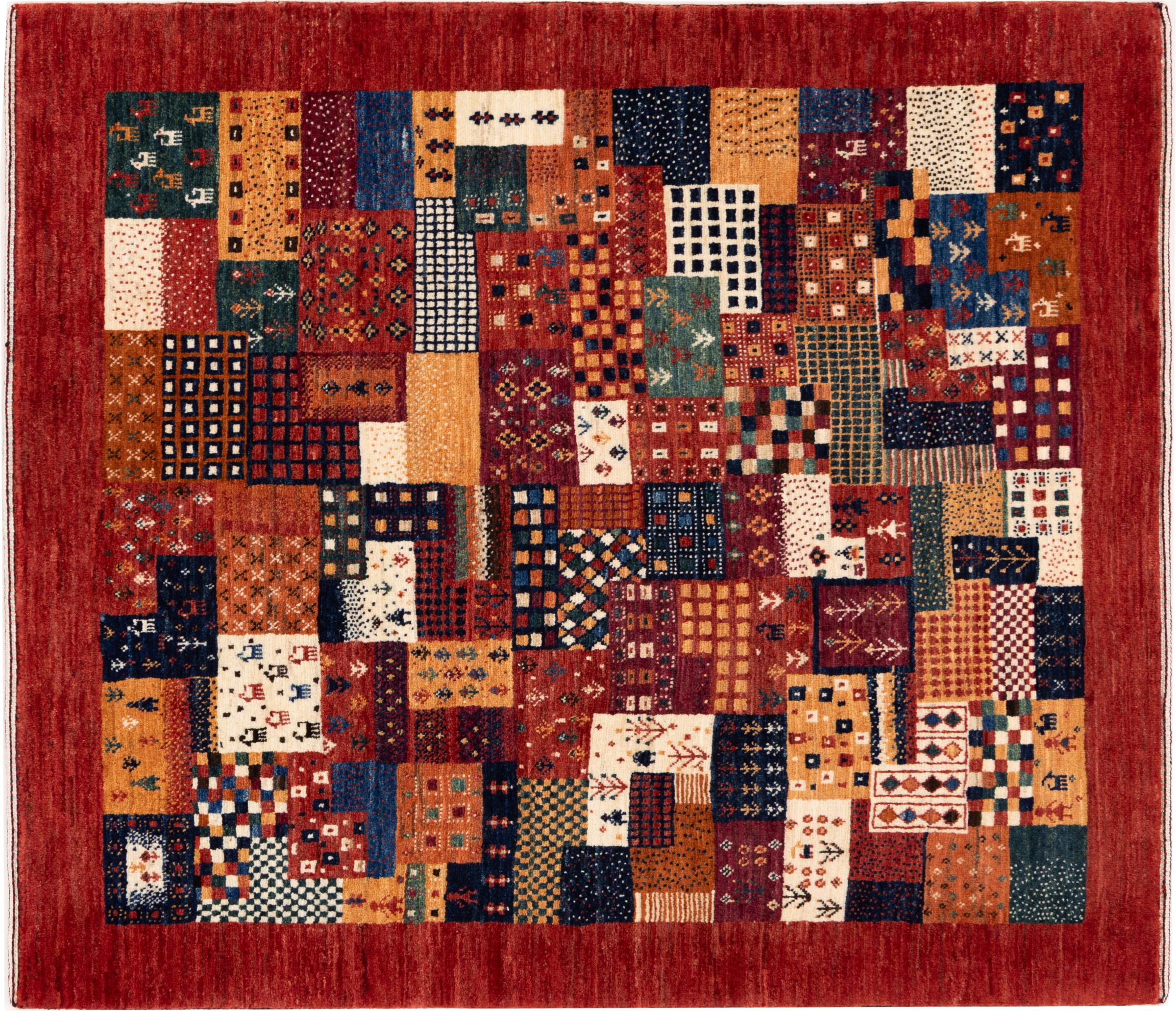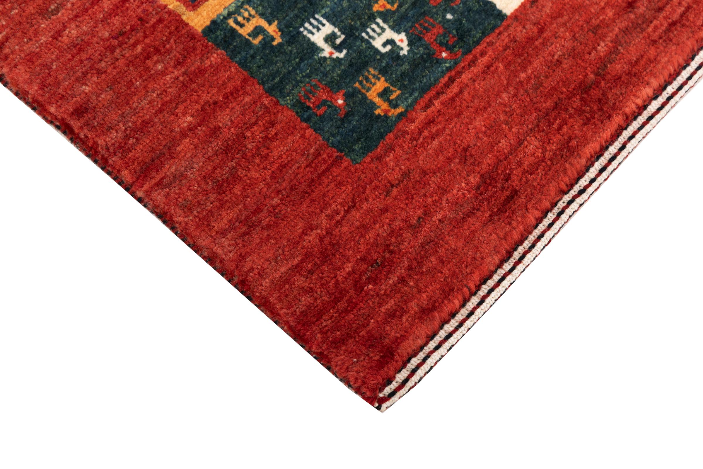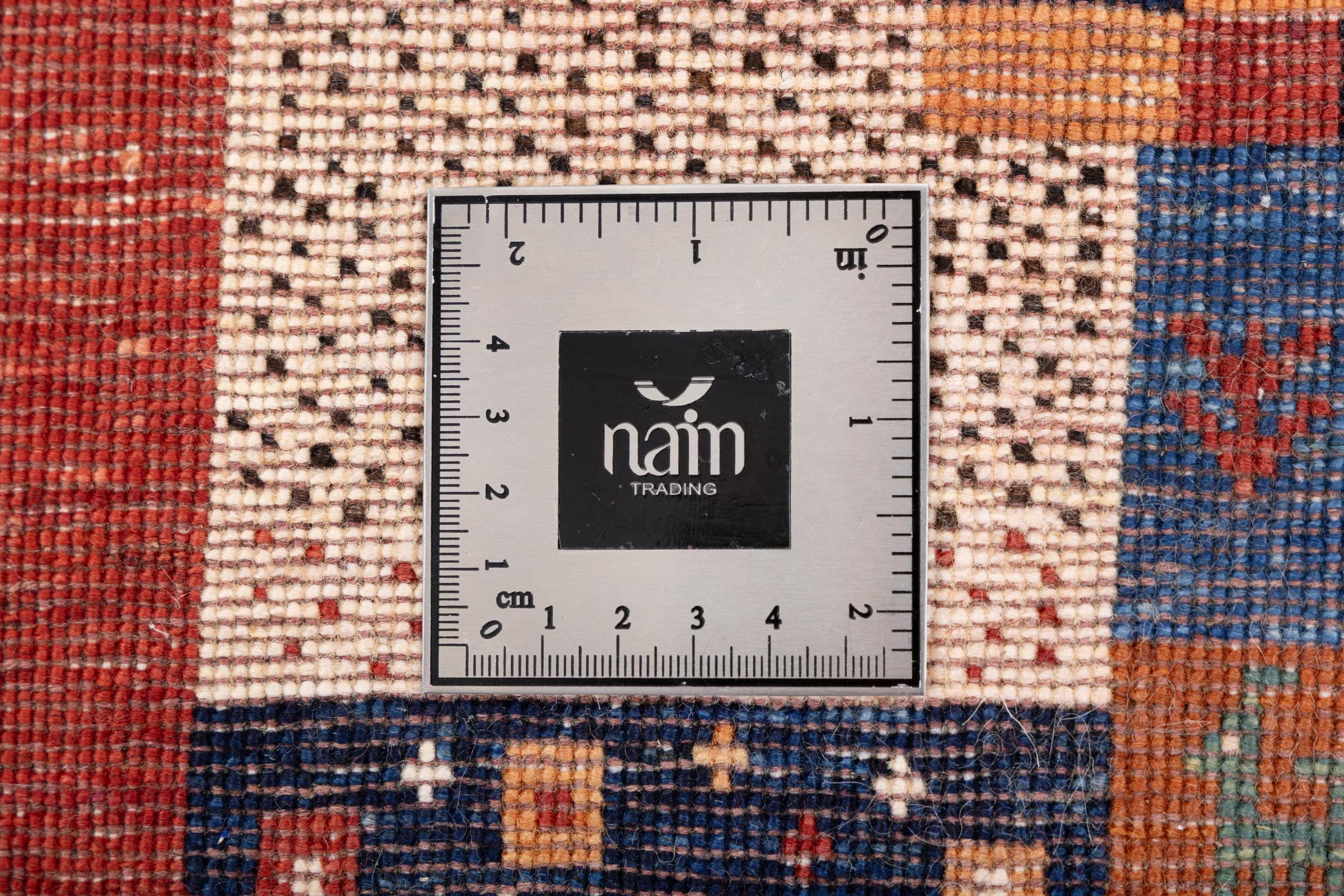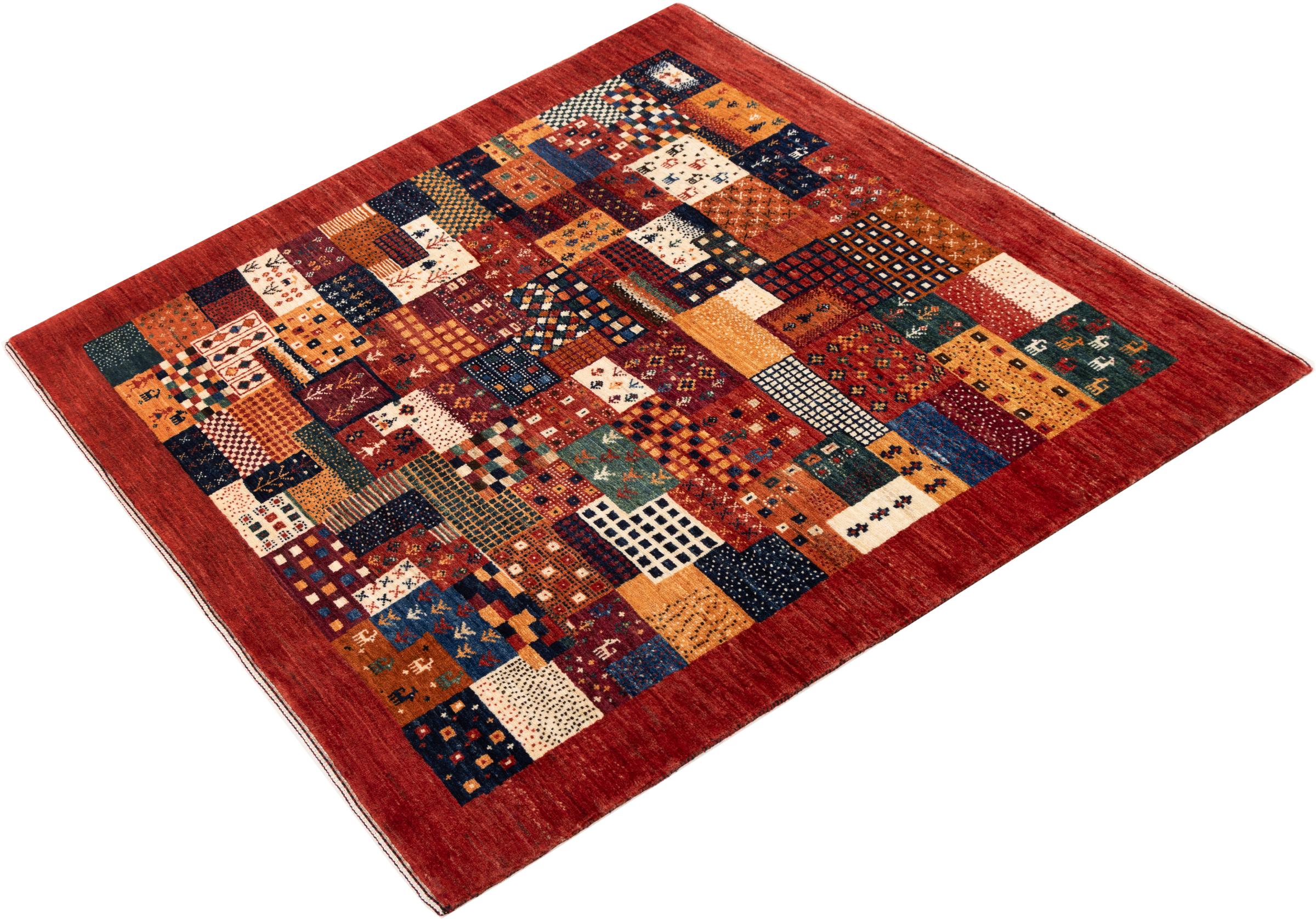 Esta hermosa alfombra es una Gabbeh persa y por lo tanto pertenece a las alfombras Gabbeh de mayor calidad. Las alfombras son anudadas por nómadas o seminómadas en Irán según la artesanía tradicional. Los motivos y patrones simples están inspirados en su mayoría por el entorno inmediato de los nómadas. Por ejemplo, los camellos, árboles o arbustos se pueden encontrar en las alfombras tradicionales. Las alfombras gabbeh persas están hechas de lana de rebaños de ovejas criados localmente. Por lo tanto, la lana se sigue hilando a mano. Así, cada una de estas alfombras orientales encarna un carácter único de la cultura de siglos de antigüedad.