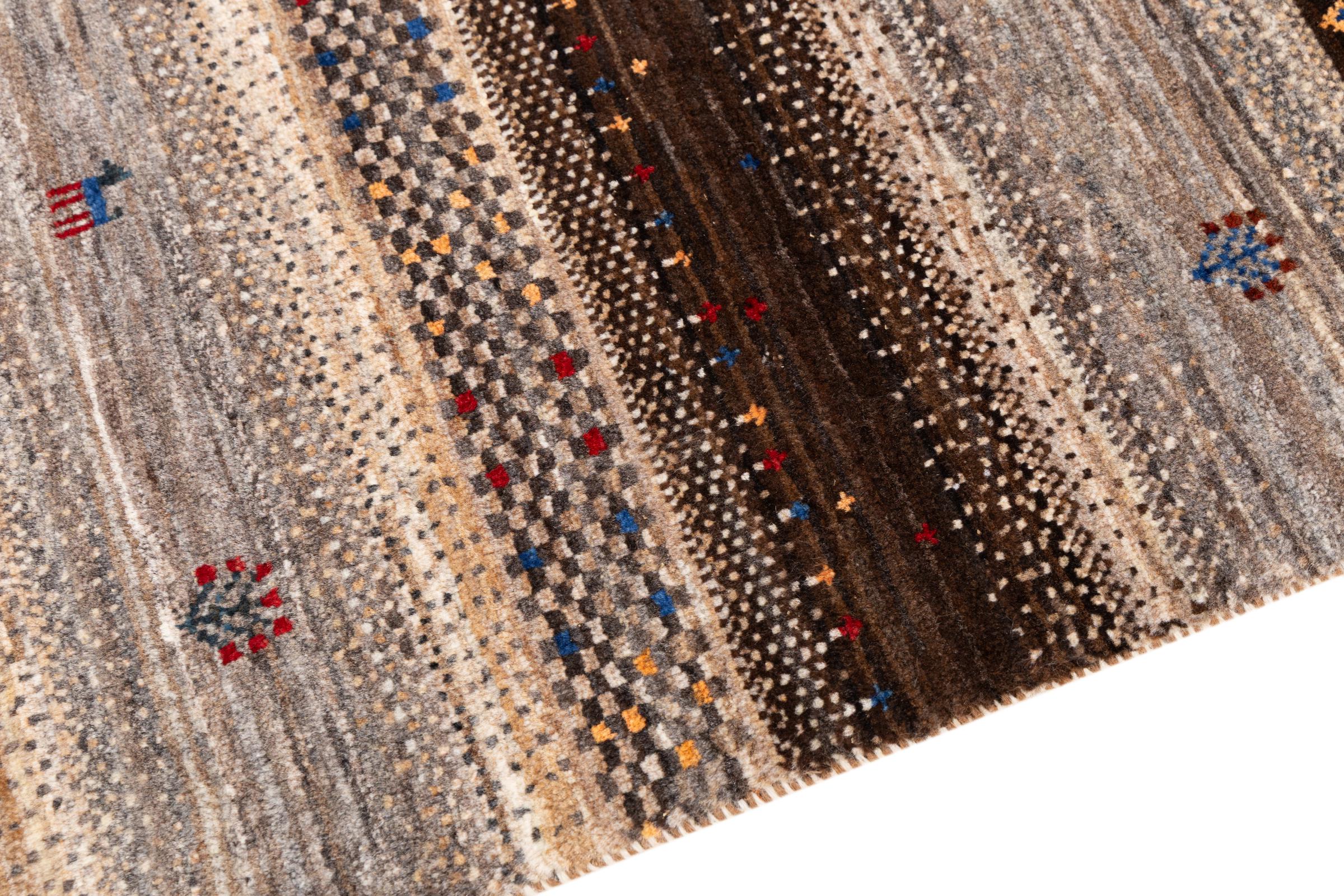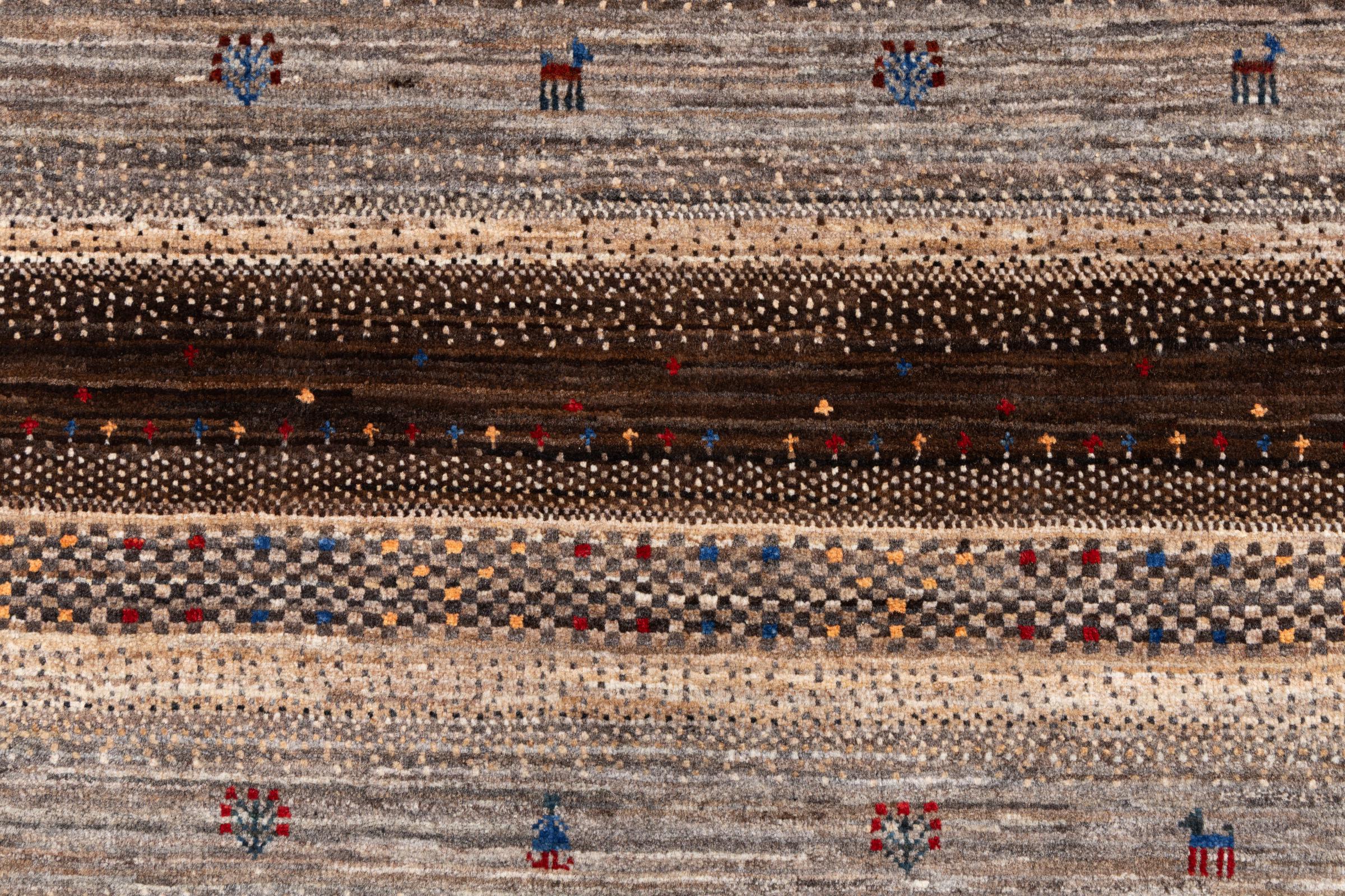 Un refinamiento de las ya conocidas alfombras Gabbeh: Esta es esta persa Gabbeh Loribaft. Con su anudado más fino y su hermoso diseño, sabe cómo impresionar. Loren lo anudó a mano en el sur de Persia con la mejor lana de oveja hilada a mano. Solo se utilizan tintes vegetales puros para teñir la lana. Con esta alfombra obtienes el estándar más alto de una alfombra Gabbeh para tu hogar.