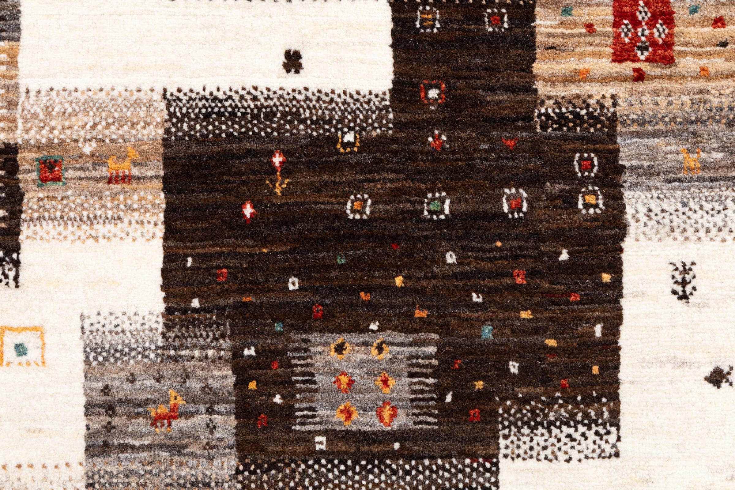 Un refinamiento de las ya conocidas alfombras Gabbeh: Esta es esta persa Gabbeh Loribaft. Con su anudado más fino y su hermoso diseño, sabe cómo impresionar. Loren lo anudó a mano en el sur de Persia con la mejor lana de oveja hilada a mano. Solo se utilizan tintes vegetales puros para teñir la lana. Con esta alfombra obtienes el estándar más alto de una alfombra Gabbeh para tu hogar.
