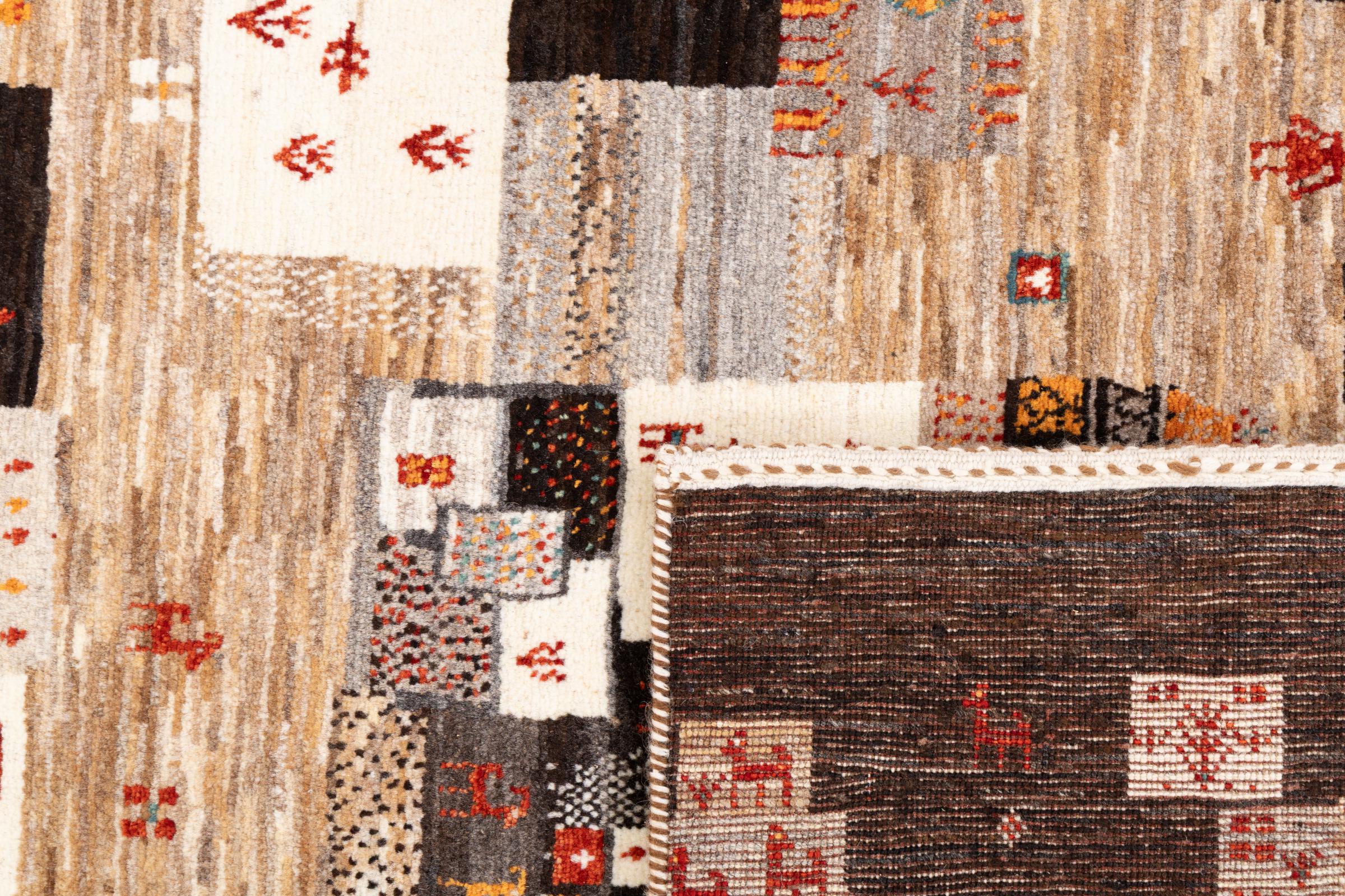 Un refinamiento de las ya conocidas alfombras Gabbeh: Esta es esta persa Gabbeh Loribaft. Con su anudado más fino y su hermoso diseño, sabe cómo impresionar. Loren lo anudó a mano en el sur de Persia con la mejor lana de oveja hilada a mano. Solo se utilizan tintes vegetales puros para teñir la lana. Con esta alfombra obtienes el estándar más alto de una alfombra Gabbeh para tu hogar.
