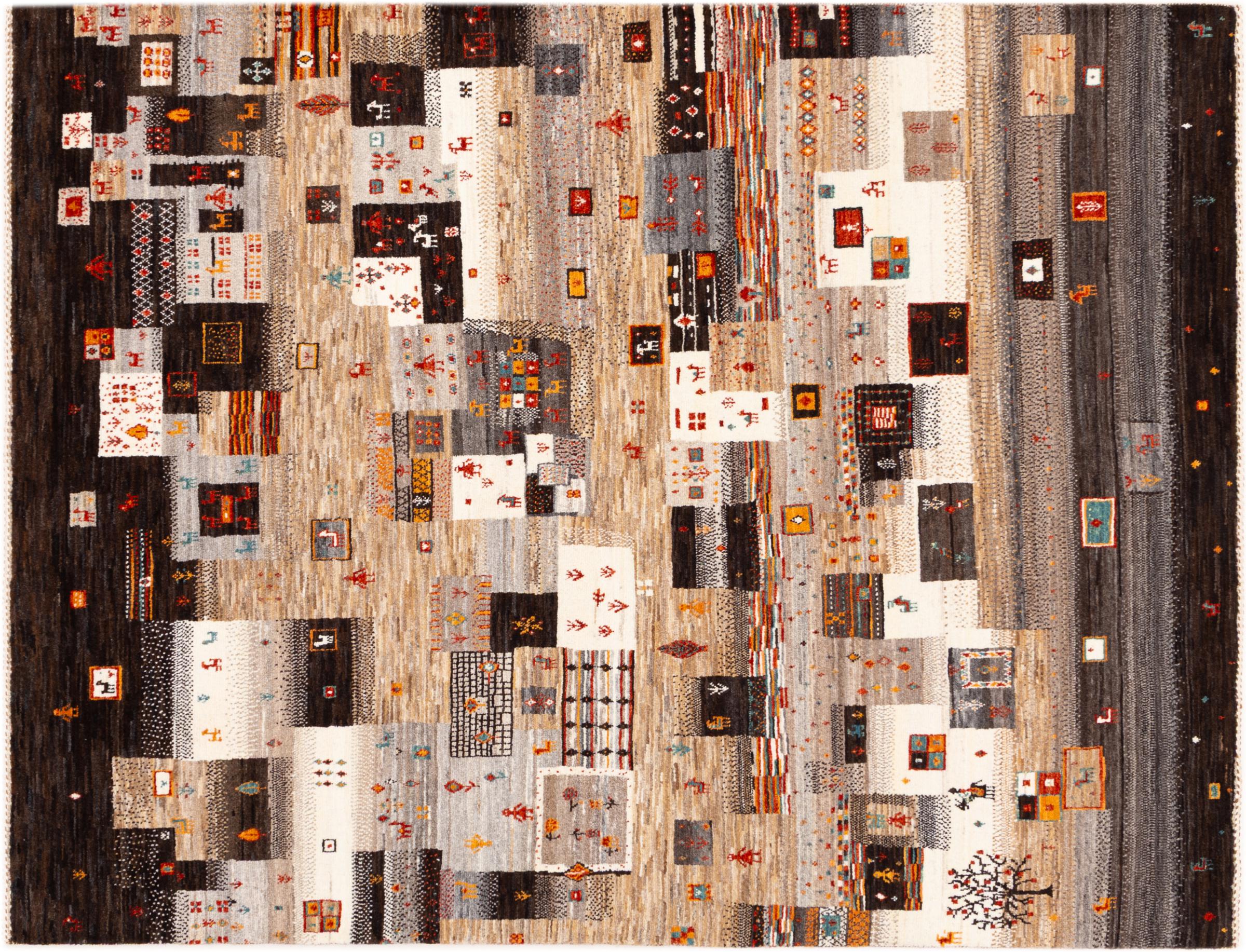 Esta hermosa alfombra es una Gabbeh persa y por lo tanto pertenece a las alfombras Gabbeh de mayor calidad. Las alfombras son anudadas por nómadas o seminómadas en Irán según la artesanía tradicional. Los motivos y patrones simples están inspirados en su mayoría por el entorno inmediato de los nómadas. Por ejemplo, los camellos, árboles o arbustos se pueden encontrar en las alfombras tradicionales. Las alfombras gabbeh persas están hechas de lana de rebaños de ovejas criados localmente. Por lo tanto, la lana se sigue hilando a mano. Así, cada una de estas alfombras orientales encarna un carácter único de la cultura de siglos de antigüedad.