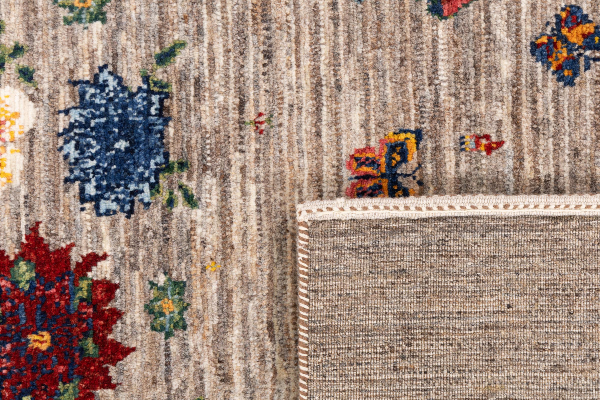Esta alfombra está hecha de lana de oveja hilada a mano de la más alta calidad. Especialmente en Irán (antigua Persia), la lana de Afganistán y Pakistán sigue siendo hilada a mano antes de que comience el anudado de la alfombra. La lana ha demostrado ser un material natural y extremadamente resistente a lo largo de los siglos. Entre otras cosas, tiene propiedades repelentes de la suciedad y aislantes del calor. Al mismo tiempo, la lana es incomparablemente suave y tiene un brillo natural.