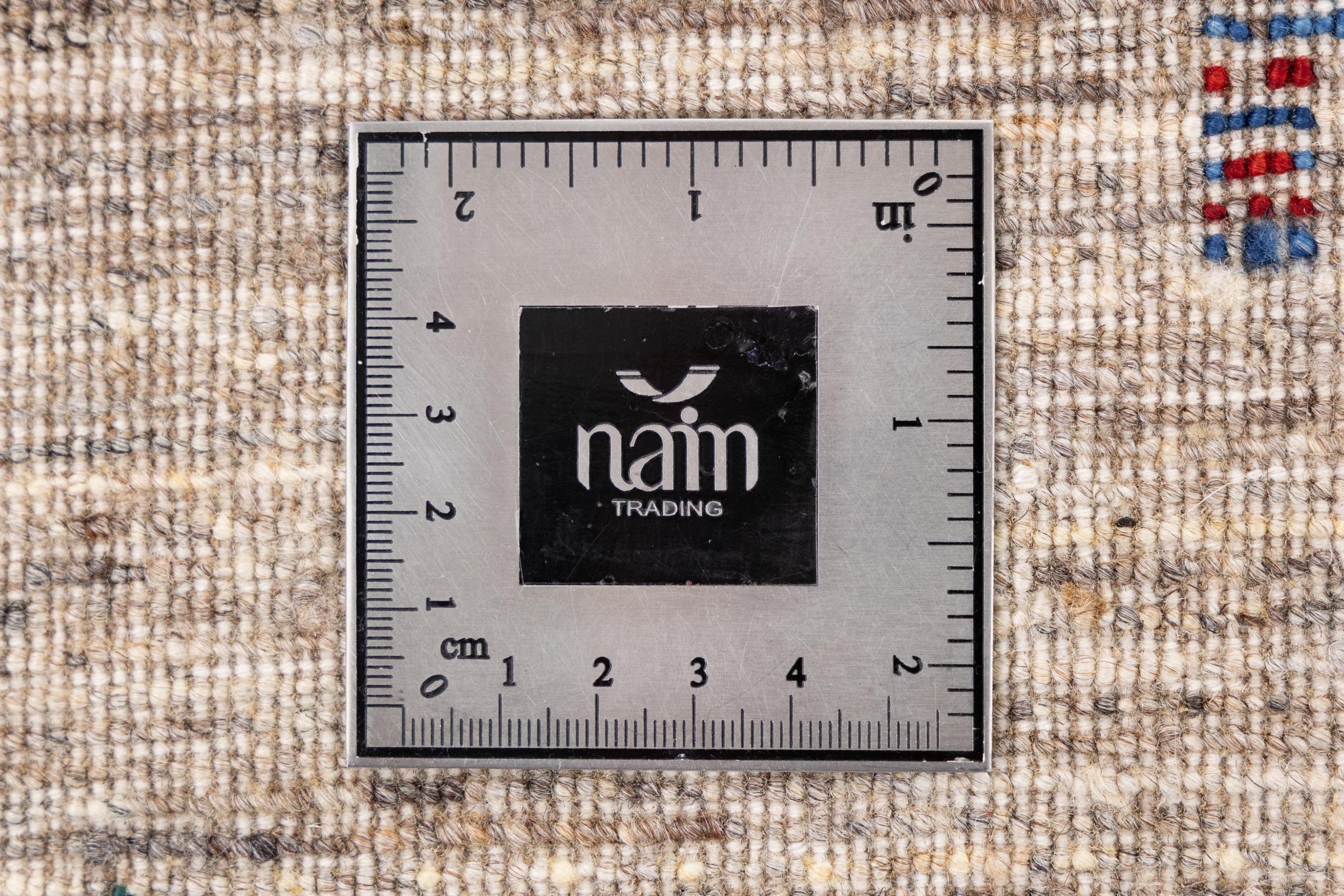 Esta hermosa alfombra es una Gabbeh persa y por lo tanto pertenece a las alfombras Gabbeh de mayor calidad. Las alfombras son anudadas por nómadas o seminómadas en Irán según la artesanía tradicional. Los motivos y patrones simples están inspirados en su mayoría por el entorno inmediato de los nómadas. Por ejemplo, los camellos, árboles o arbustos se pueden encontrar en las alfombras tradicionales. Las alfombras gabbeh persas están hechas de lana de rebaños de ovejas criados localmente. Por lo tanto, la lana se sigue hilando a mano. Así, cada una de estas alfombras orientales encarna un carácter único de la cultura de siglos de antigüedad.