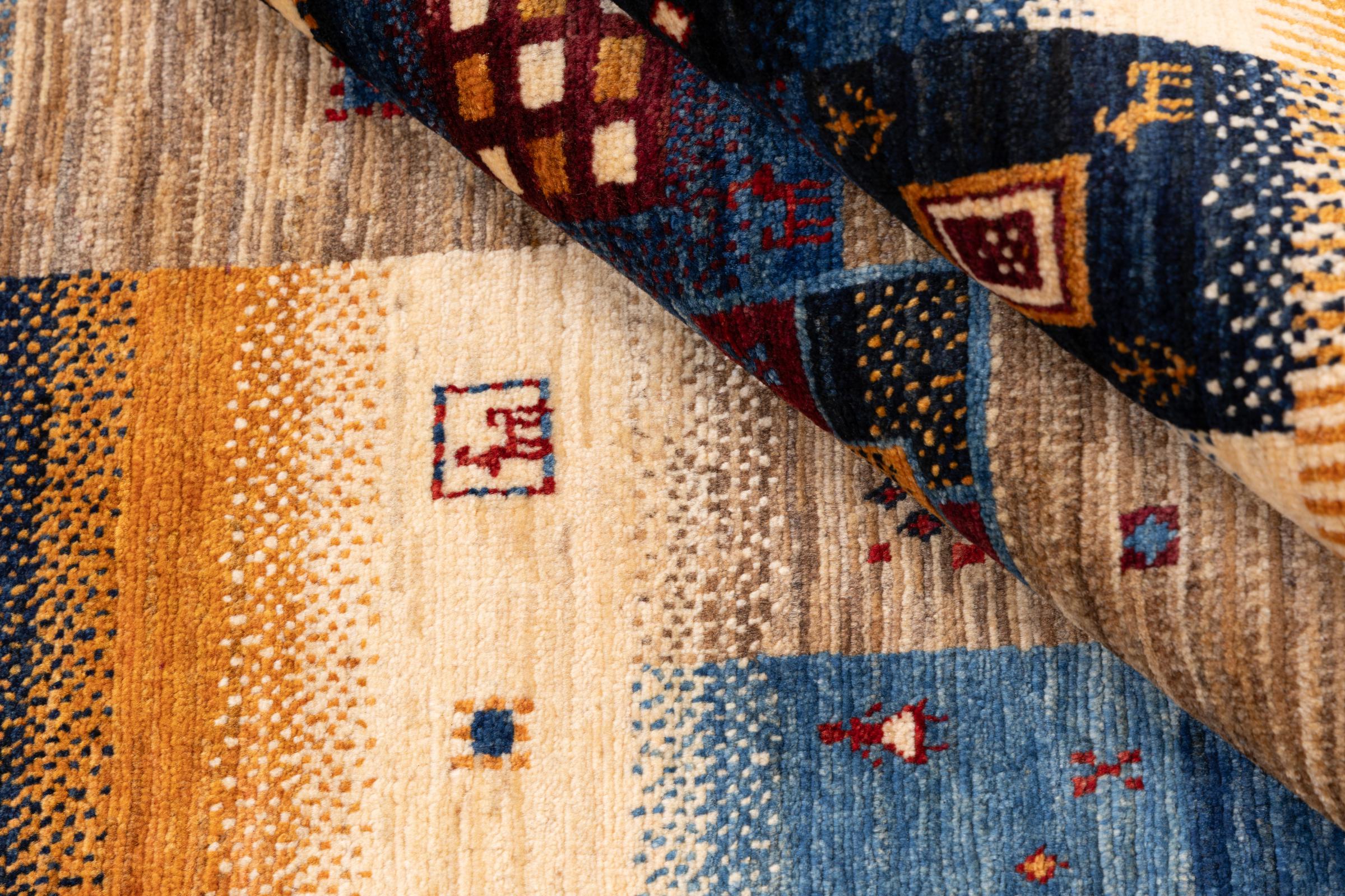 Un refinamiento de las ya conocidas alfombras Gabbeh: Esta es esta persa Gabbeh Loribaft. Con su anudado más fino y su hermoso diseño, sabe cómo impresionar. Loren lo anudó a mano en el sur de Persia con la mejor lana de oveja hilada a mano. Solo se utilizan tintes vegetales puros para teñir la lana. Con esta alfombra obtienes el estándar más alto de una alfombra Gabbeh para tu hogar.