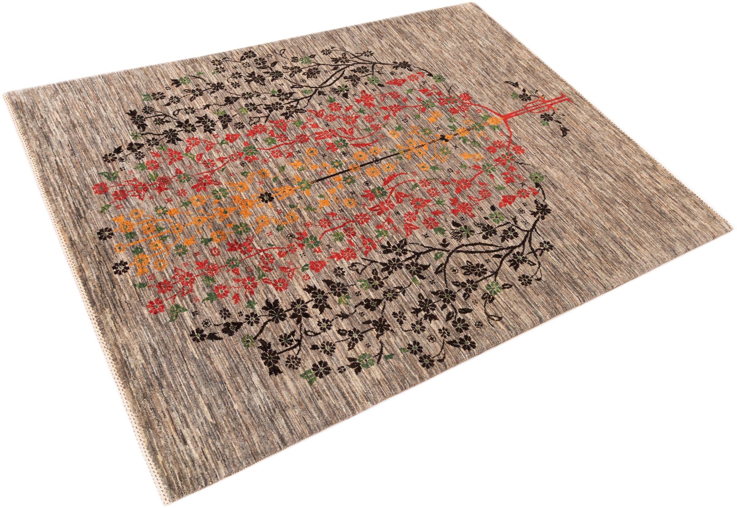 Esta hermosa alfombra es una Gabbeh persa y por lo tanto pertenece a las alfombras Gabbeh de mayor calidad. Las alfombras son anudadas por nómadas o seminómadas en Irán según la artesanía tradicional. Los motivos y patrones simples están inspirados en su mayoría por el entorno inmediato de los nómadas. Por ejemplo, los camellos, árboles o arbustos se pueden encontrar en las alfombras tradicionales. Las alfombras gabbeh persas están hechas de lana de rebaños de ovejas criados localmente. Por lo tanto, la lana se sigue hilando a mano. Así, cada una de estas alfombras orientales encarna un carácter único de la cultura de siglos de antigüedad.