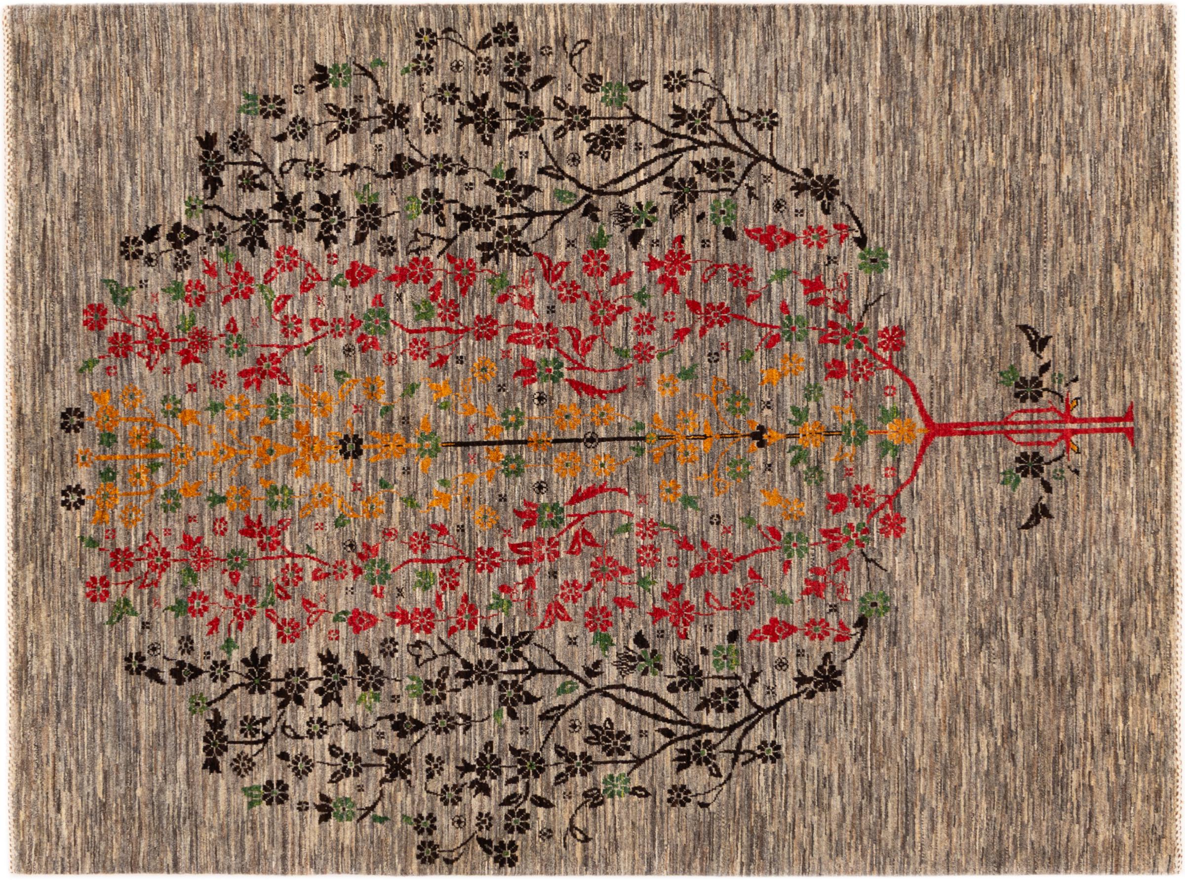 Esta alfombra está hecha de lana de oveja hilada a mano de la más alta calidad. Especialmente en Irán (antigua Persia), la lana de Afganistán y Pakistán sigue siendo hilada a mano antes de que comience el anudado de la alfombra. La lana ha demostrado ser un material natural y extremadamente resistente a lo largo de los siglos. Entre otras cosas, tiene propiedades repelentes de la suciedad y aislantes del calor. Al mismo tiempo, la lana es incomparablemente suave y tiene un brillo natural.