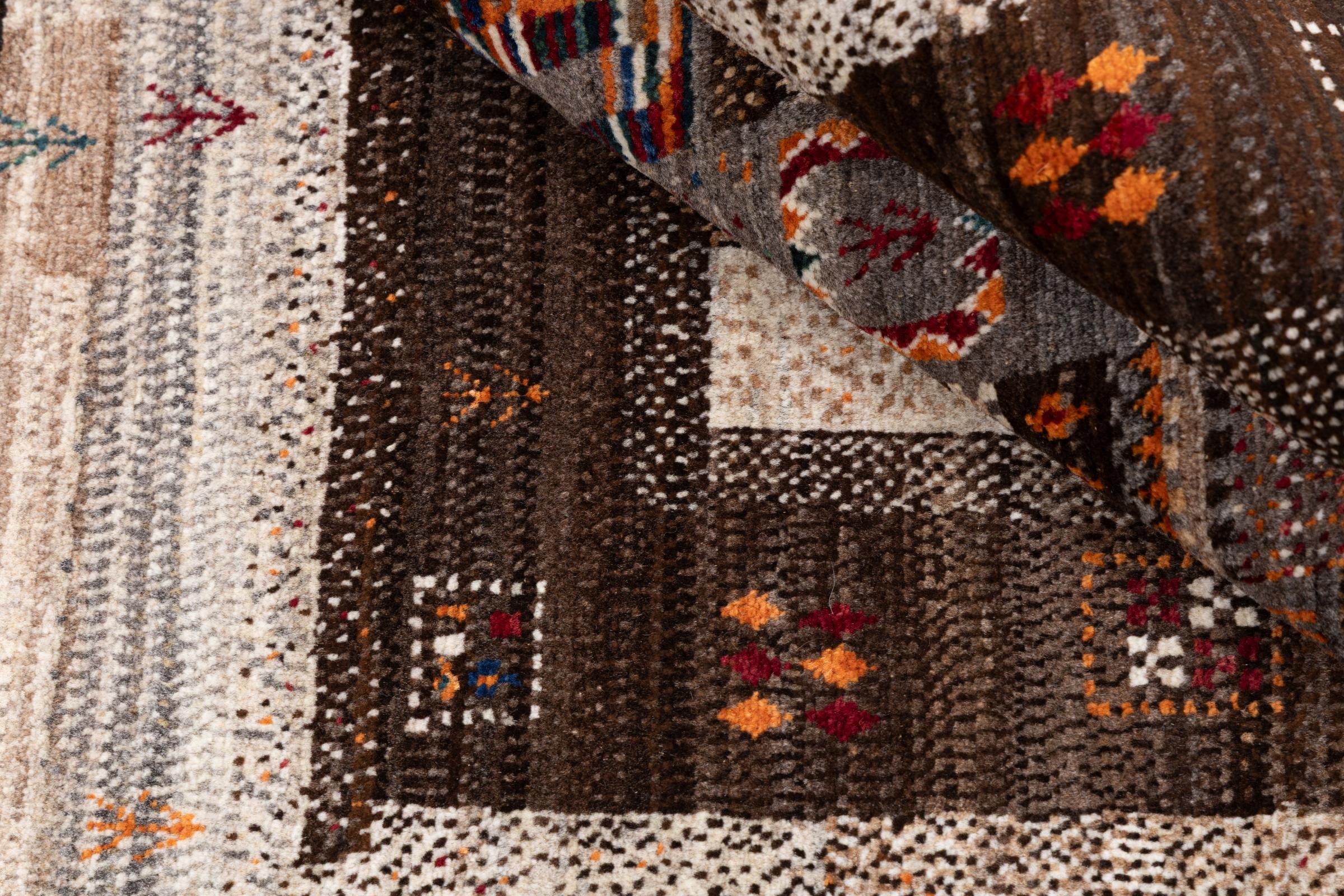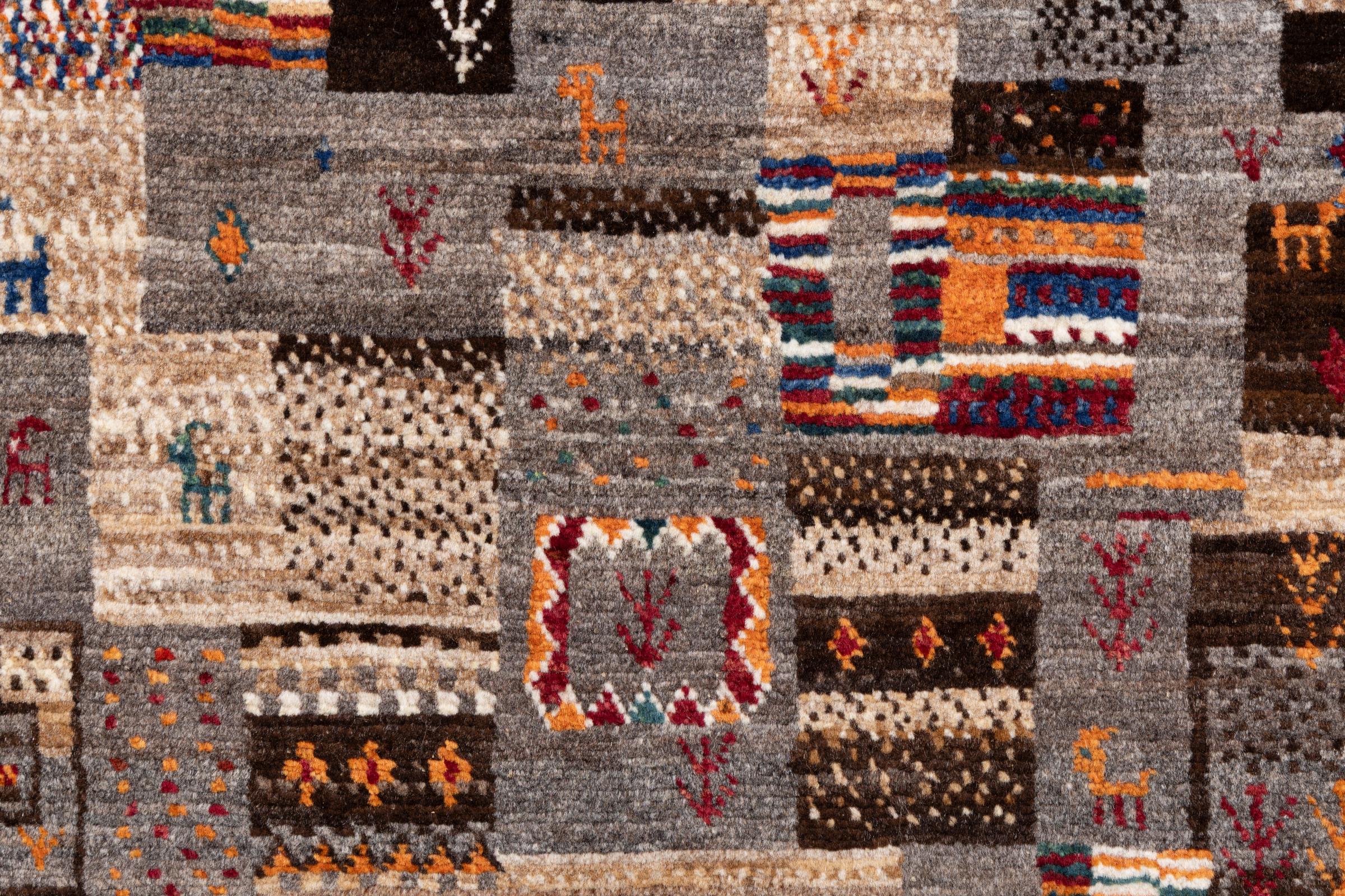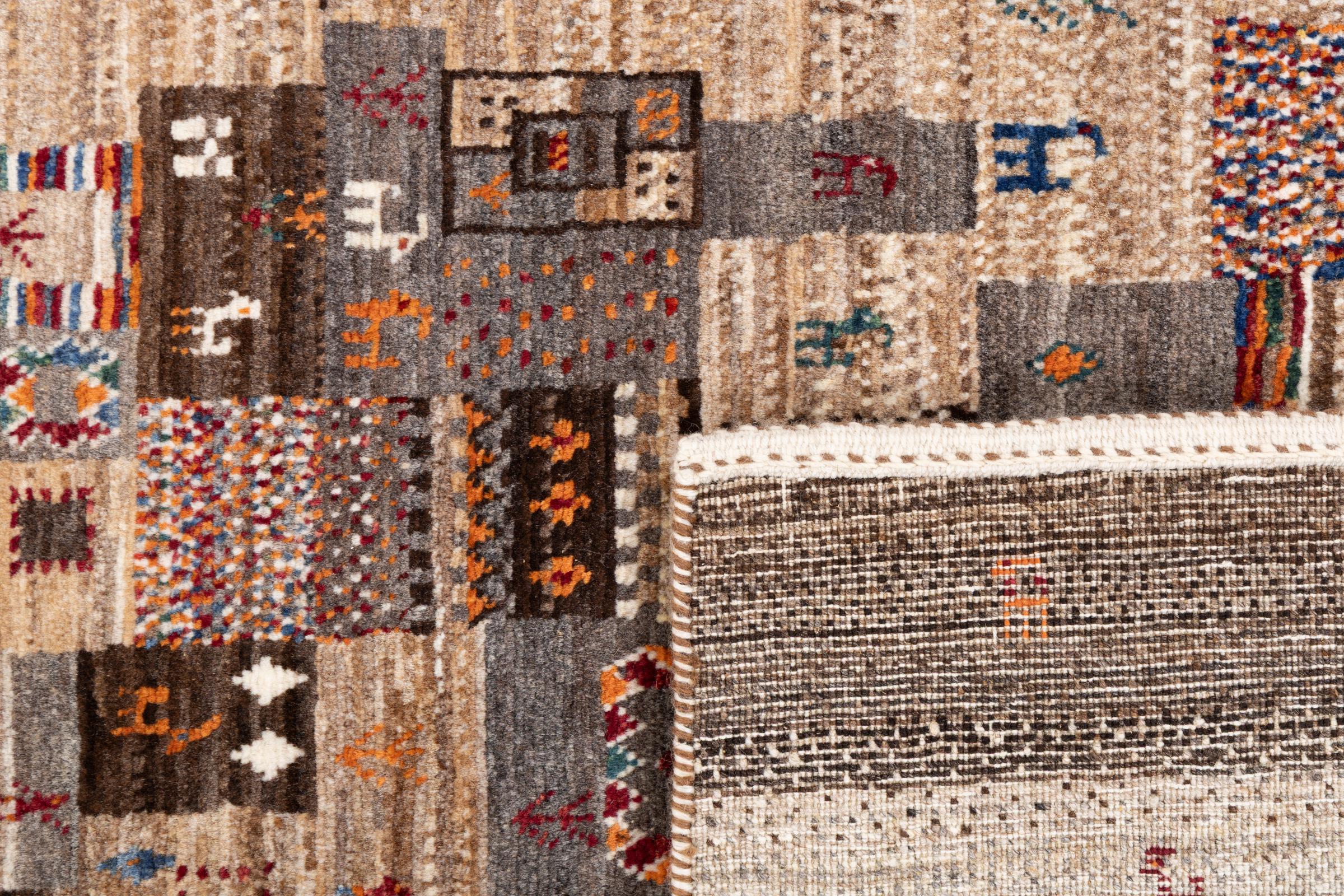 Un refinamiento de las ya conocidas alfombras Gabbeh: Esta es esta persa Gabbeh Loribaft. Con su anudado más fino y su hermoso diseño, sabe cómo impresionar. Loren lo anudó a mano en el sur de Persia con la mejor lana de oveja hilada a mano. Solo se utilizan tintes vegetales puros para teñir la lana. Con esta alfombra obtienes el estándar más alto de una alfombra Gabbeh para tu hogar.
