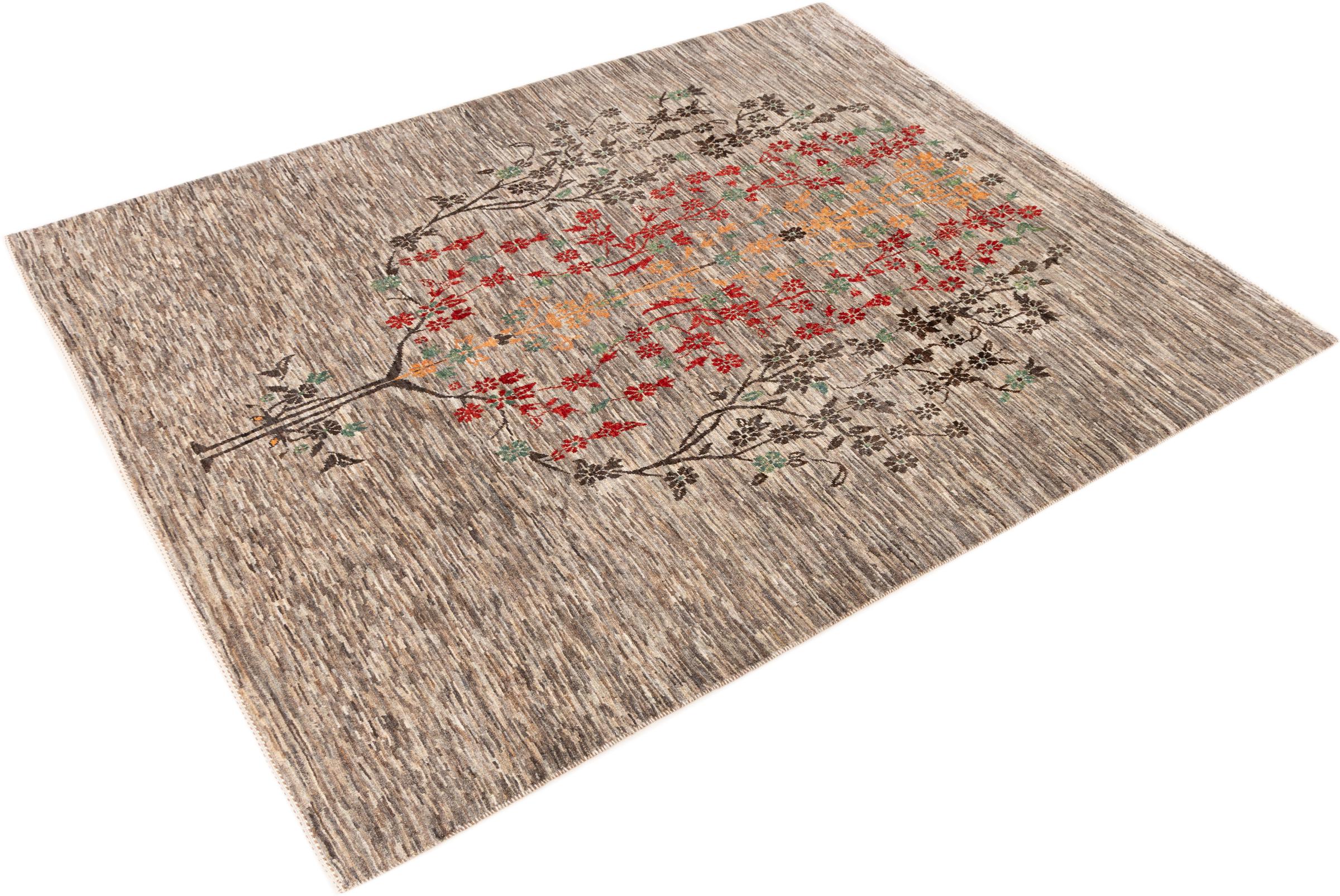 Esta hermosa alfombra es una Gabbeh persa y por lo tanto pertenece a las alfombras Gabbeh de mayor calidad. Las alfombras son anudadas por nómadas o seminómadas en Irán según la artesanía tradicional. Los motivos y patrones simples están inspirados en su mayoría por el entorno inmediato de los nómadas. Por ejemplo, los camellos, árboles o arbustos se pueden encontrar en las alfombras tradicionales. Las alfombras gabbeh persas están hechas de lana de rebaños de ovejas criados localmente. Por lo tanto, la lana se sigue hilando a mano. Así, cada una de estas alfombras orientales encarna un carácter único de la cultura de siglos de antigüedad.