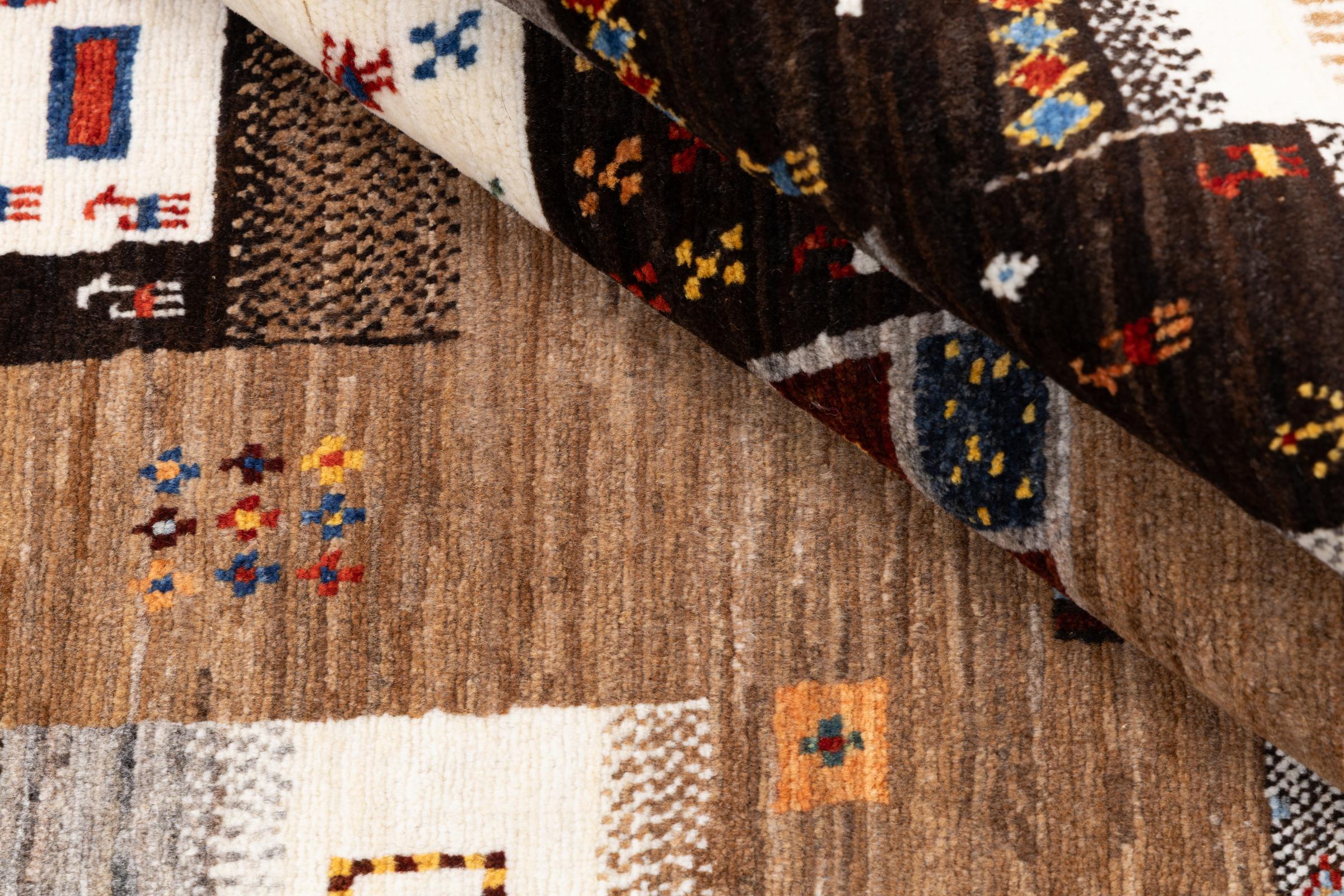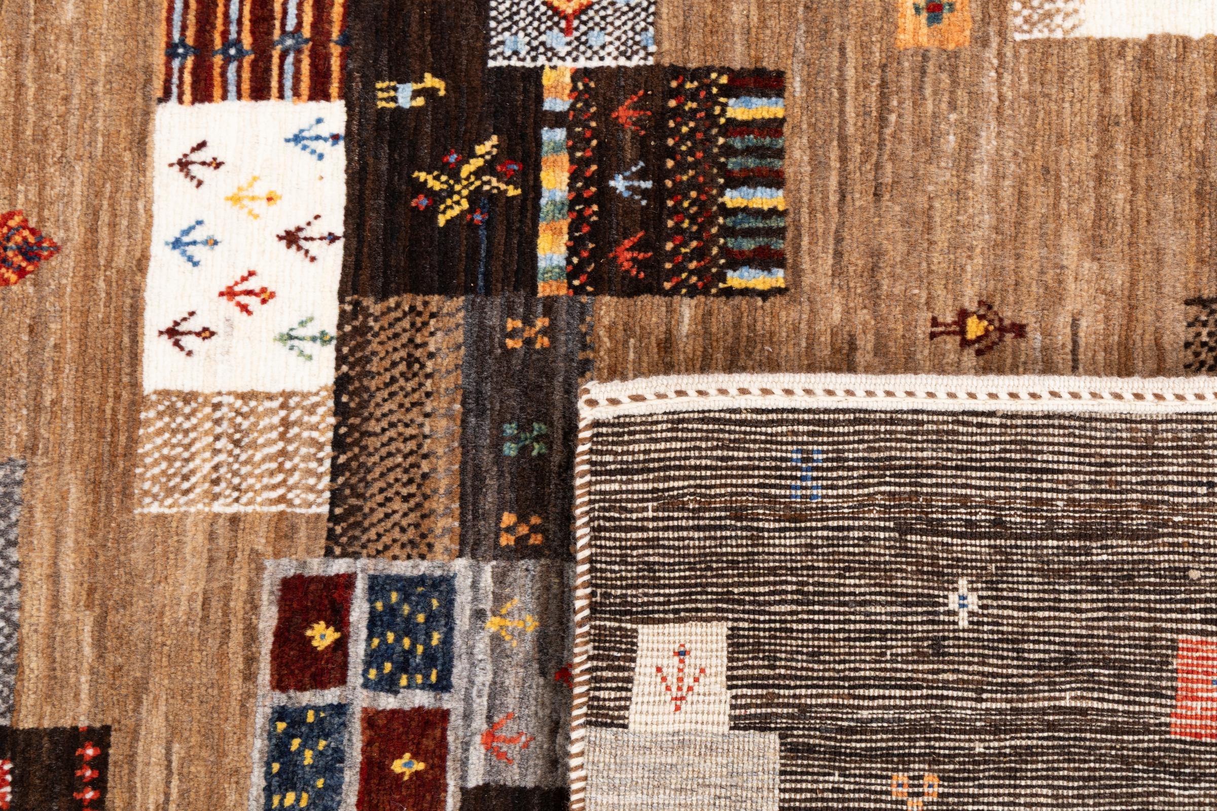 Un refinamiento de las ya conocidas alfombras Gabbeh: Esta es esta persa Gabbeh Loribaft. Con su anudado más fino y su hermoso diseño, sabe cómo impresionar. Loren lo anudó a mano en el sur de Persia con la mejor lana de oveja hilada a mano. Solo se utilizan tintes vegetales puros para teñir la lana. Con esta alfombra obtienes el estándar más alto de una alfombra Gabbeh para tu hogar.