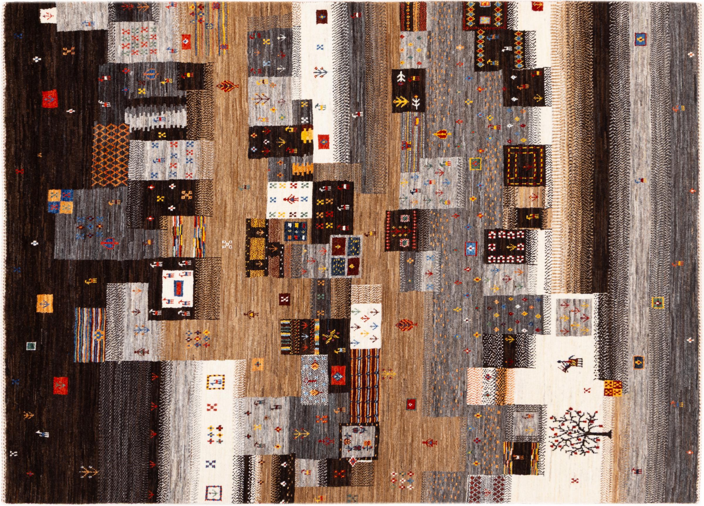 Esta hermosa alfombra es una Gabbeh persa y por lo tanto pertenece a las alfombras Gabbeh de mayor calidad. Las alfombras son anudadas por nómadas o seminómadas en Irán según la artesanía tradicional. Los motivos y patrones simples están inspirados en su mayoría por el entorno inmediato de los nómadas. Por ejemplo, los camellos, árboles o arbustos se pueden encontrar en las alfombras tradicionales. Las alfombras gabbeh persas están hechas de lana de rebaños de ovejas criados localmente. Por lo tanto, la lana se sigue hilando a mano. Así, cada una de estas alfombras orientales encarna un carácter único de la cultura de siglos de antigüedad.