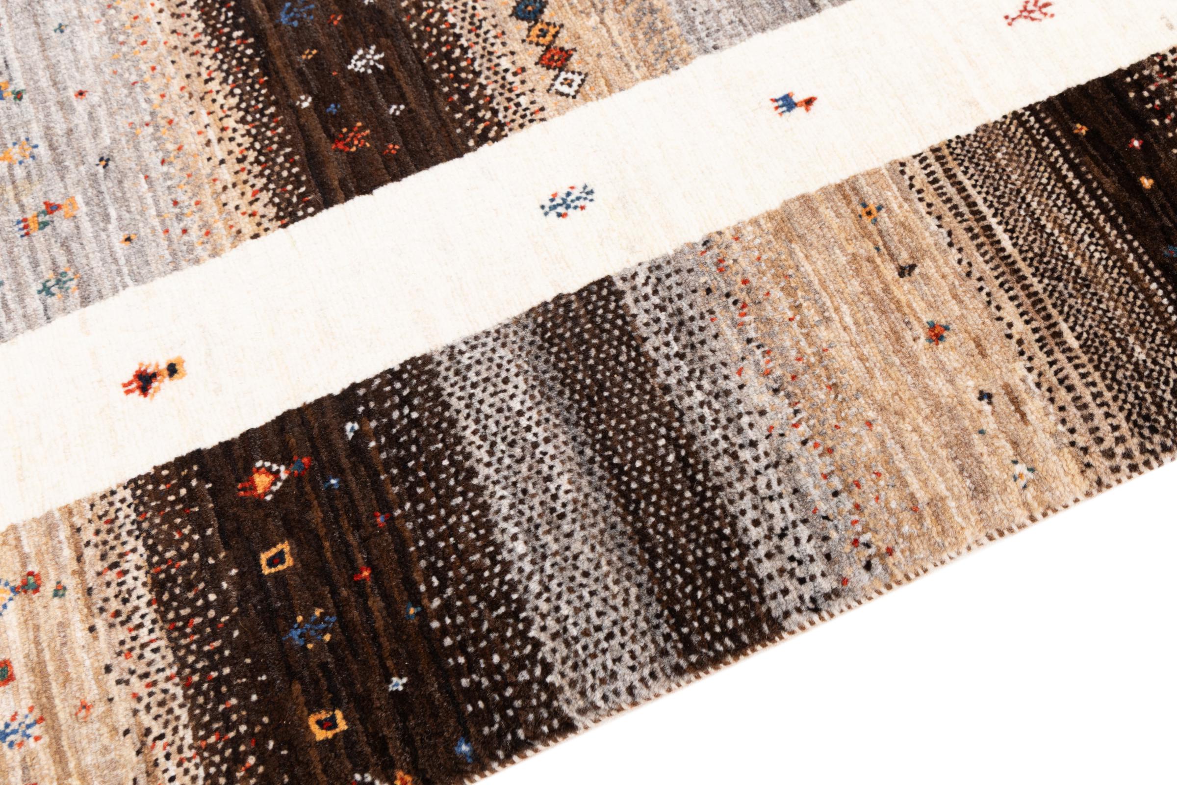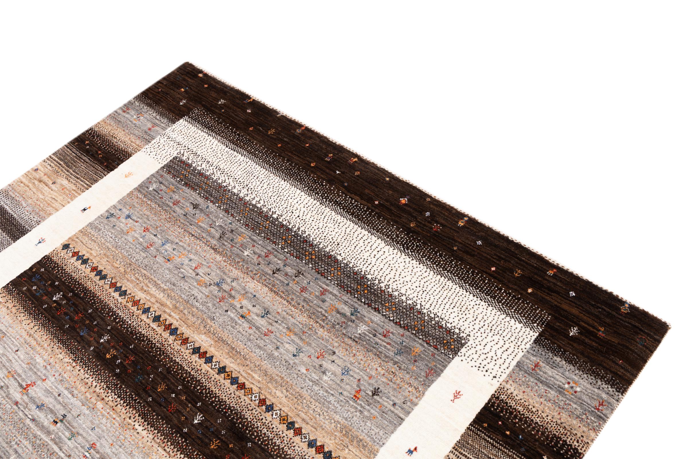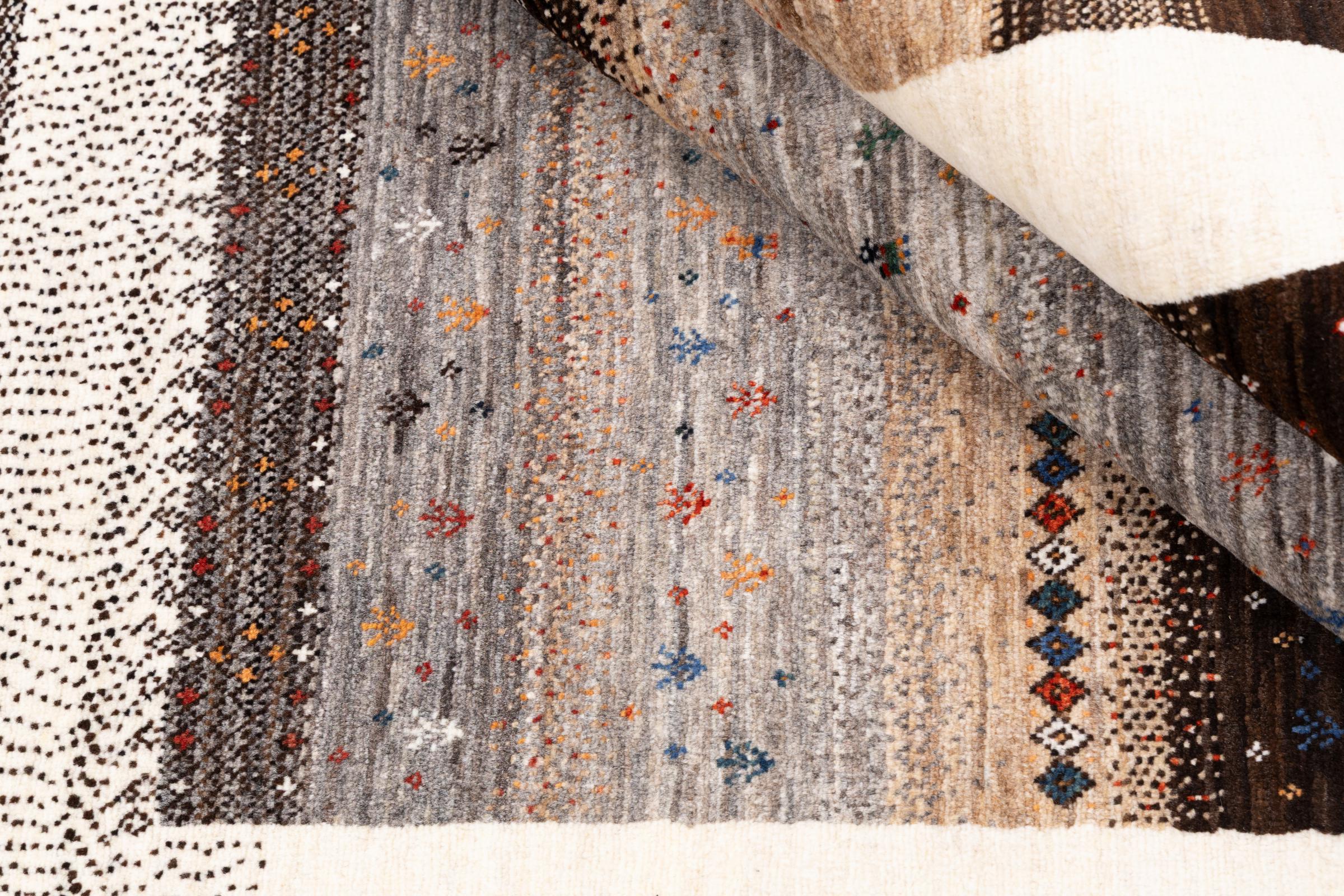 Un refinamiento de las ya conocidas alfombras Gabbeh: Esta es esta persa Gabbeh Loribaft. Con su anudado más fino y su hermoso diseño, sabe cómo impresionar. Loren lo anudó a mano en el sur de Persia con la mejor lana de oveja hilada a mano. Solo se utilizan tintes vegetales puros para teñir la lana. Con esta alfombra obtienes el estándar más alto de una alfombra Gabbeh para tu hogar.