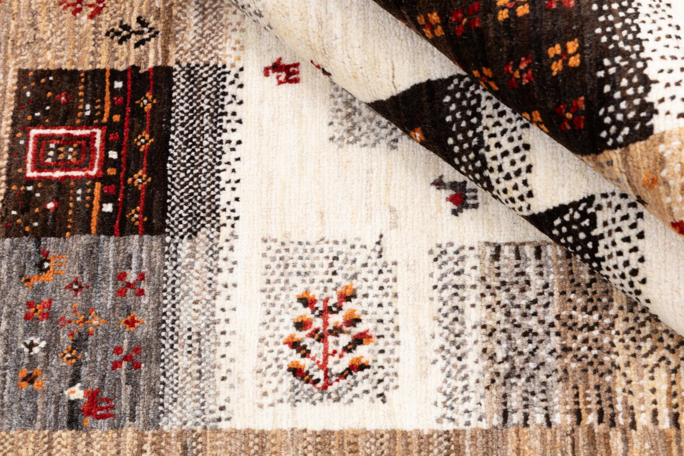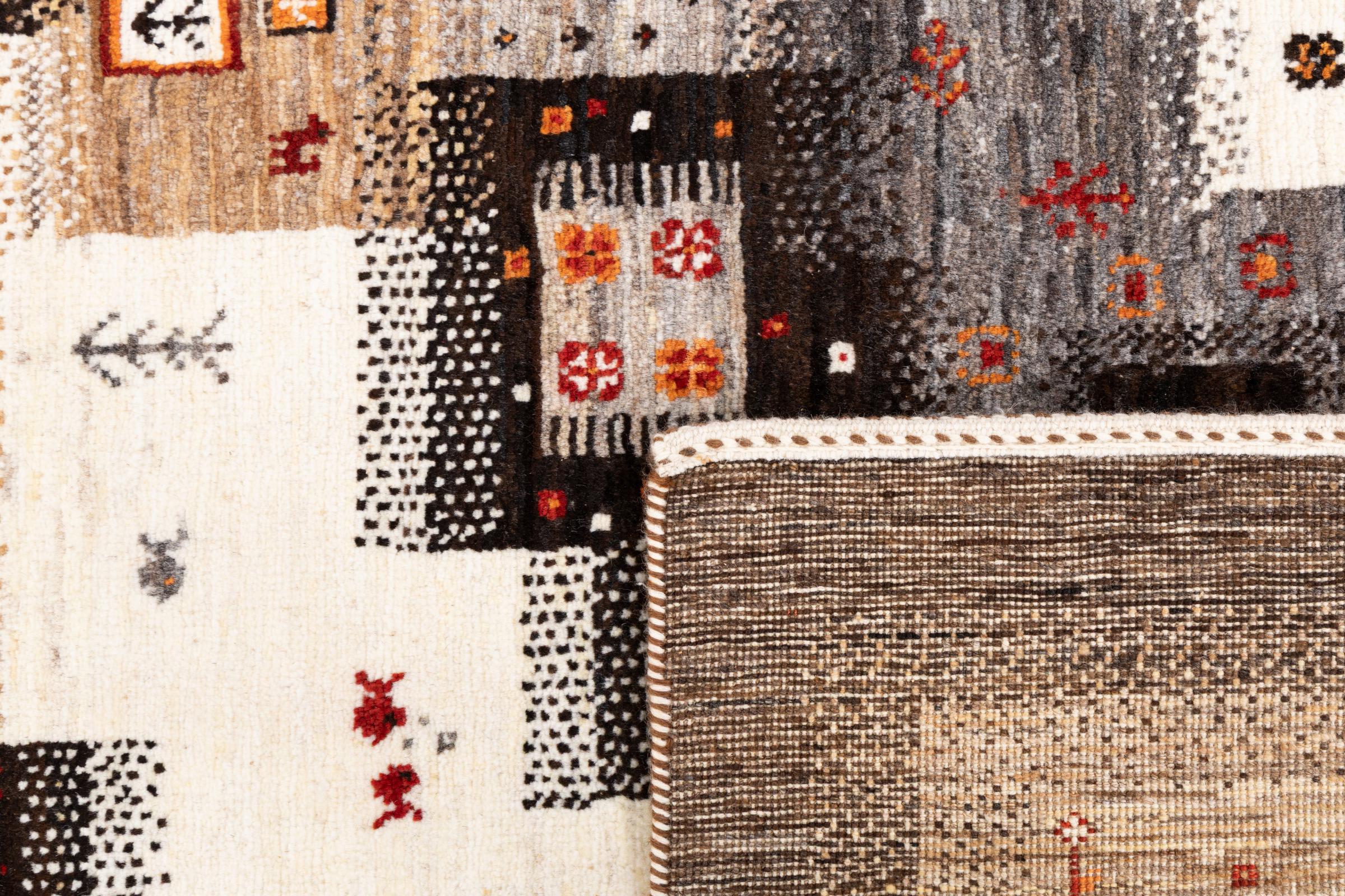 Un refinamiento de las ya conocidas alfombras Gabbeh: Esta es esta persa Gabbeh Loribaft. Con su anudado más fino y su hermoso diseño, sabe cómo impresionar. Loren lo anudó a mano en el sur de Persia con la mejor lana de oveja hilada a mano. Solo se utilizan tintes vegetales puros para teñir la lana. Con esta alfombra obtienes el estándar más alto de una alfombra Gabbeh para tu hogar.