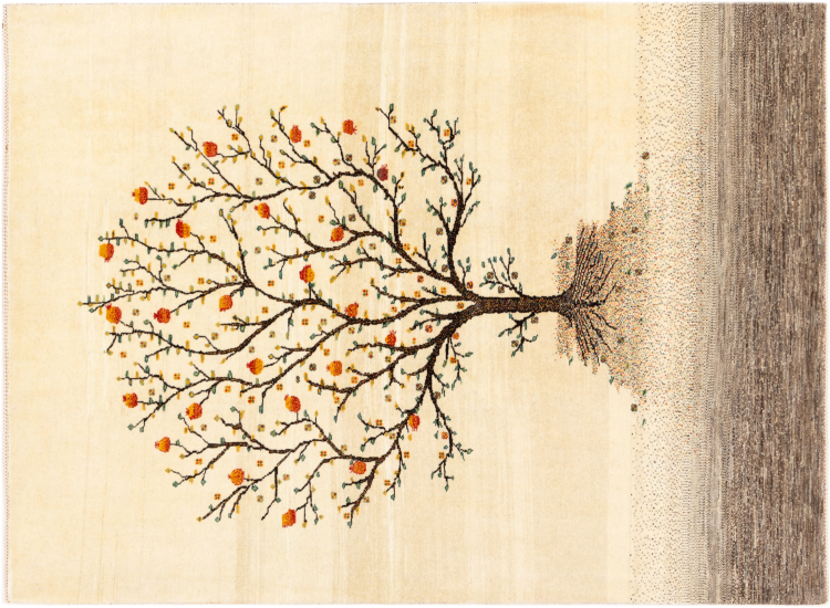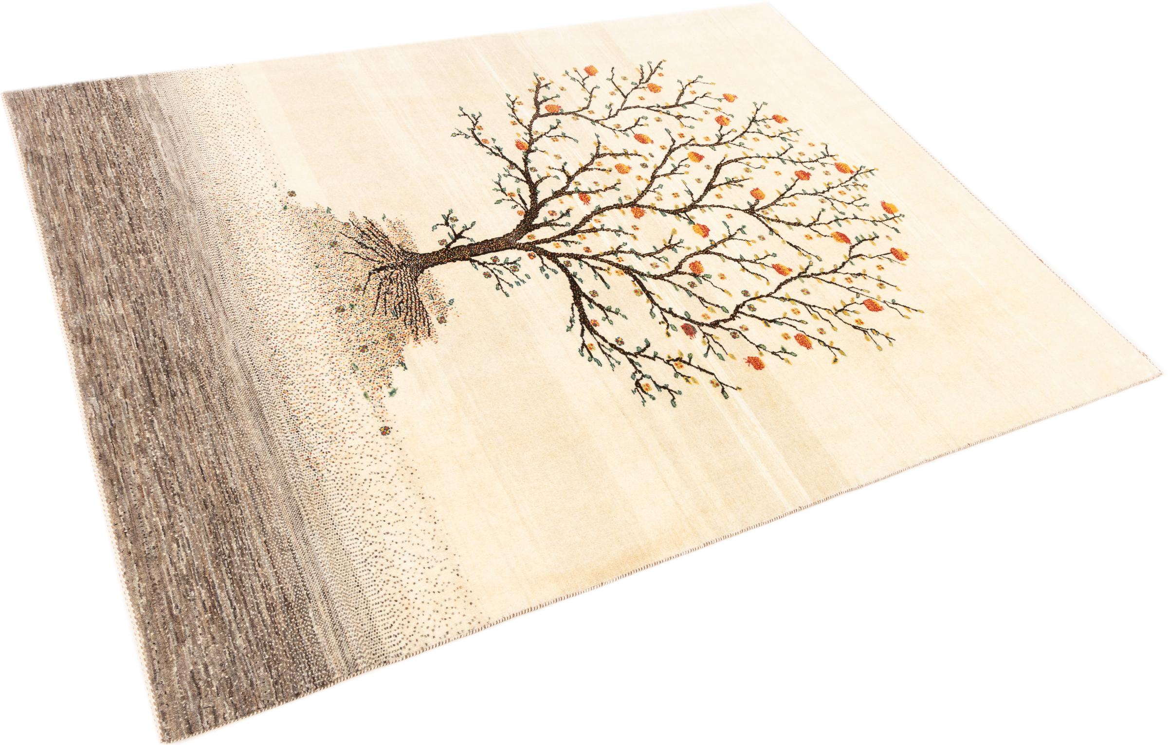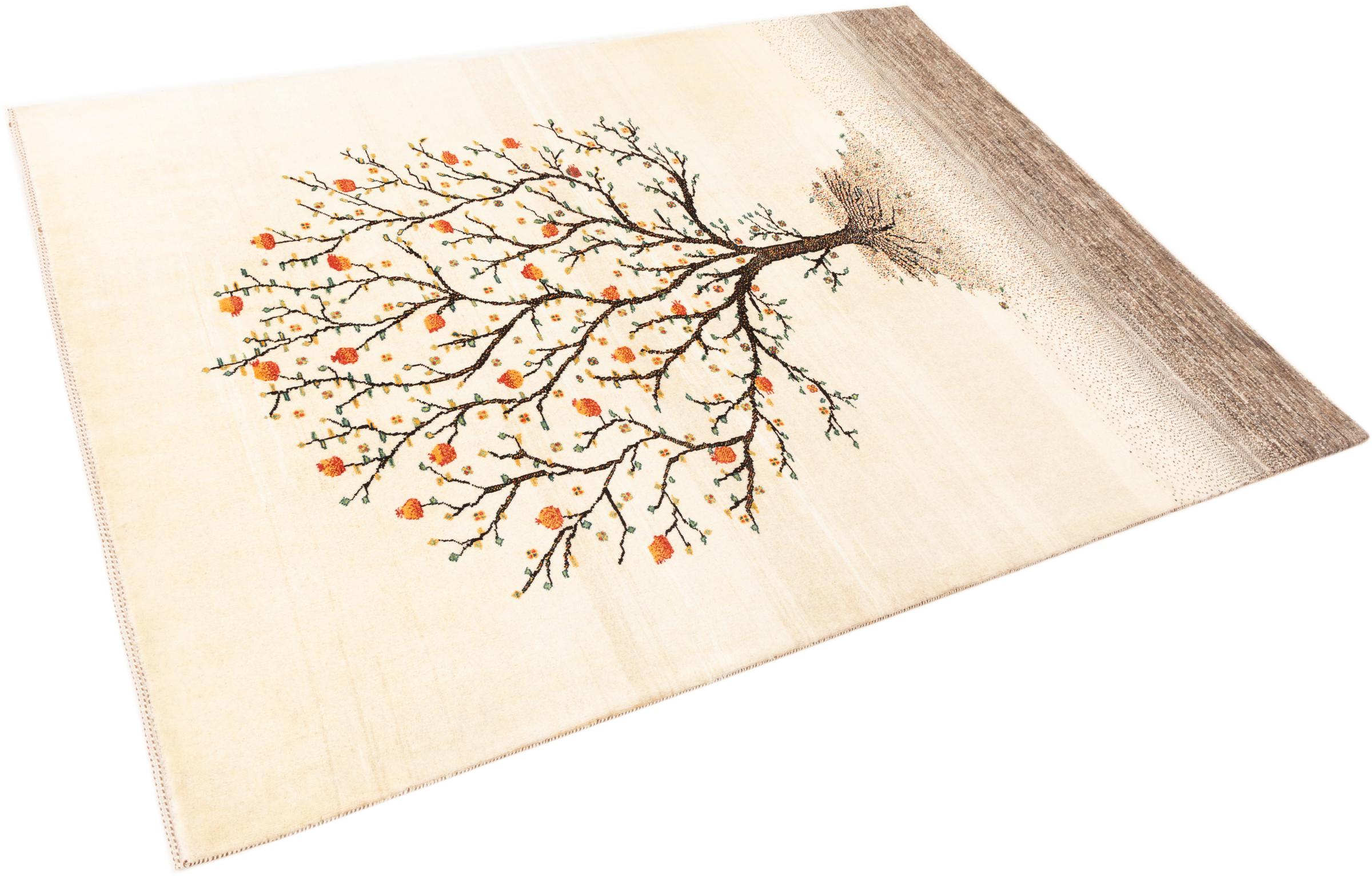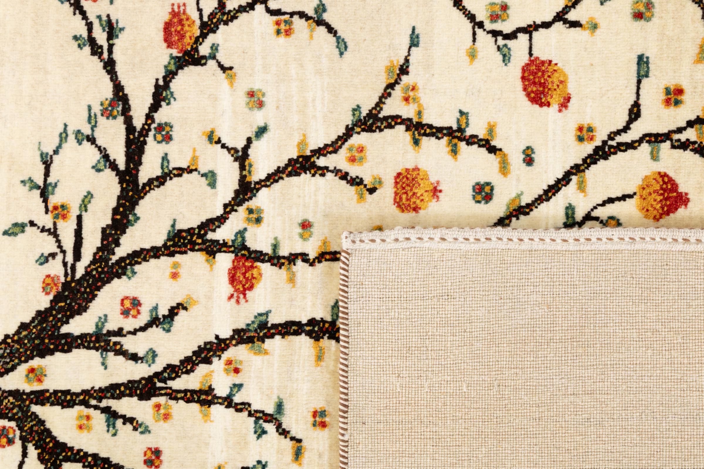 Esta hermosa alfombra es una Gabbeh persa y por lo tanto pertenece a las alfombras Gabbeh de mayor calidad. Las alfombras son anudadas por nómadas o seminómadas en Irán según la artesanía tradicional. Los motivos y patrones simples están inspirados en su mayoría por el entorno inmediato de los nómadas. Por ejemplo, los camellos, árboles o arbustos se pueden encontrar en las alfombras tradicionales. Las alfombras gabbeh persas están hechas de lana de rebaños de ovejas criados localmente. Por lo tanto, la lana se sigue hilando a mano. Así, cada una de estas alfombras orientales encarna un carácter único de la cultura de siglos de antigüedad.