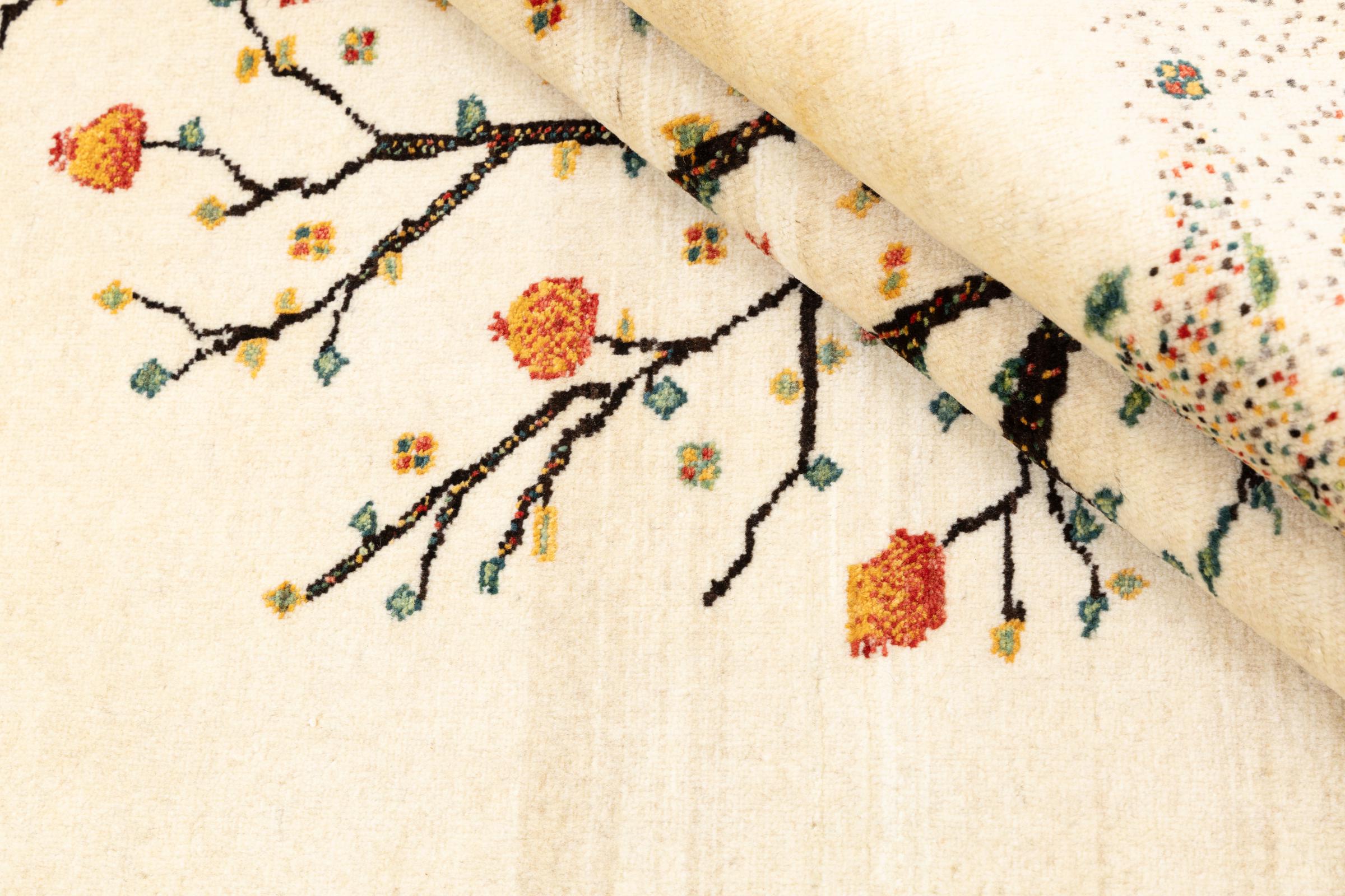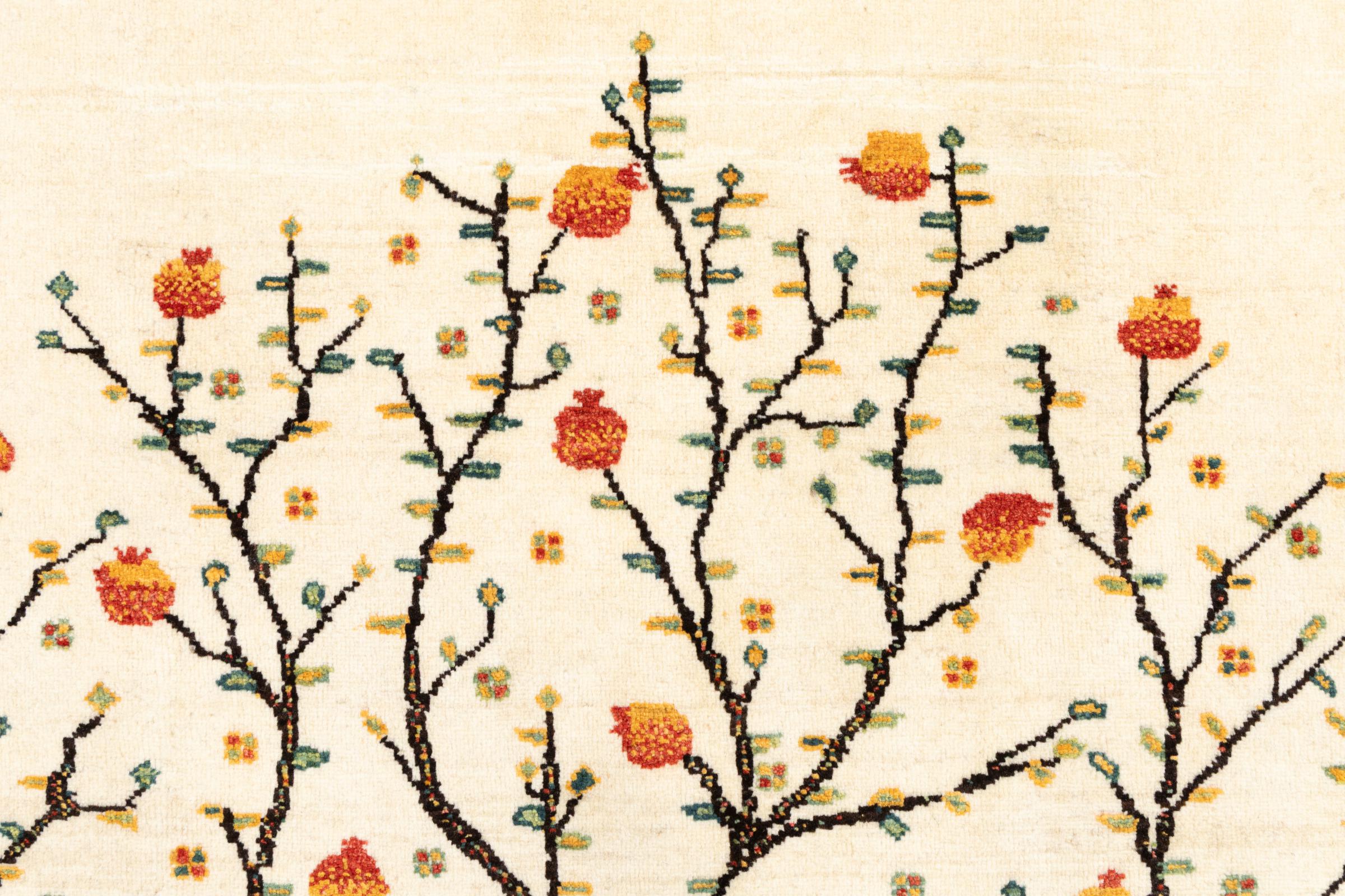 Un refinamiento de las ya conocidas alfombras Gabbeh: Esta es esta persa Gabbeh Loribaft. Con su anudado más fino y su hermoso diseño, sabe cómo impresionar. Loren lo anudó a mano en el sur de Persia con la mejor lana de oveja hilada a mano. Solo se utilizan tintes vegetales puros para teñir la lana. Con esta alfombra obtienes el estándar más alto de una alfombra Gabbeh para tu hogar.